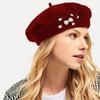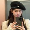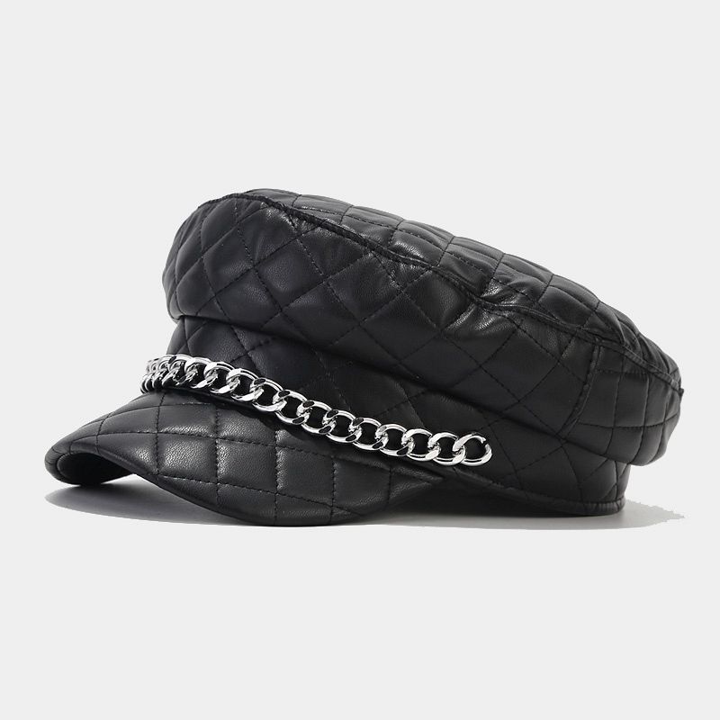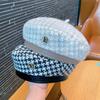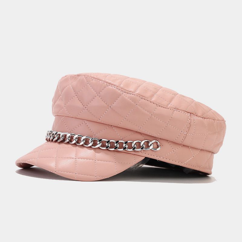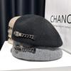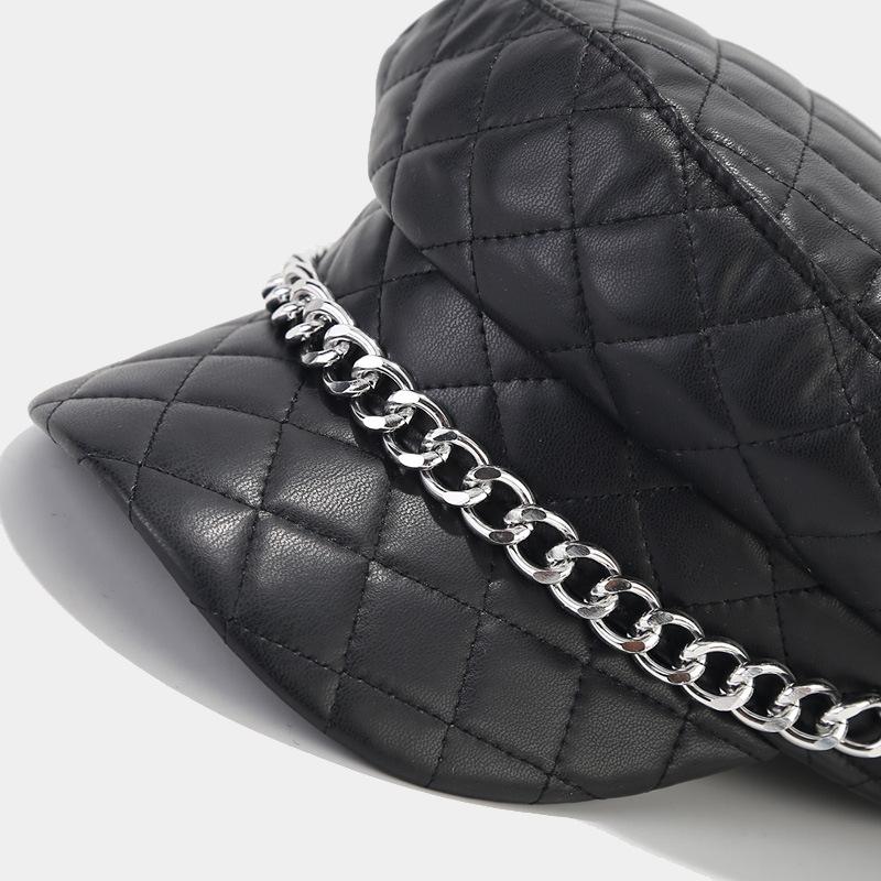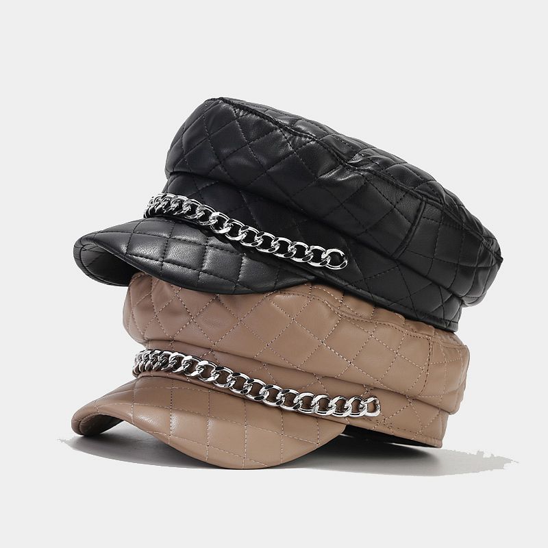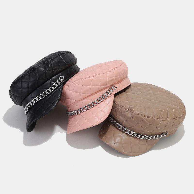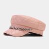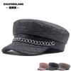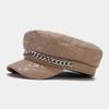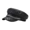 Otoño e Invierno nuevo estilo Chanel Cuadros cadena sombrero azul marino moda de mujer de moda Rojo de internet sombrero militar de cuero gorra retro con visera