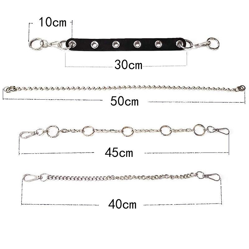 El cuerpo principal del producto mide 30 cm de largo y 3 cm de ancho. Las longitudes de las cadenas son 40 cm, 45 cm y 50 cm respectivamente. La hebilla de eslabones mide 7.5 cm. Es adecuado para circunferencias de cintura de 70-85 cm y pesa 0.22 kg. |
