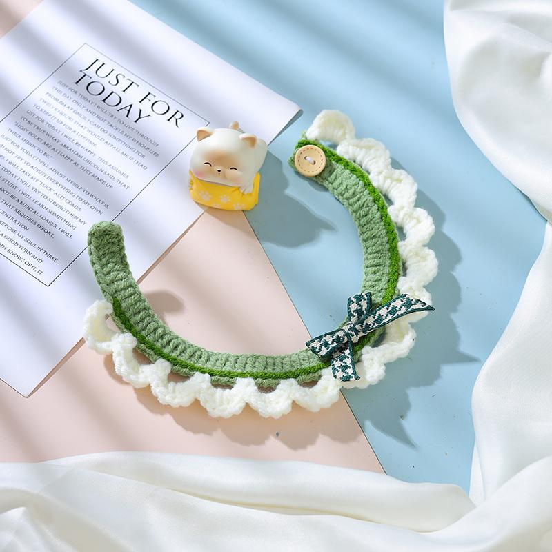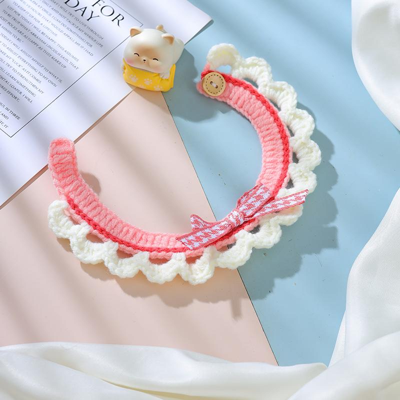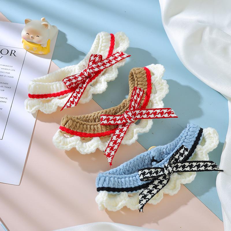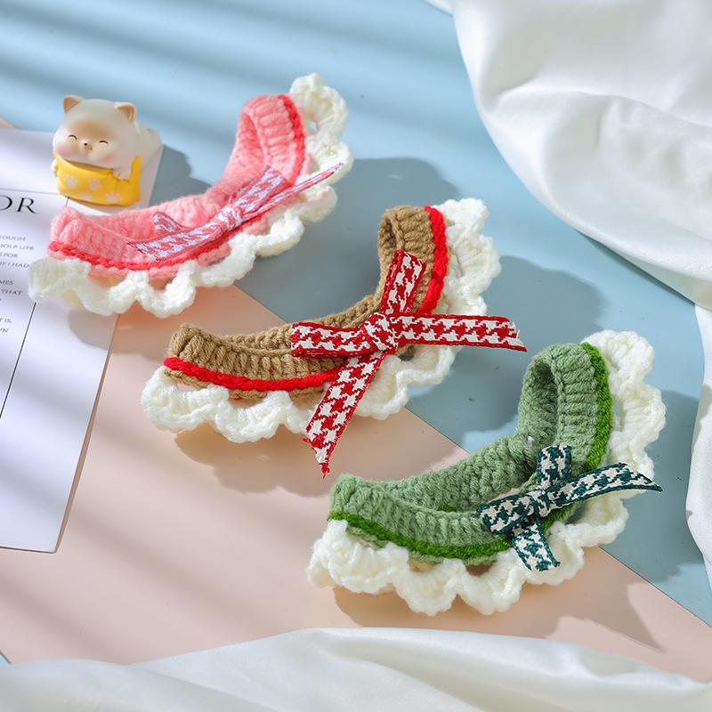 Gato Perro Hecho a Mano Tejido Cuello Lana Tejido Ganchillo Cuello Mascota Lindo Foto Decorativo Babero Babero