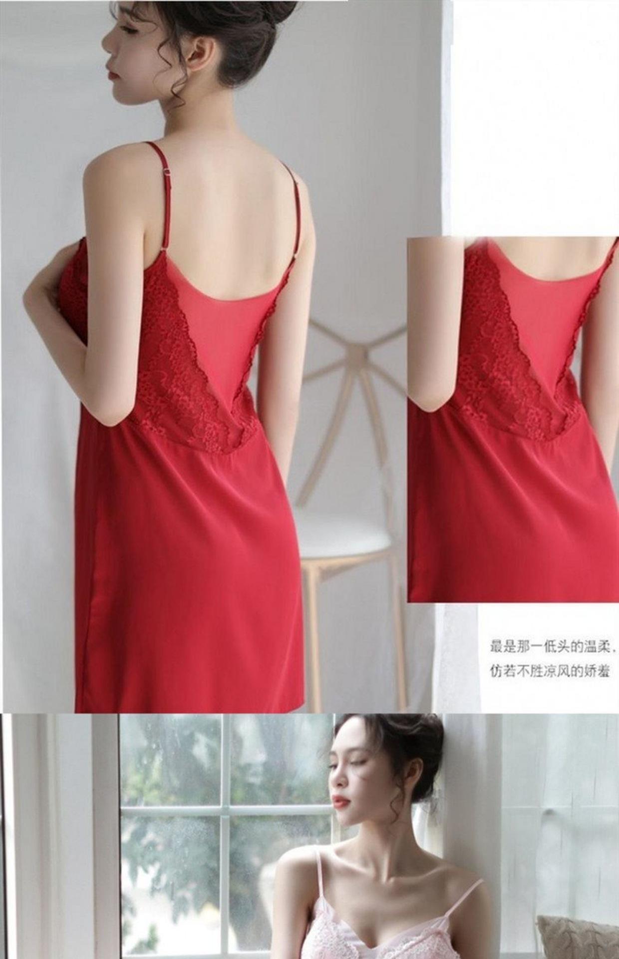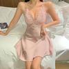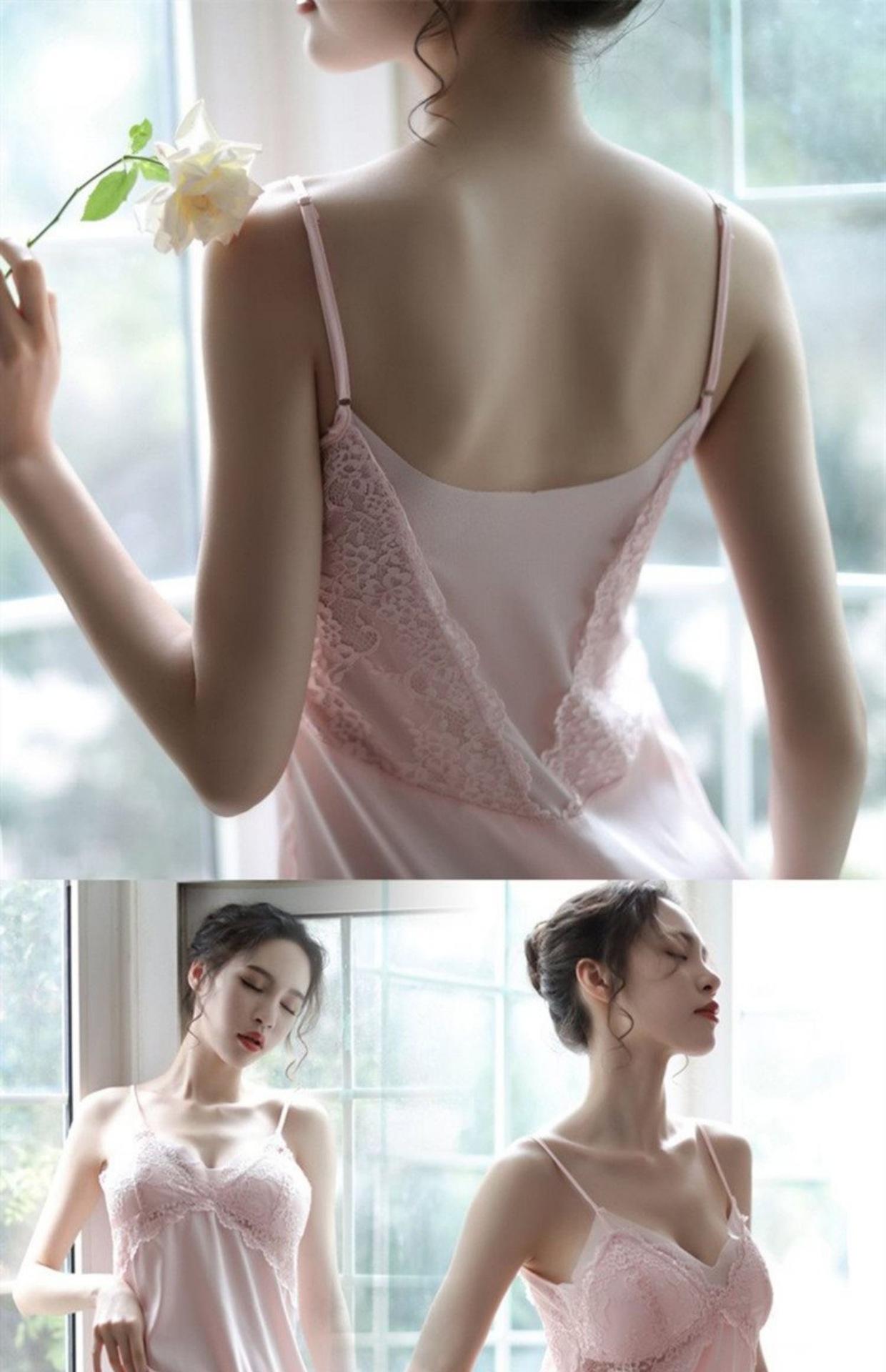 Camisón de verano para mujer con tirantes y almohadilla para el pecho, pijama de seda de hielo, vestido de verano de encaje de talla grande sexy, ropa nueva para el hogar 2024