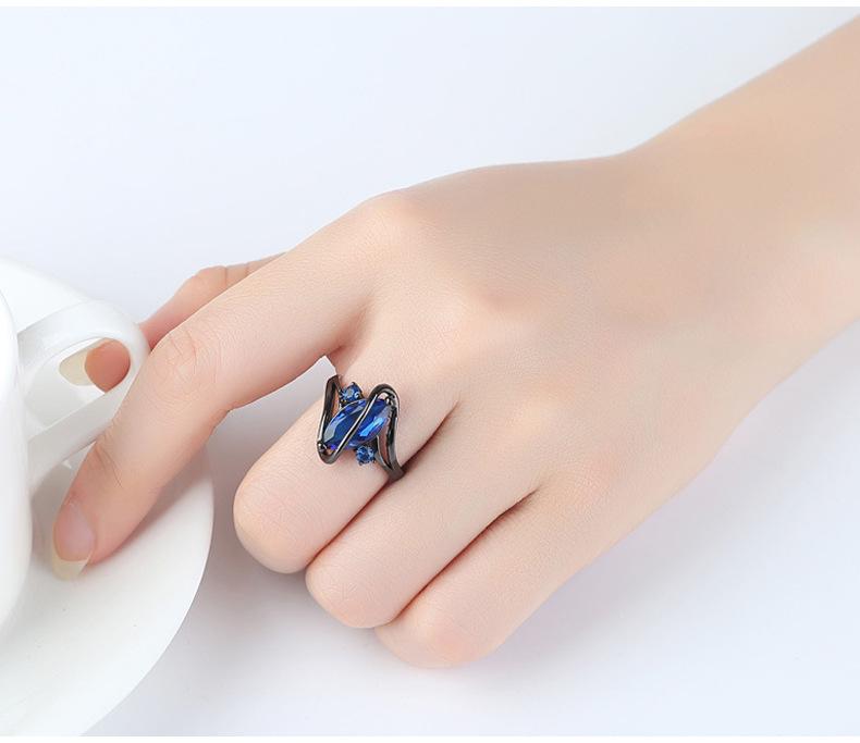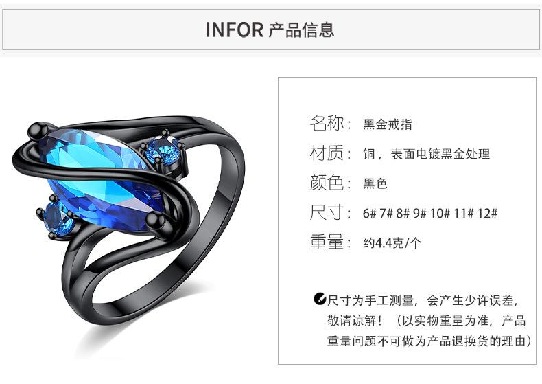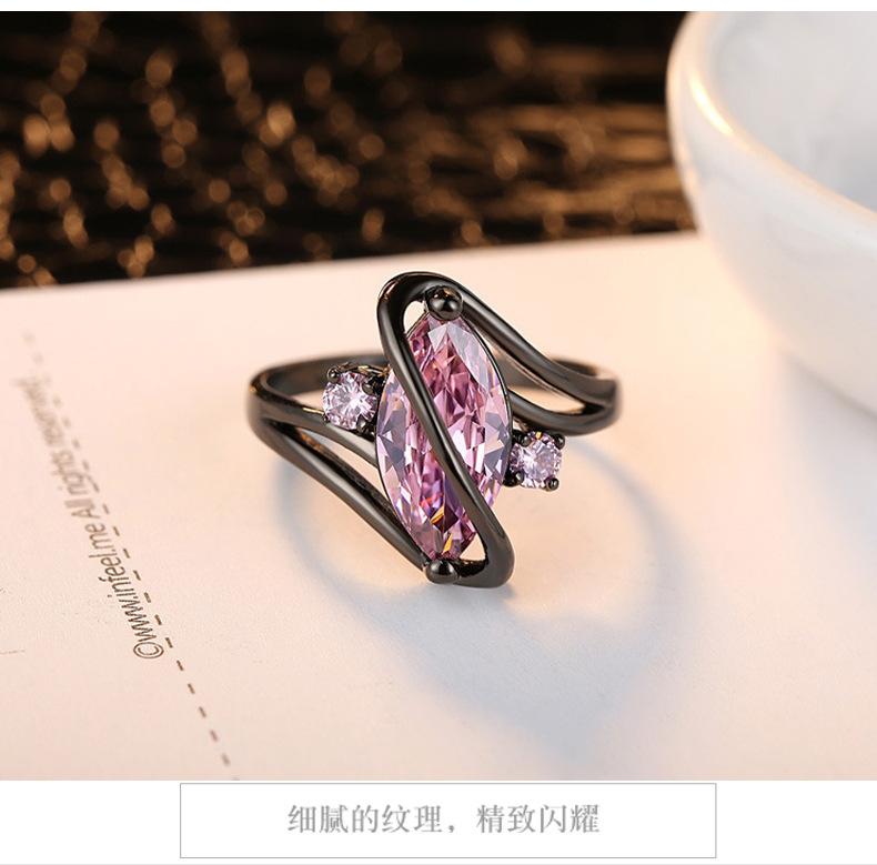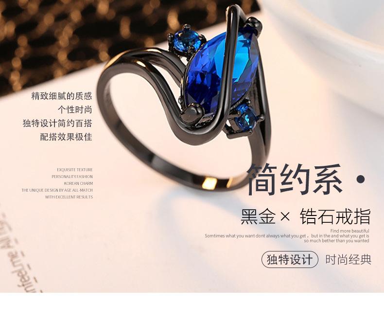 AliExpress Europa y Estados Unidos más vendido joyería moda ojo de caballo corazón de melocotón oro negro circón anillo de diamantes anillo adornos de mano para damas