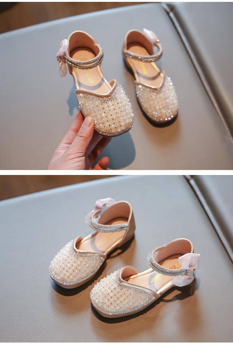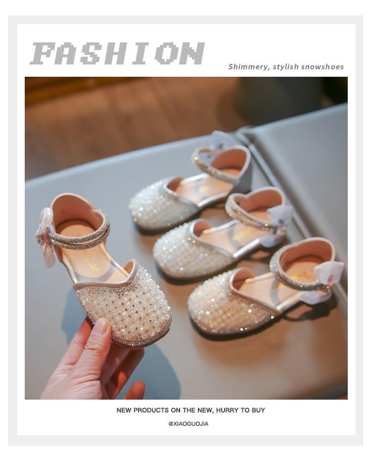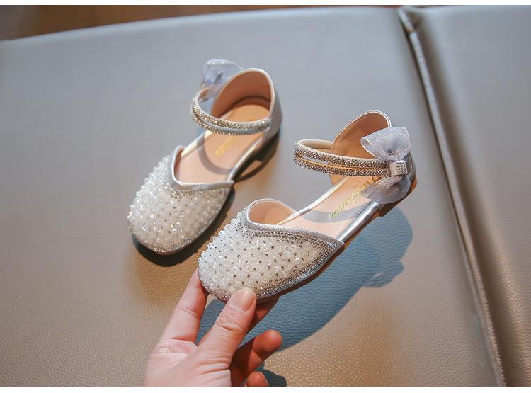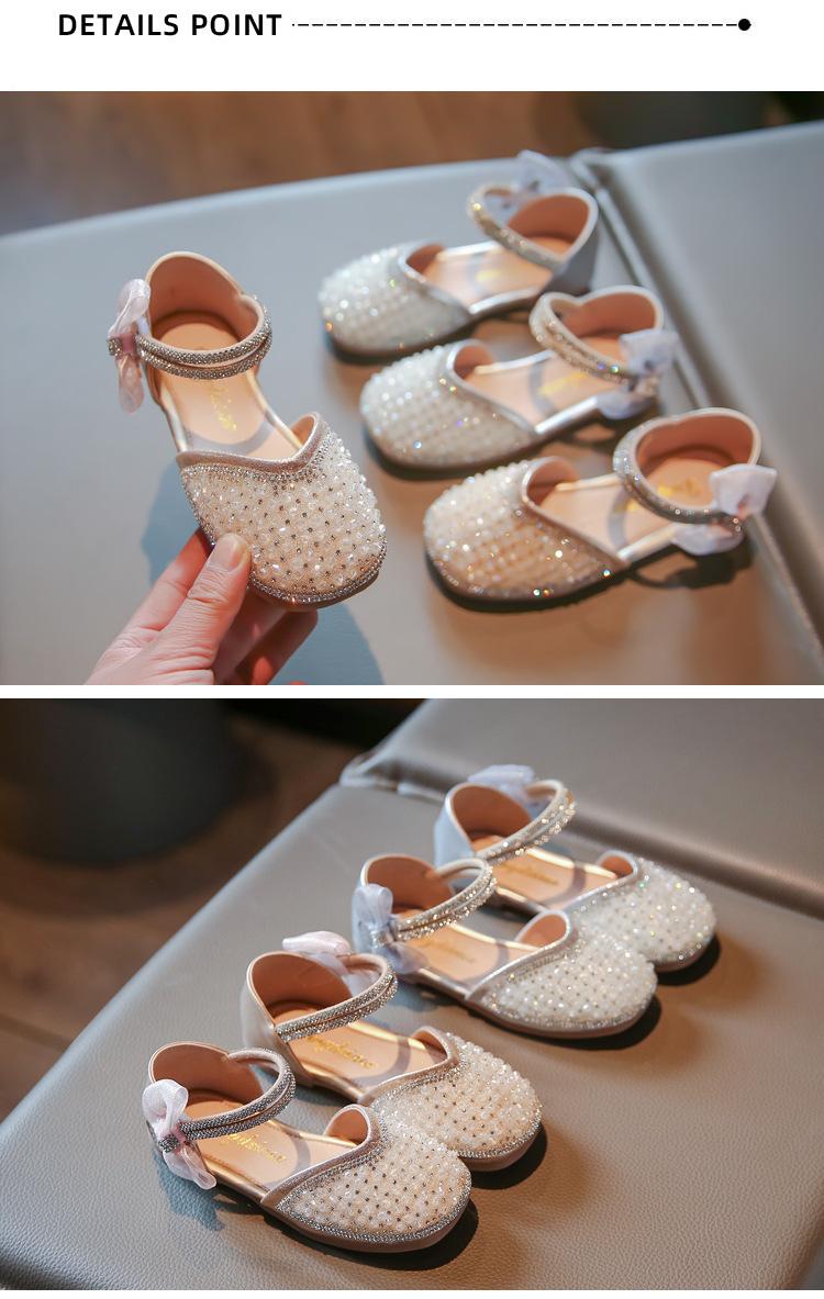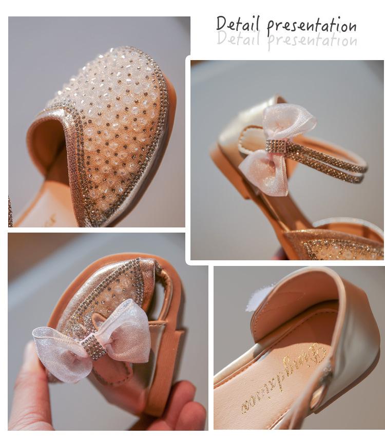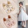 2025 Nuevos Zapatos de Verano para Niños Zapatos de Princesa Dulce con Lazo para Niña Estilo Coreano Elegantes Sandalias de Media Estación con Lentejuelas para Niñas