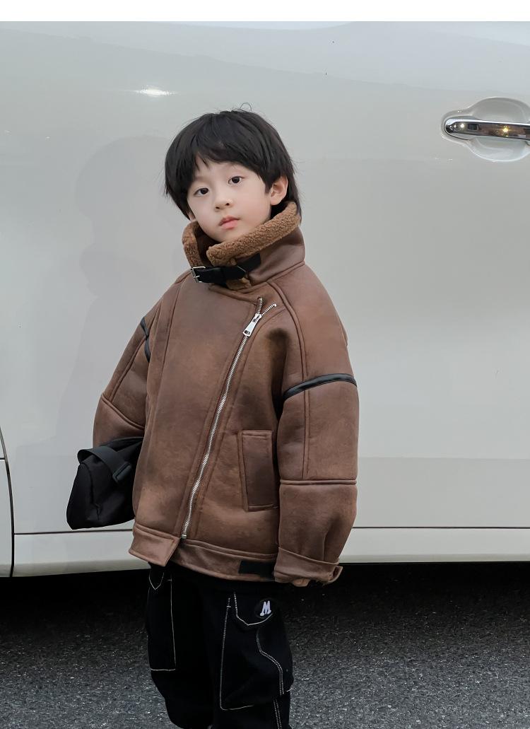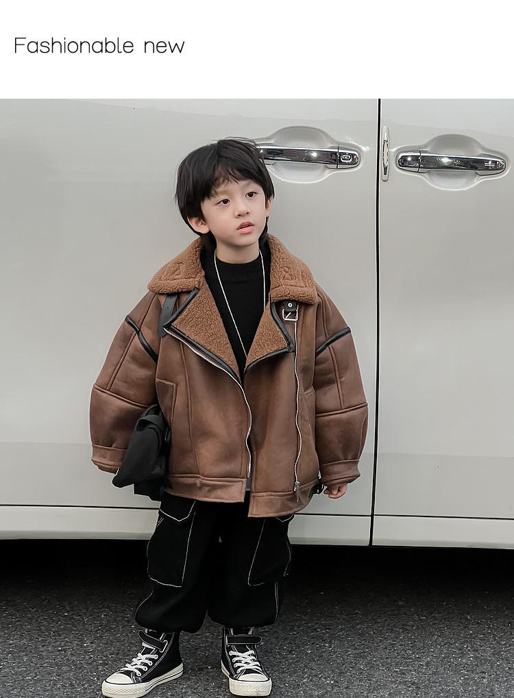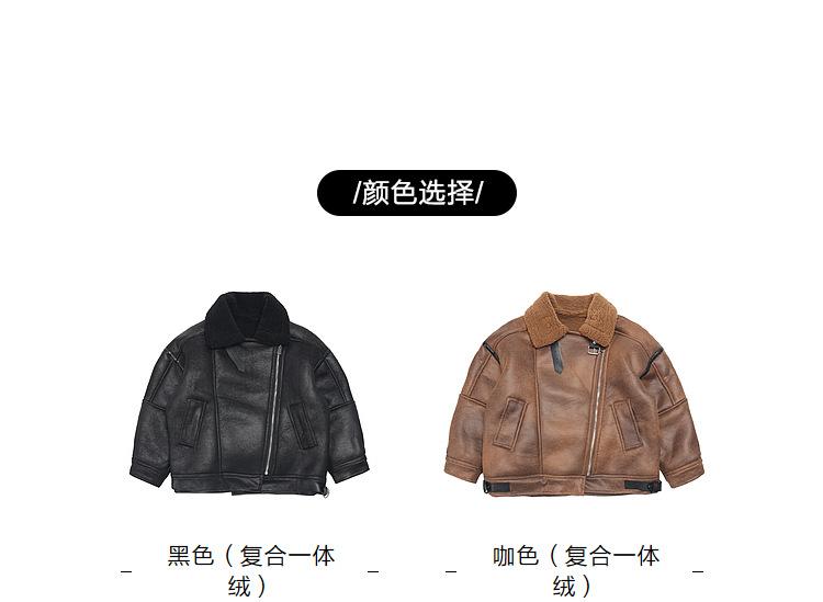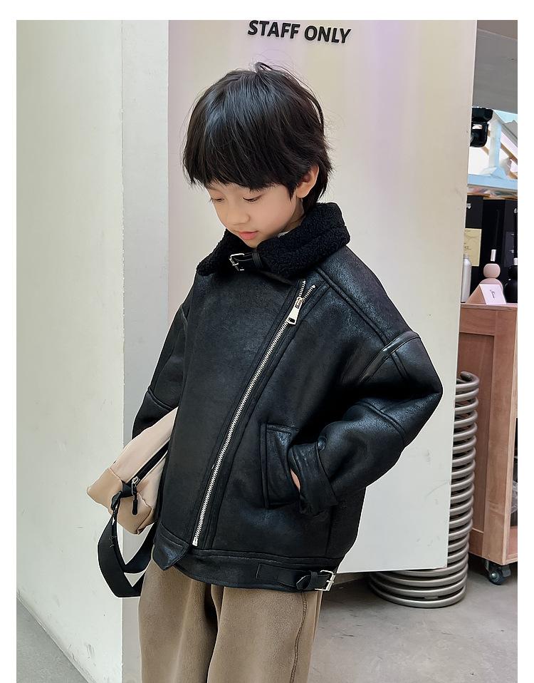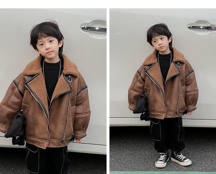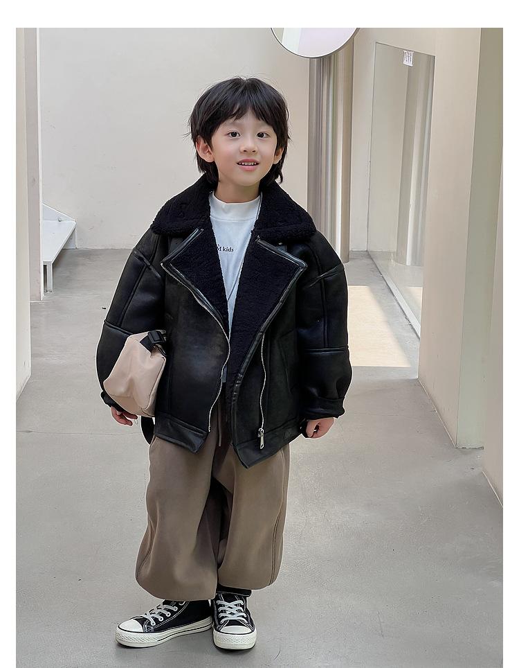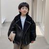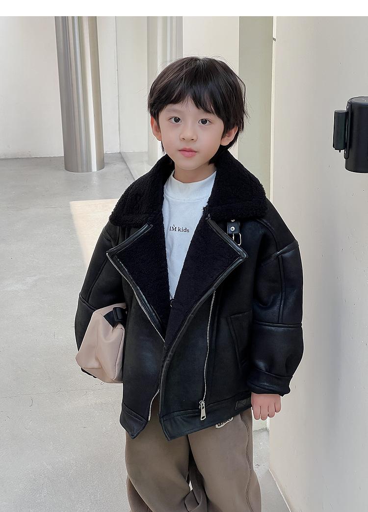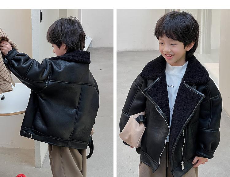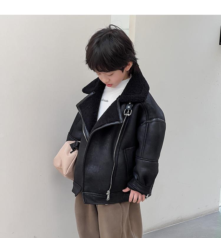Ropa para niños IM, abrigo cálido de estilo coreano para niños, abrigo de cuero estilo motocicleta estilo occidental, abrigo de cuero de lana de cordero engrosado para niños