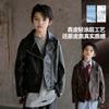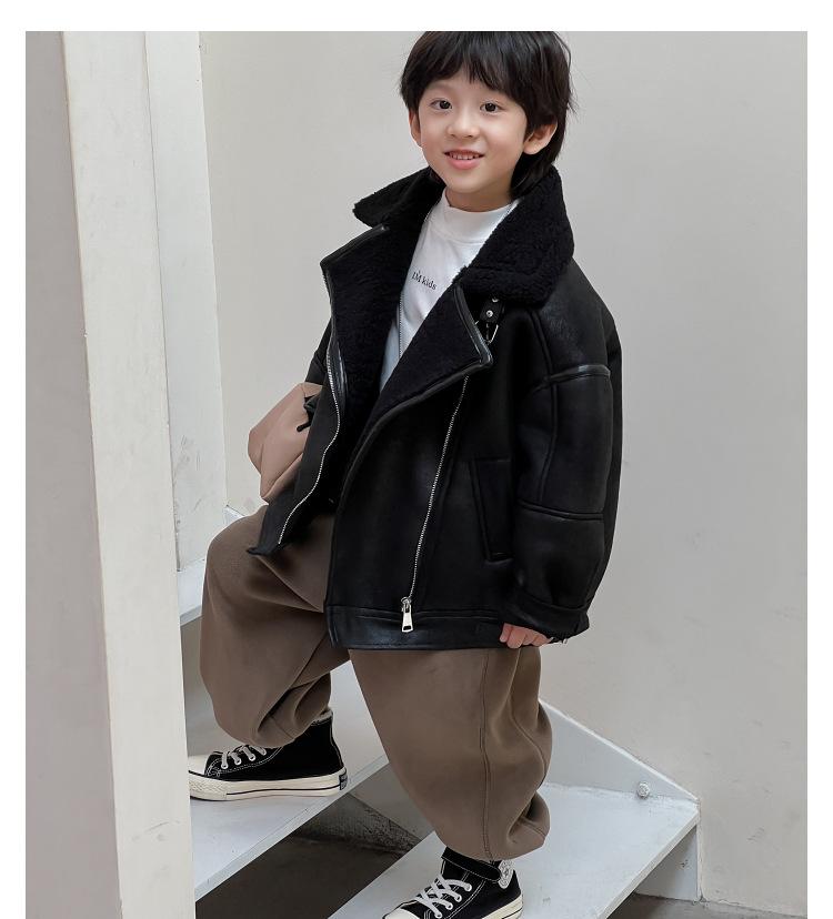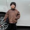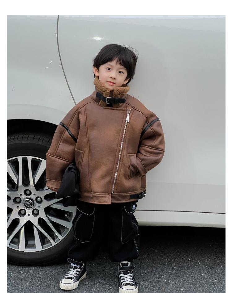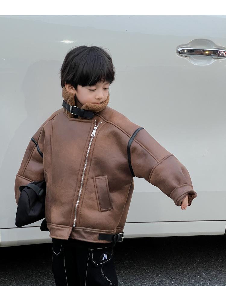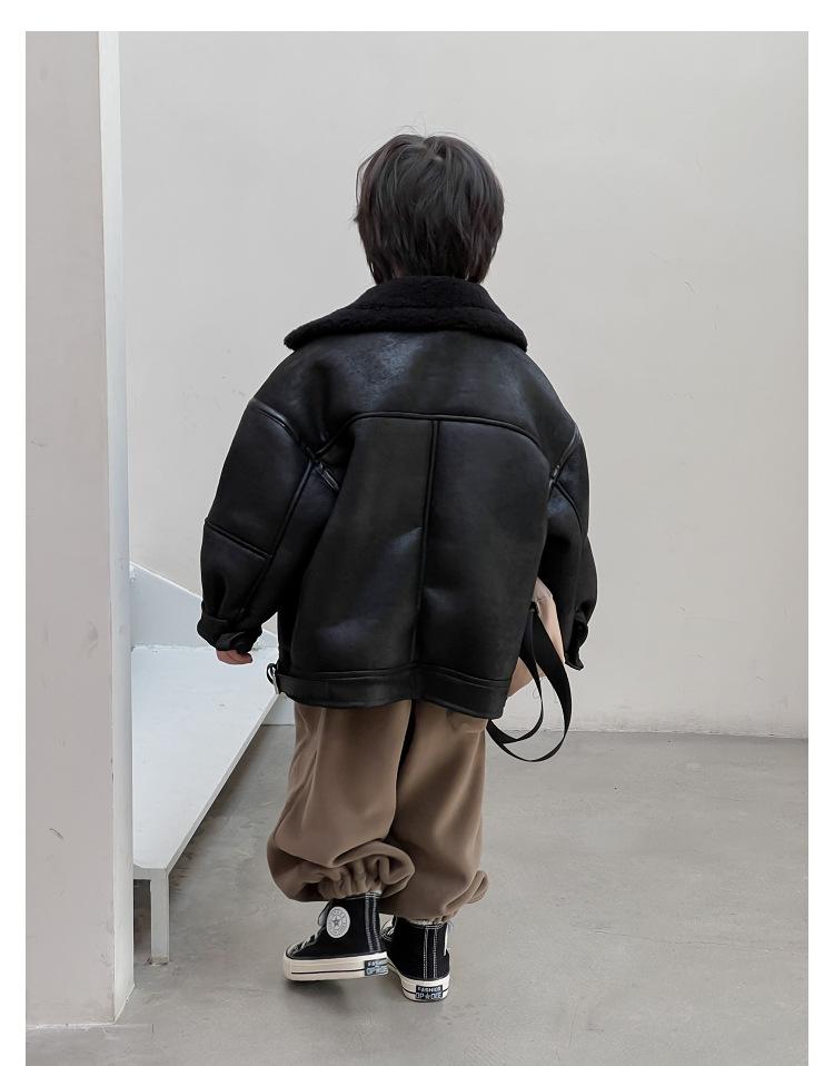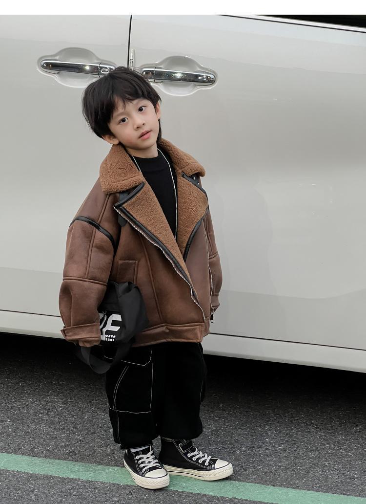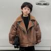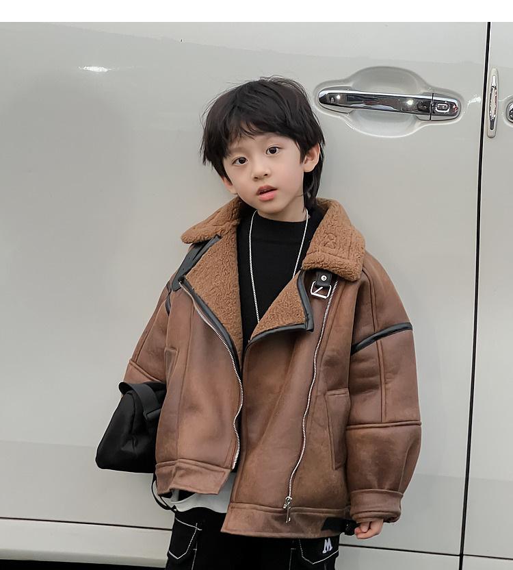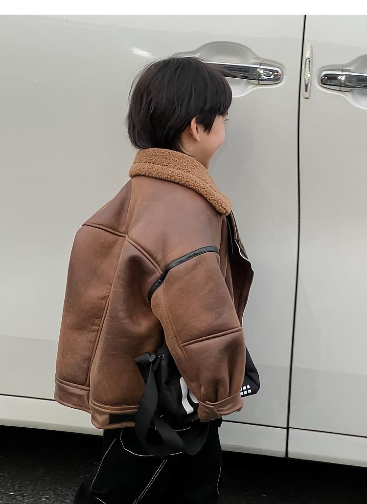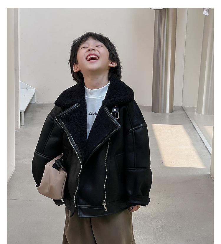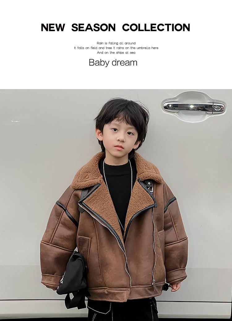 Ropa para niños IM, abrigo cálido de estilo coreano para niños, abrigo de cuero estilo motocicleta estilo occidental, abrigo de cuero de lana de cordero engrosado para niños