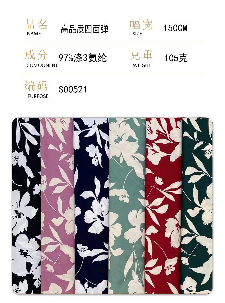 Tela de Poliéster Tejida Estampada Elástica en Cuatro Direcciones 100D para Camisa, Tela de Gasa para Vestido, Satén