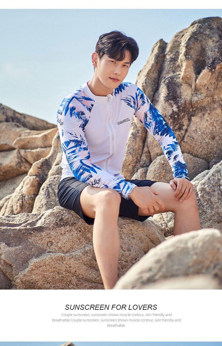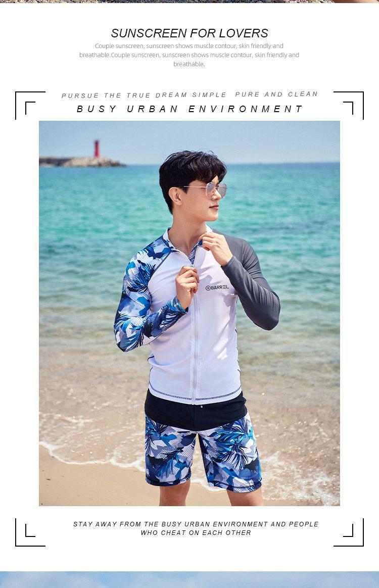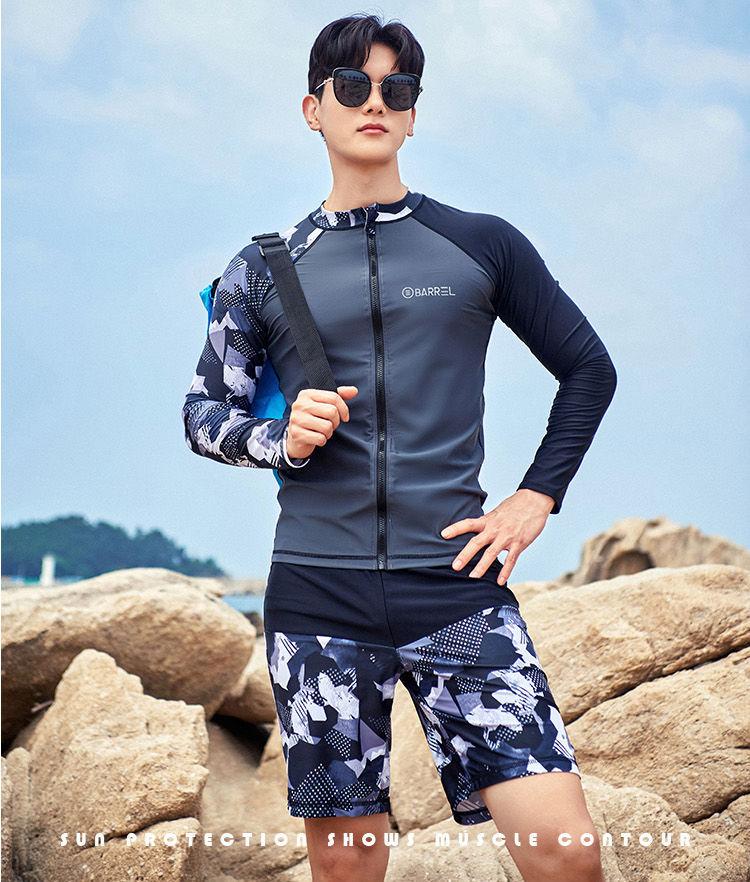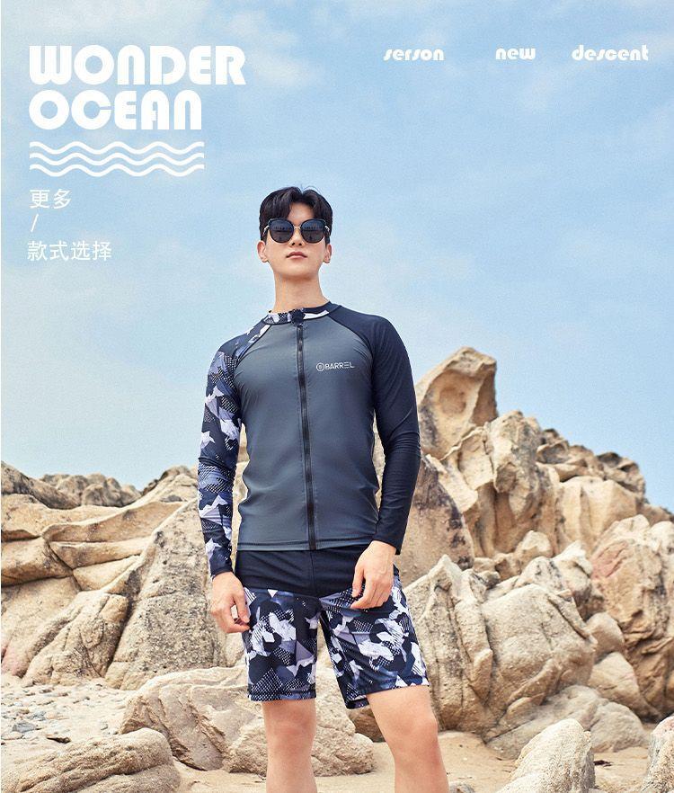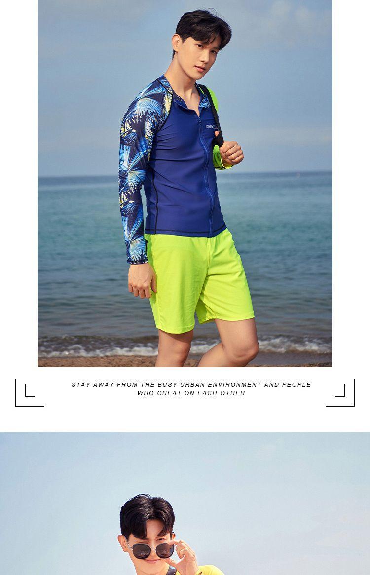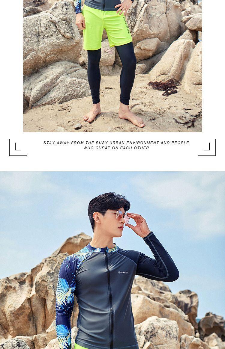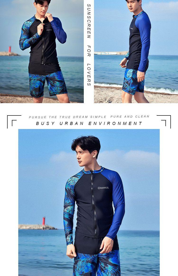 Traje de baño para hombre, protección solar, secado rápido, manga larga, cremallera, esnórquel, surf, buceo, traje de baño para medusas, traje de baño de talla grande, pantalones cortos