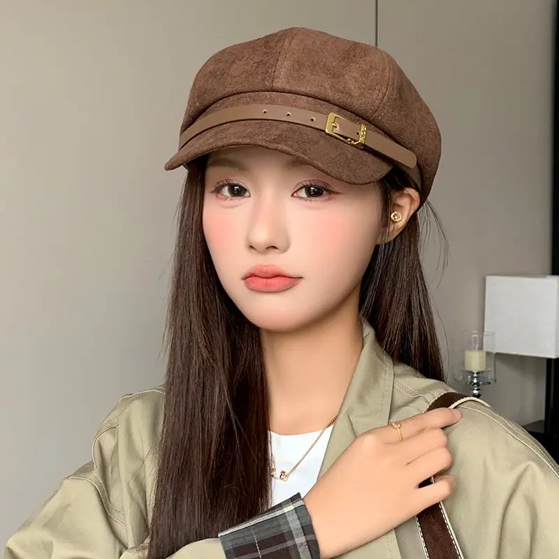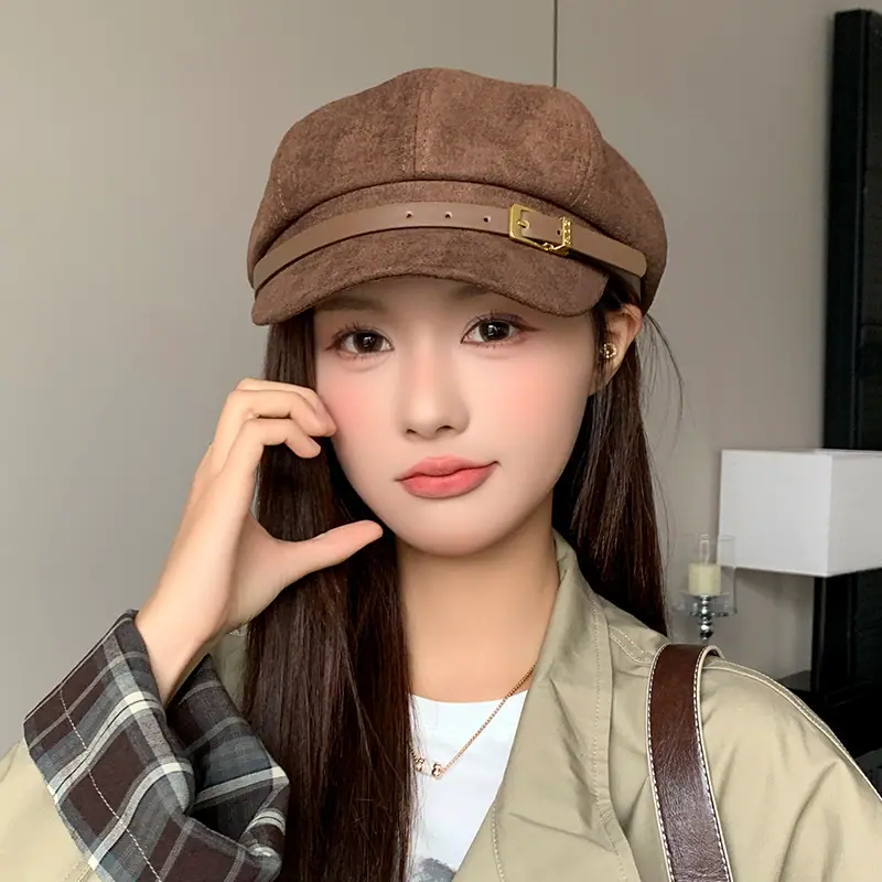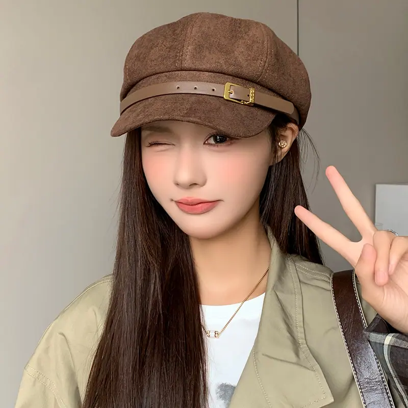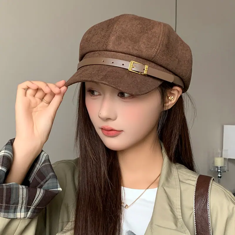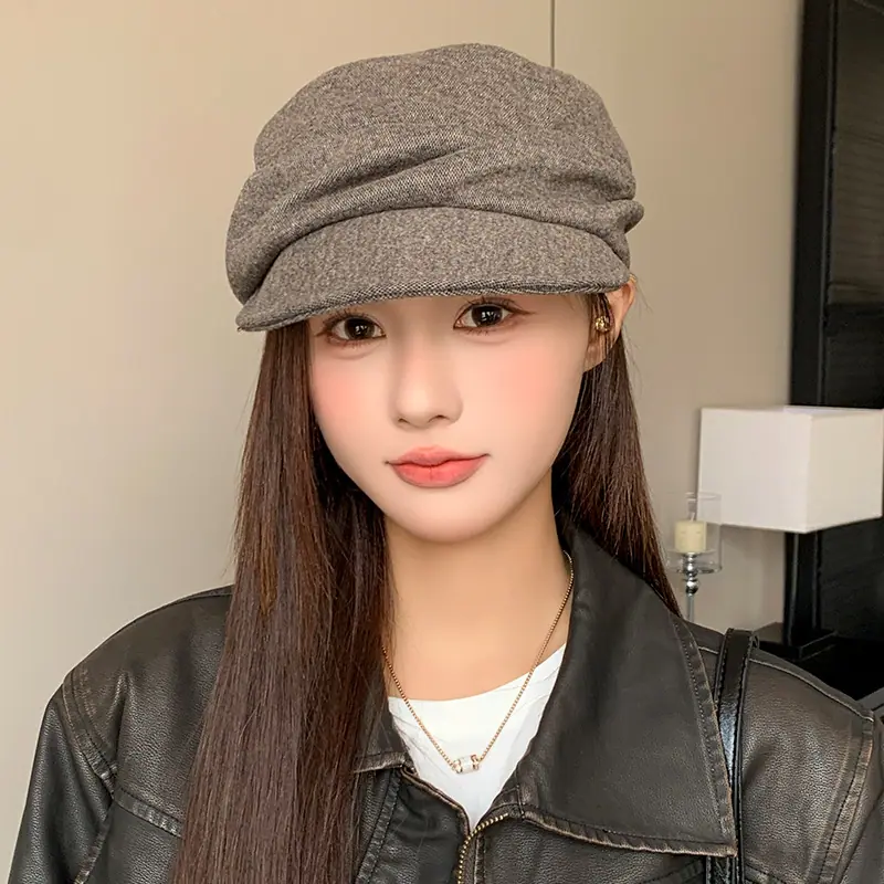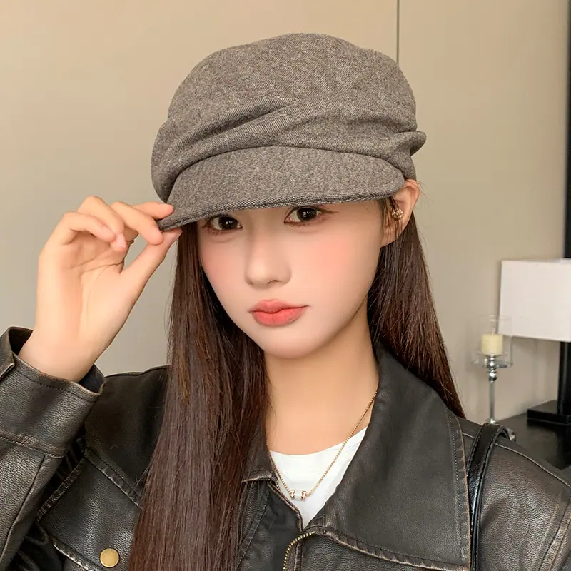 Octagonal beret/square round face hat/bailey peaked cap/wool octagonal hat/warm hat