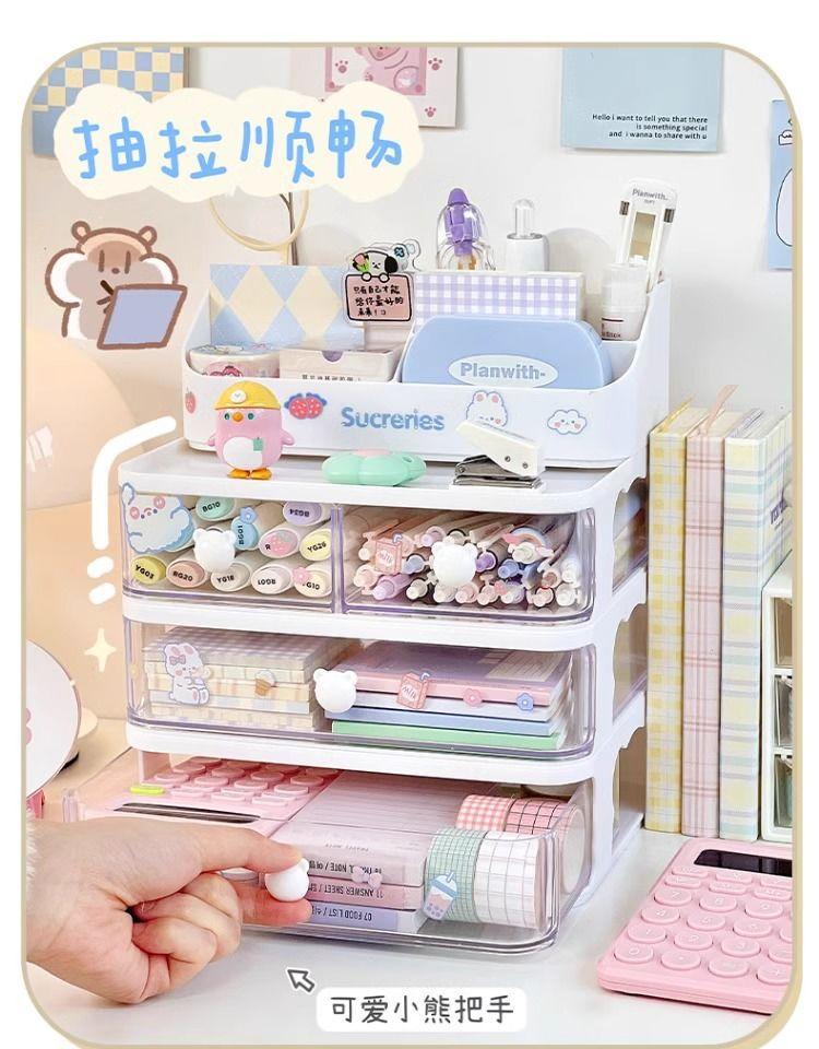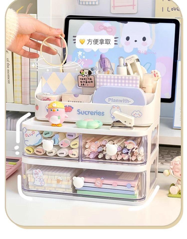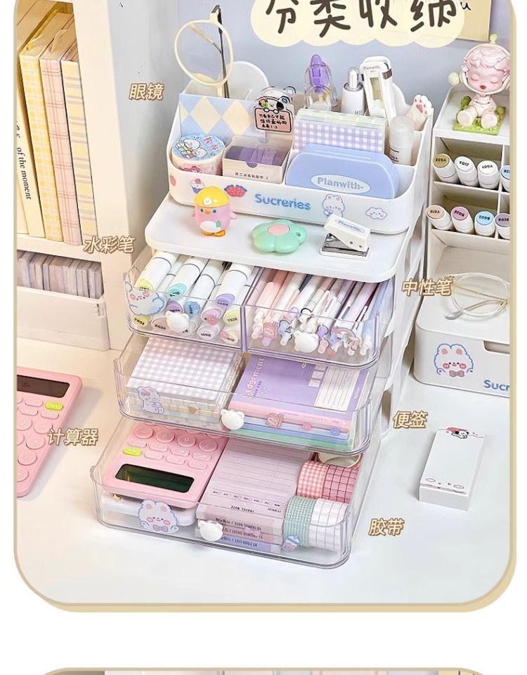 Portalápices de alto valor, caja de almacenamiento de escritorio, cajón, acabado, papelería, artículos diversos, estante de almacenamiento de cosméticos de oficina.