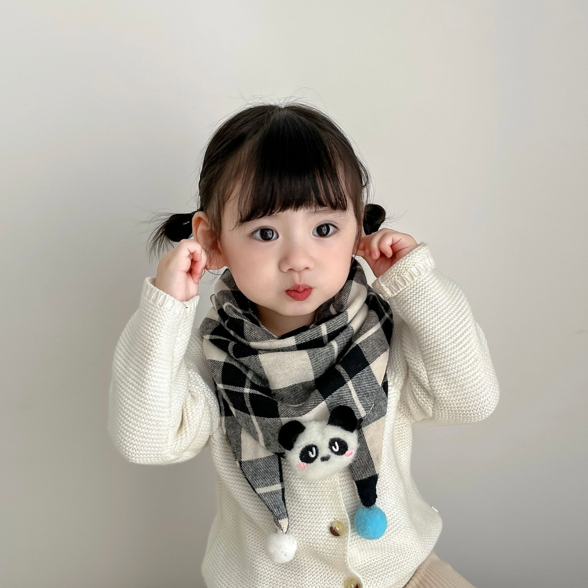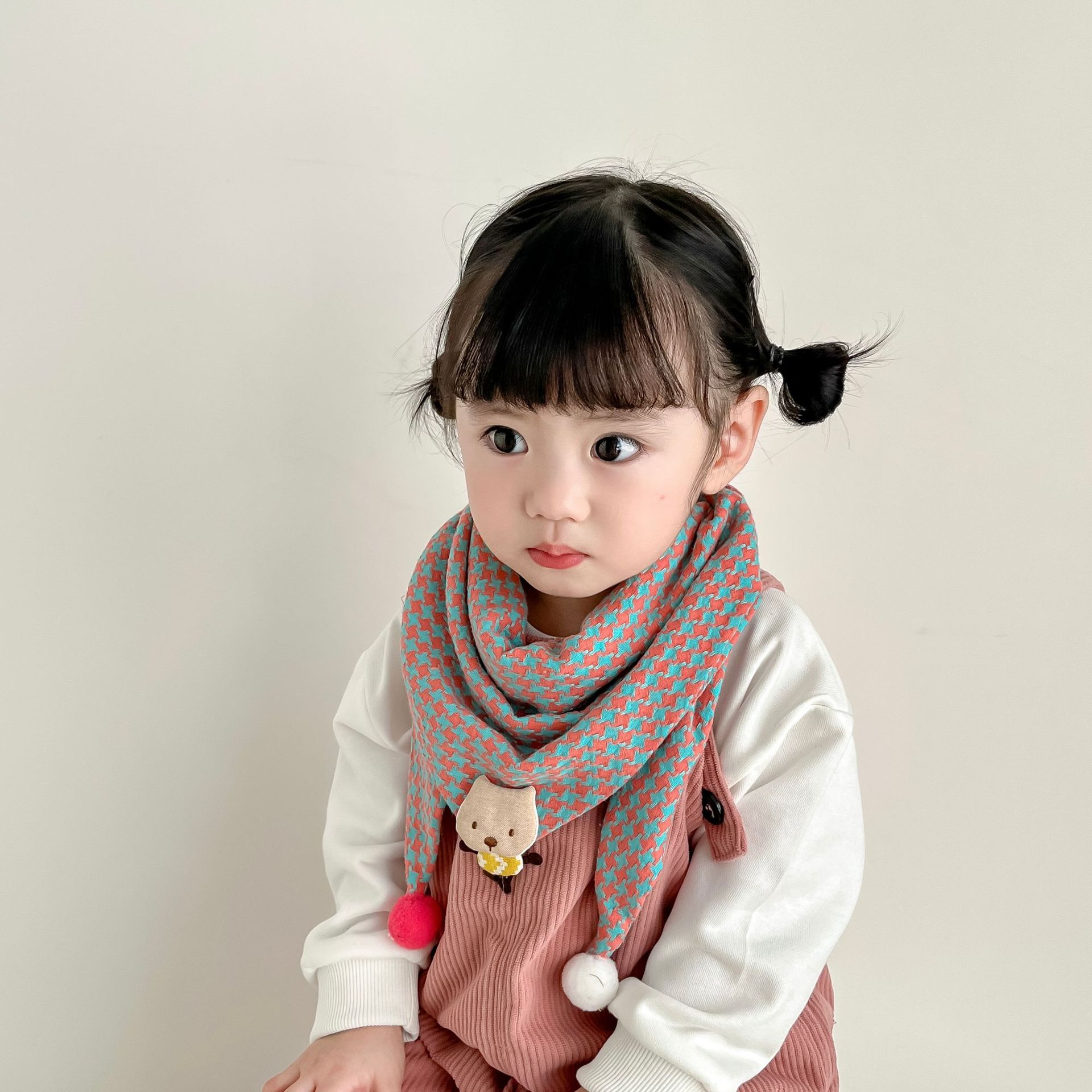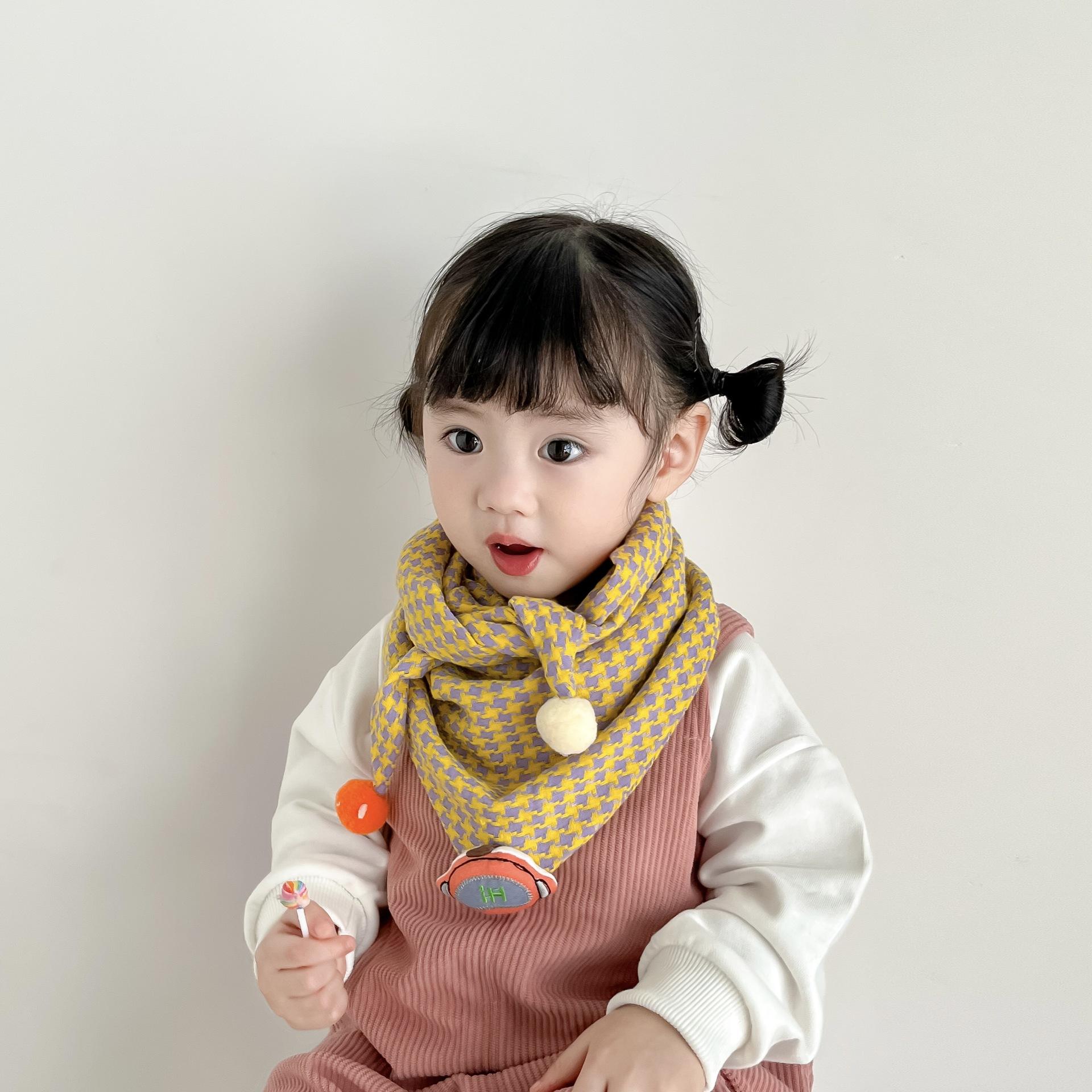 Bufanda triangular de estilo coreano para niños, bufanda a cuadros de otoño e invierno para bebés, babero cálido para bebés, bufanda para niños y niñas que combina con todo