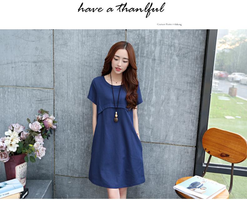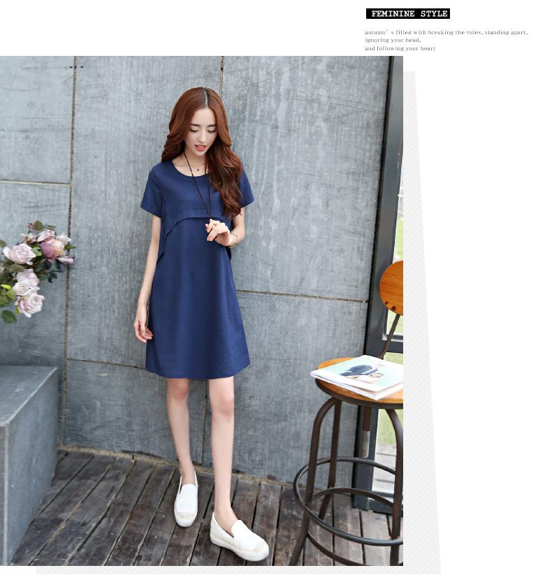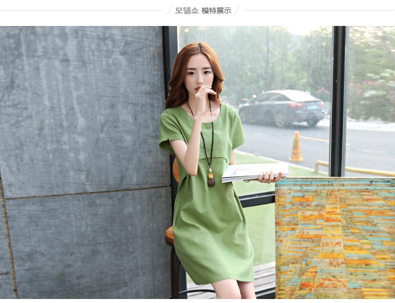 Vestido de maternidad estilo coreano de color sólido, ropa de manga corta para embarazadas, vestido de color sólido, ropa 883