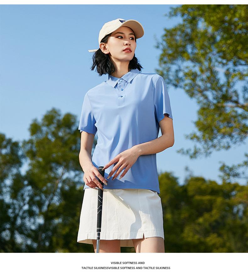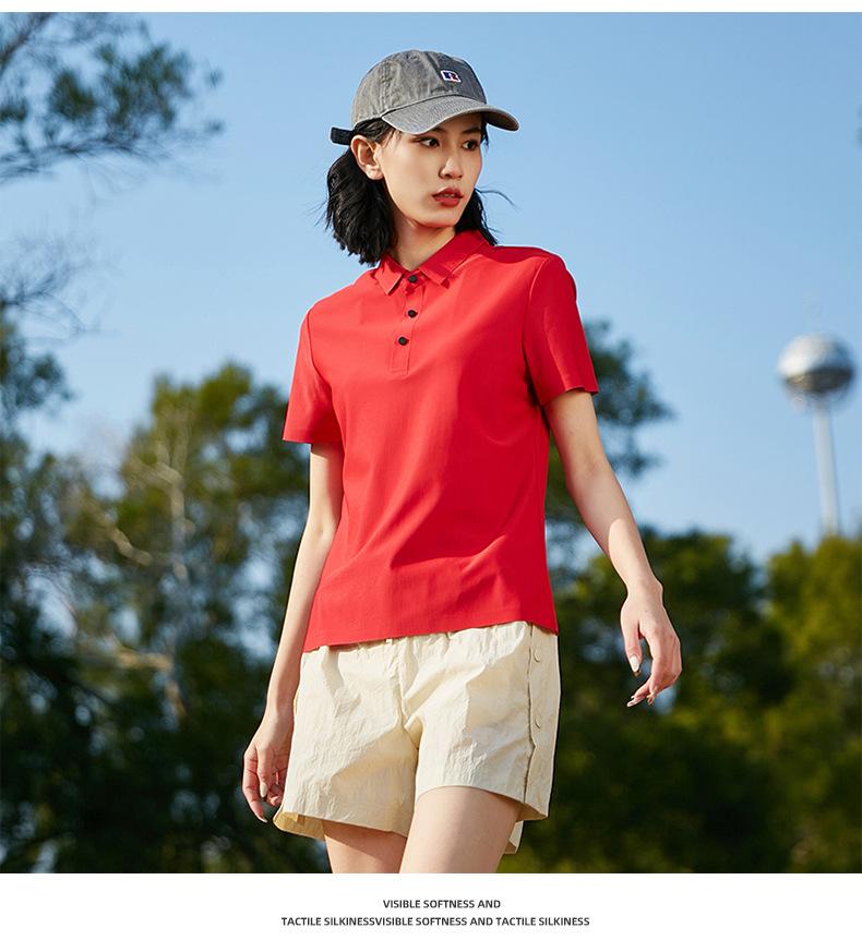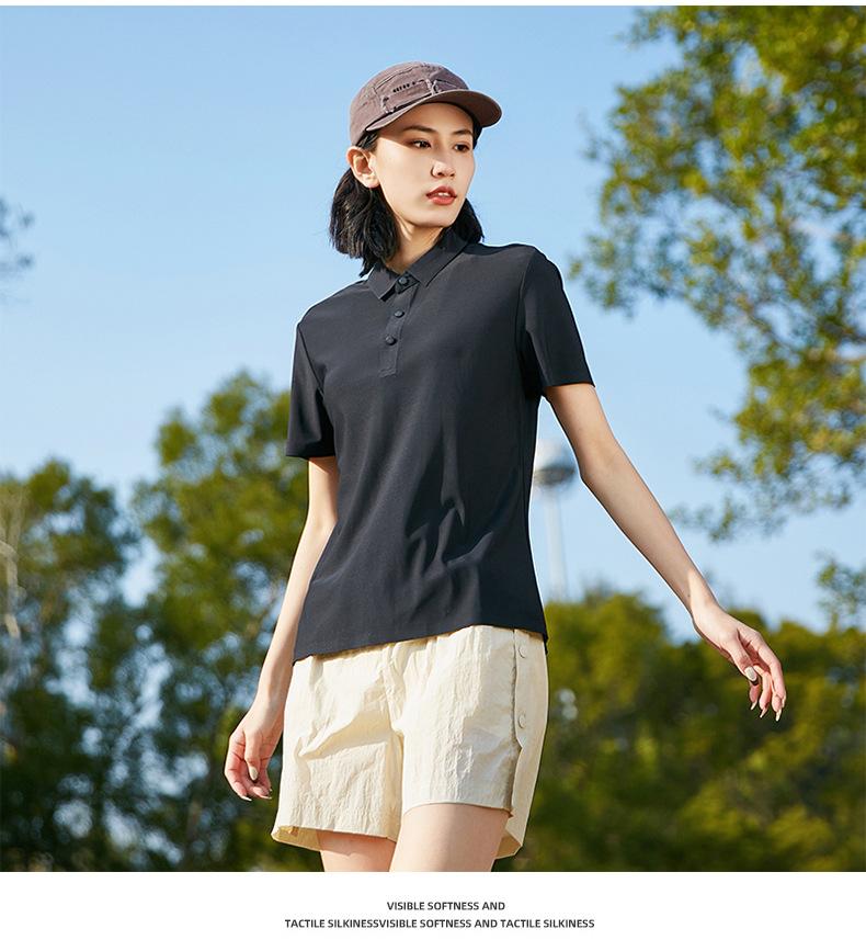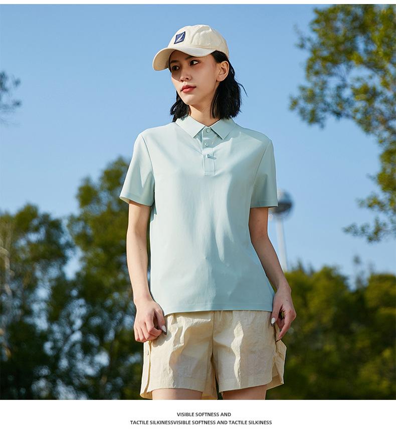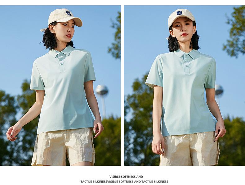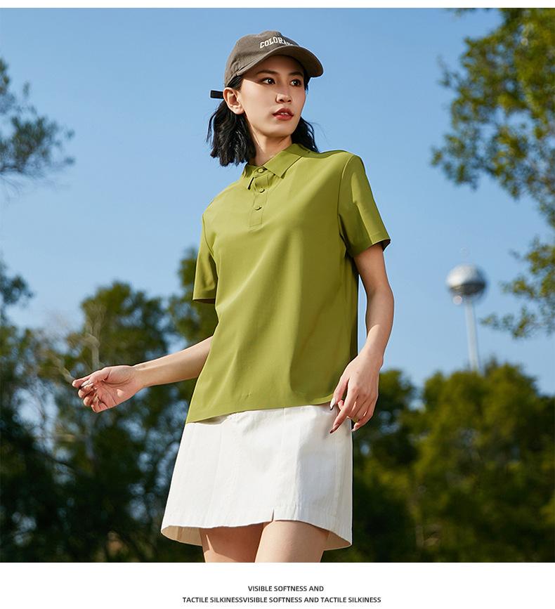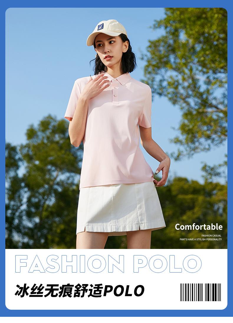 Polo de Verano de Seda de Hielo para Mujer Sin Costuras Pegado a Presión Fresco de Alta Gama para Negocios Ajustado Manga Corta LOGO Imprimible