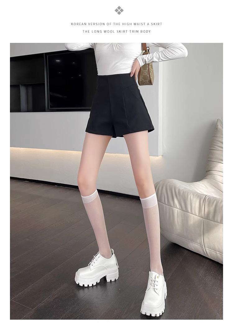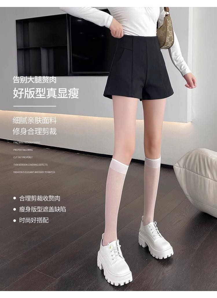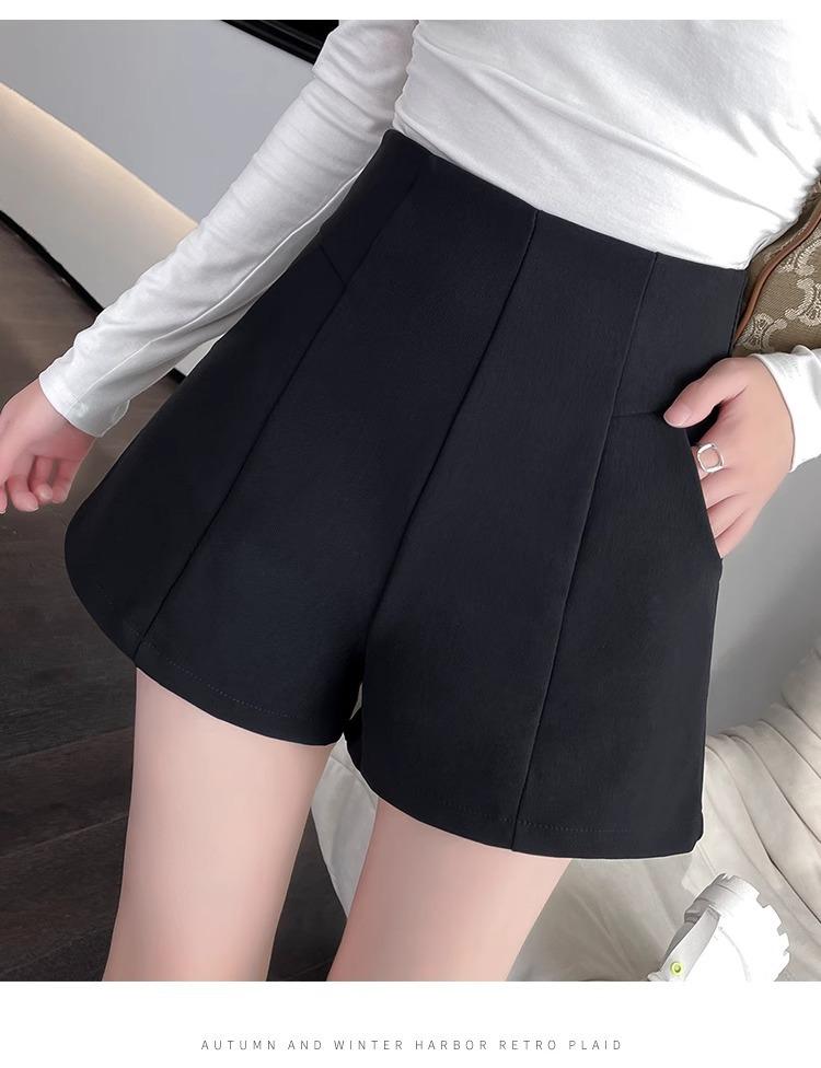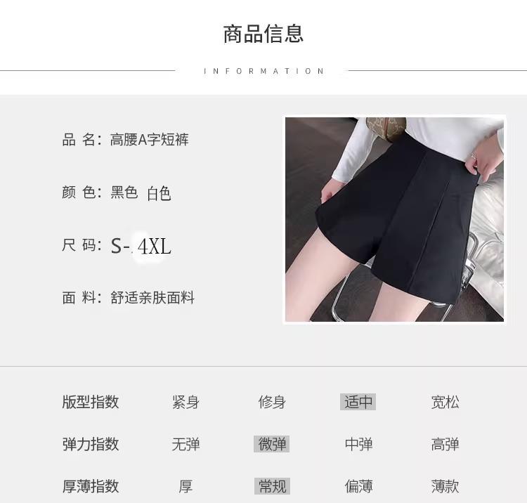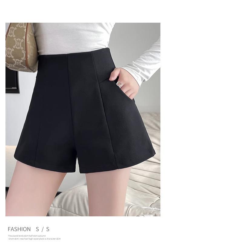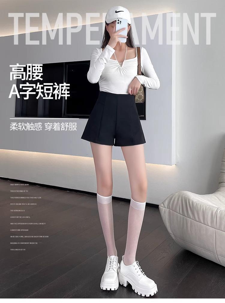 Pantalones cortos adelgazantes de cintura alta con forma de A, color negro, de pierna ancha, de moda para mujer, informales, combinables, 2024