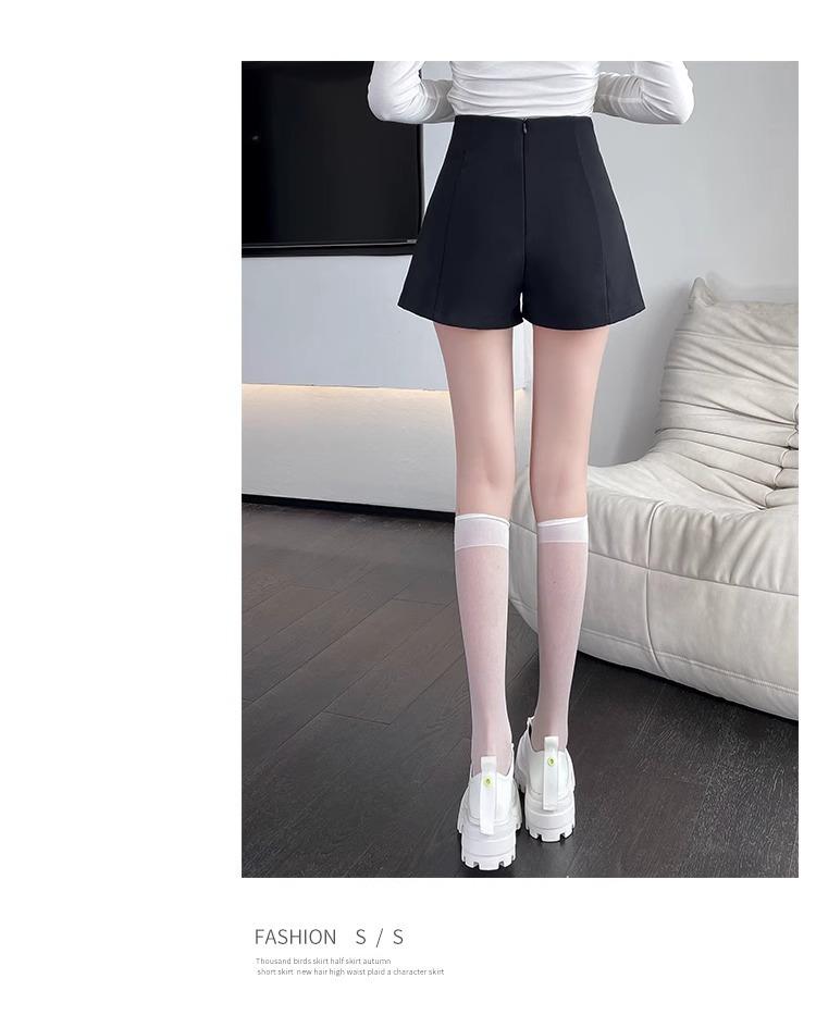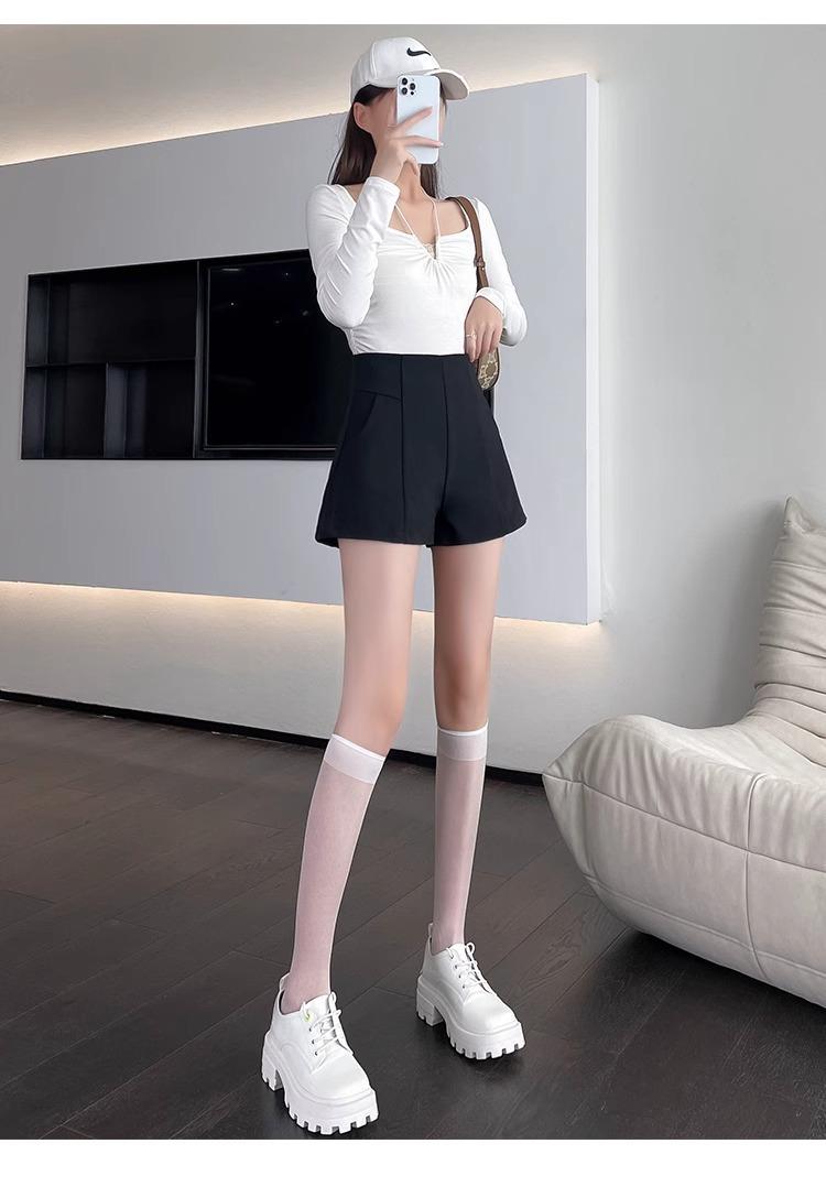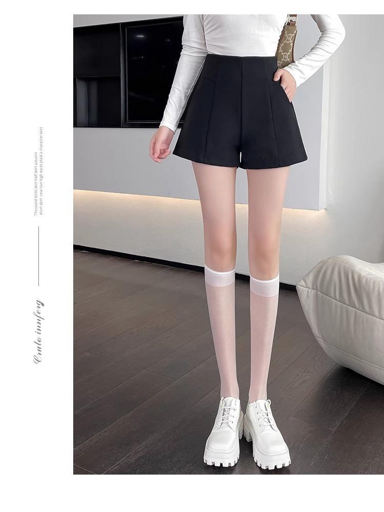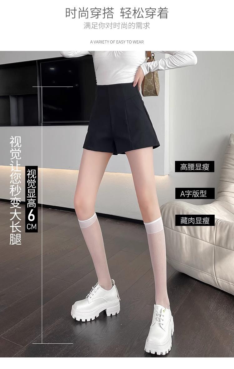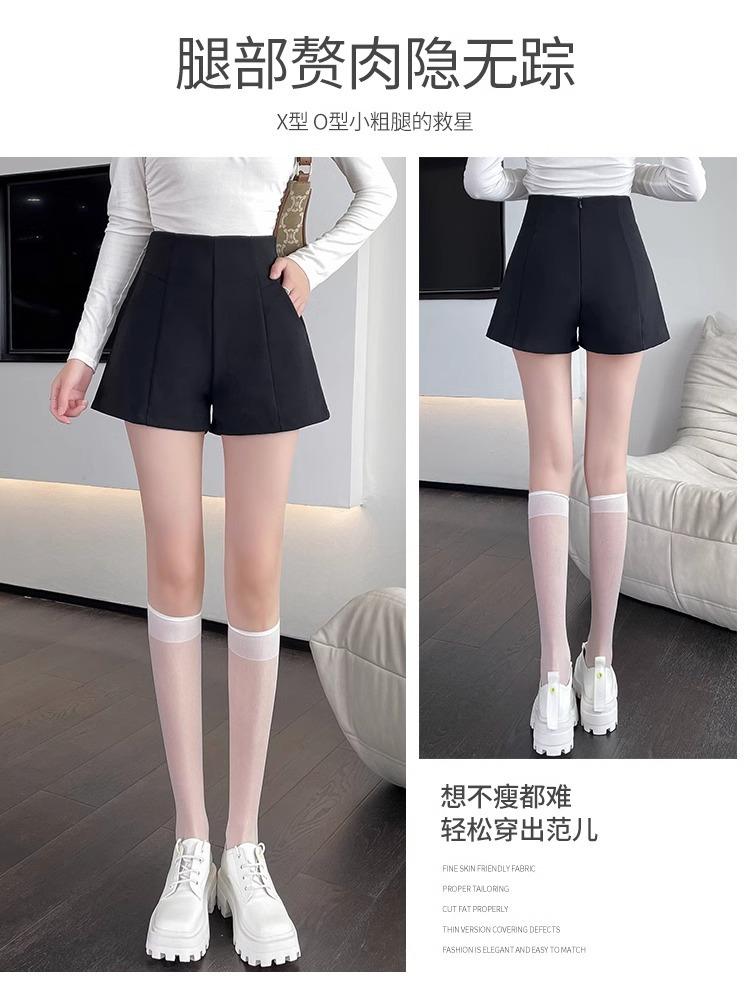 Pantalones cortos adelgazantes de cintura alta con forma de A, color negro, de pierna ancha, de moda para mujer, informales, combinables, 2024