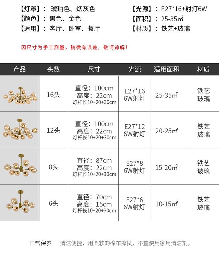 6 Gold + Amber lampshade, 6 Gold + smoke gray lampshade, 8 Gold + Amber lampshade, 8 Head Gold + smoke gray la...