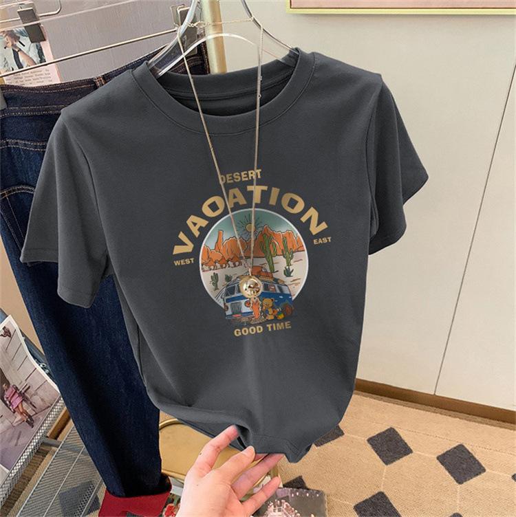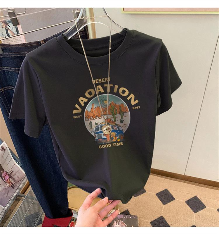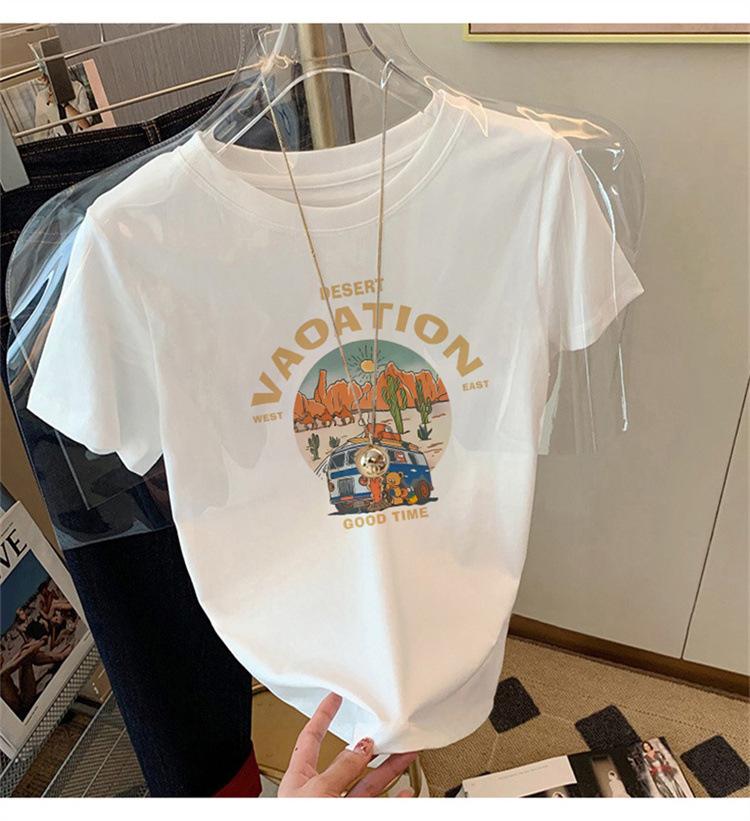 Venta al por mayor, novedad de verano 2023, camiseta de algodón de manga corta para mujer, camiseta holgada a la moda que combina con todo, elegante y adelgazante.
