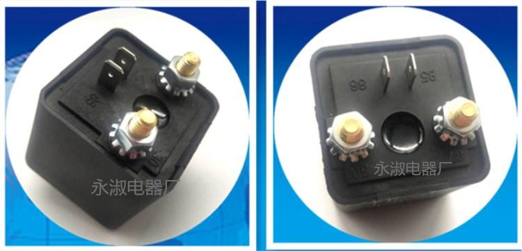 Relés de alta corriente y alta potencia El consumo de energía de la bobina es de 2.4W tipo de carga continua y 4.8W tipo de carga intermitente Aplicación del producto: relés de arranque y modificación de otros equipos