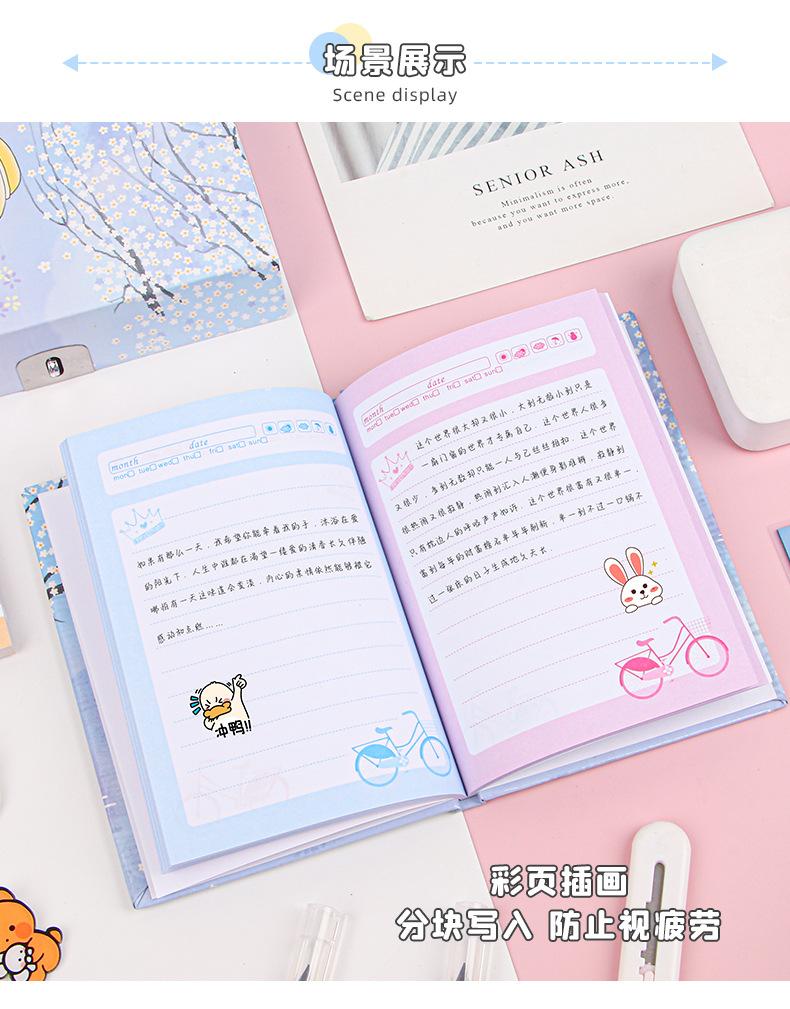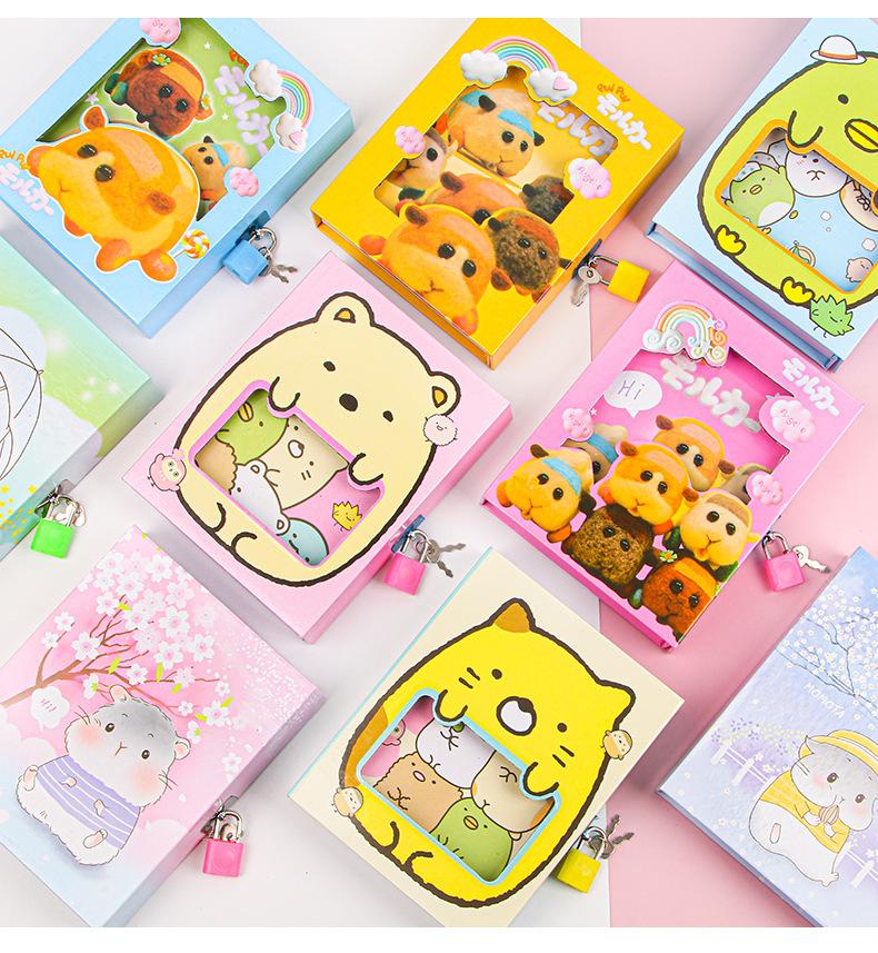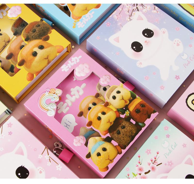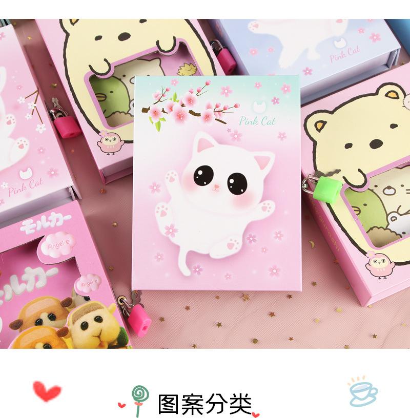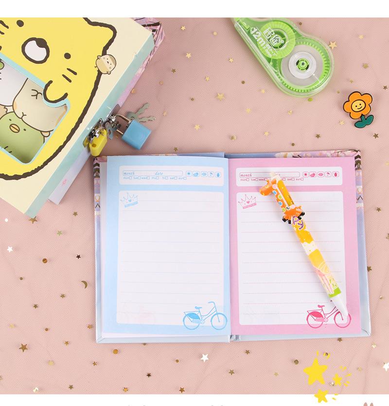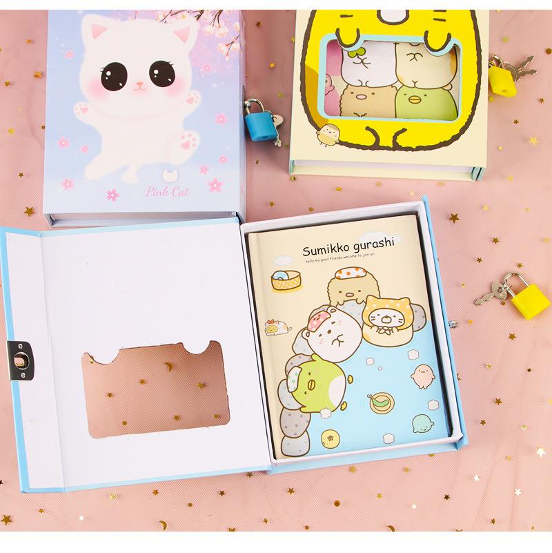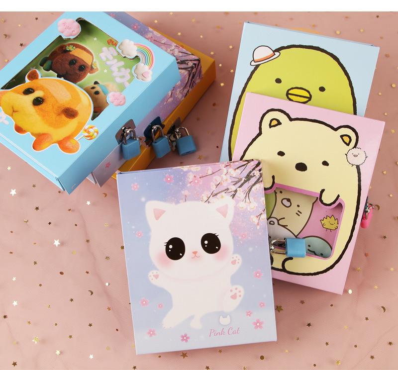 Diario Creativo de Dibujos Animados Estudiante Lindo Cuaderno con Contraseña con Caja de Cerradura Cuaderno En Caja Regalo para Niños Libro Mayor de Mano
