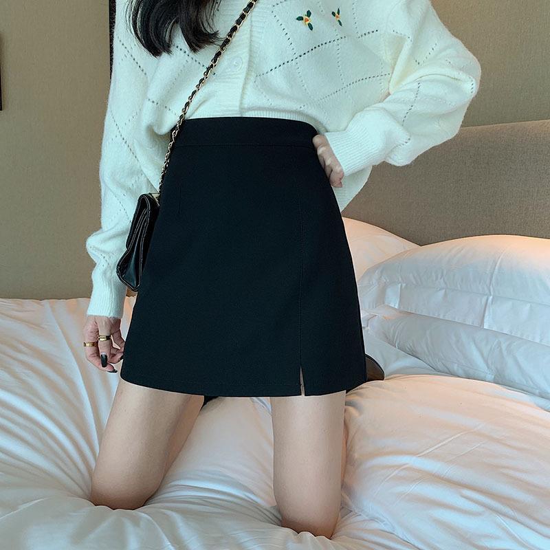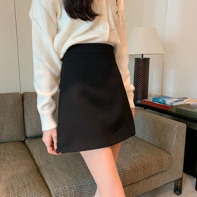 Falda corta antideslumbrante para mujer, otoño 2022, cintura alta, talla grande, adelgazante, línea A, falda negra, falda a la cadera, moda