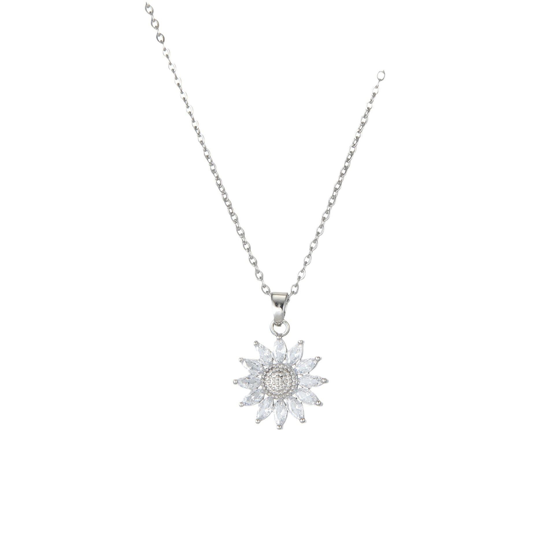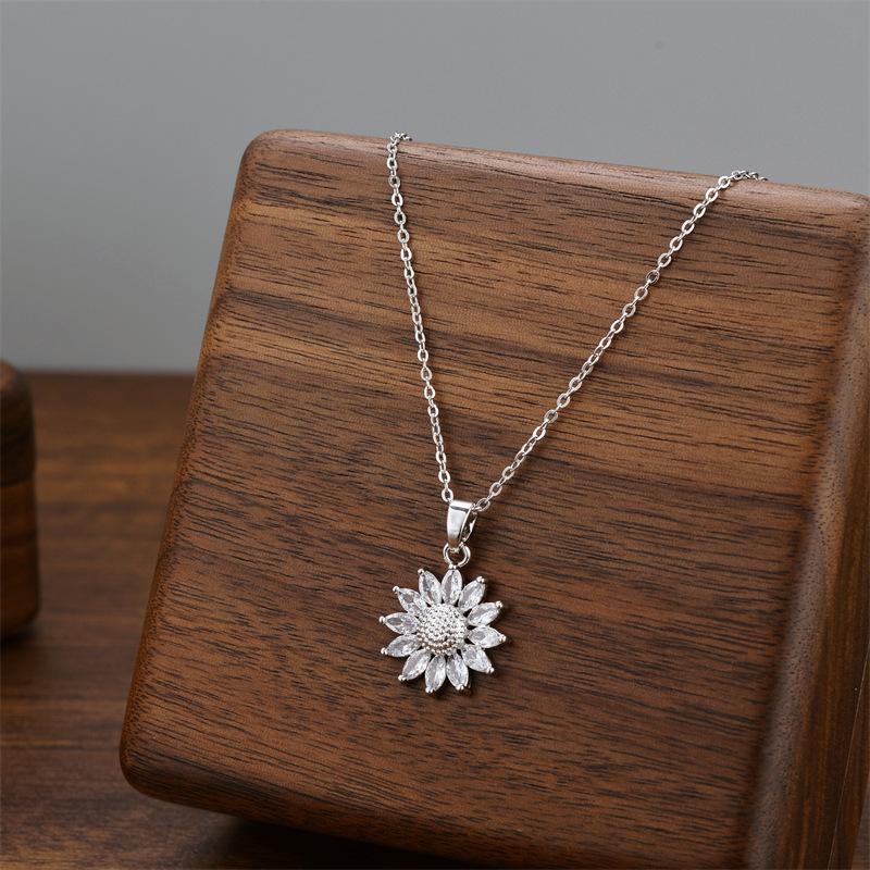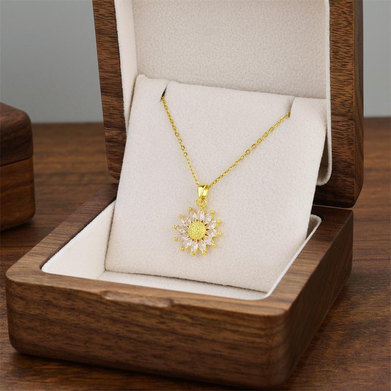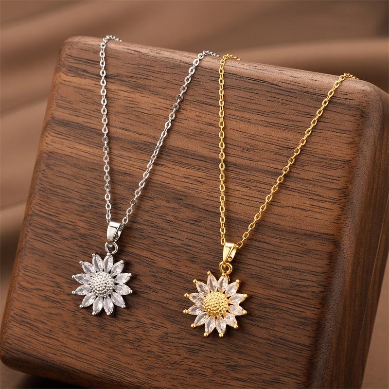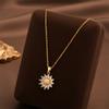 Collar de acero de titanio con colgante de girasol y circón dorado transfronterizo europeo y americano, moda femenina fresca en stock al por mayor