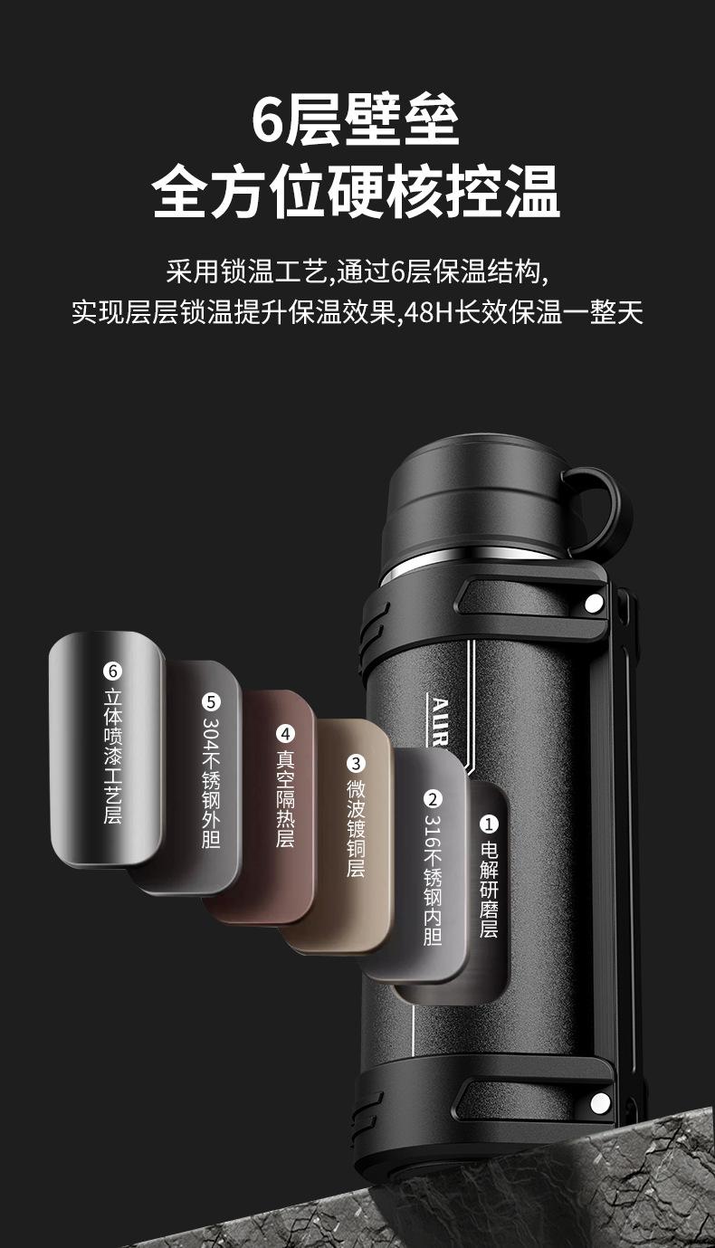 Chaleira de viagem de carro de aço inoxidável 316 de grande capacidade, presente portátil para canteiro de obras ao ar livre, copo térmico