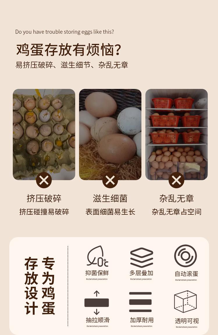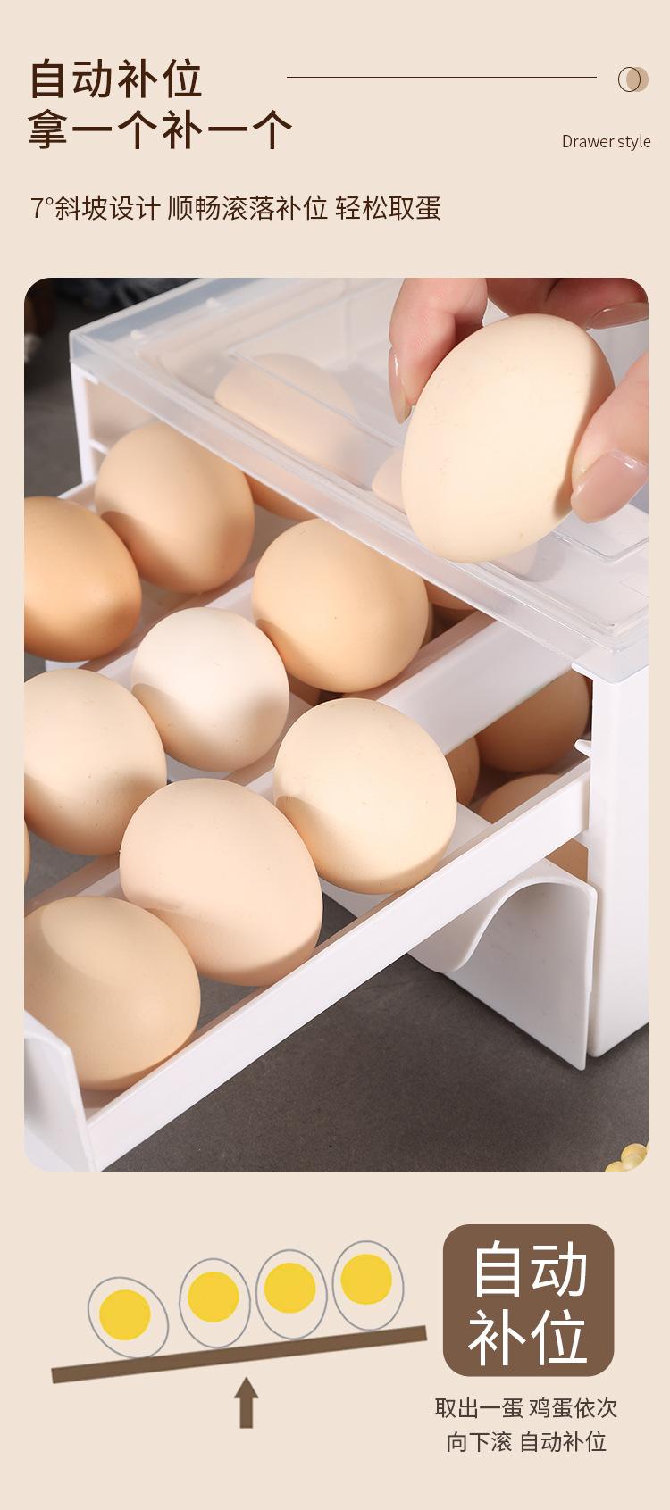 Caja de almacenamiento de huevos, refrigerador de llenado automático, cajón especial transparente de doble capa, caja de huevos, deslizador, rodillo para huevos