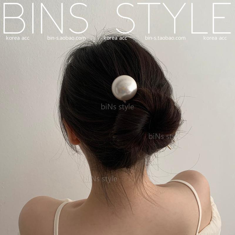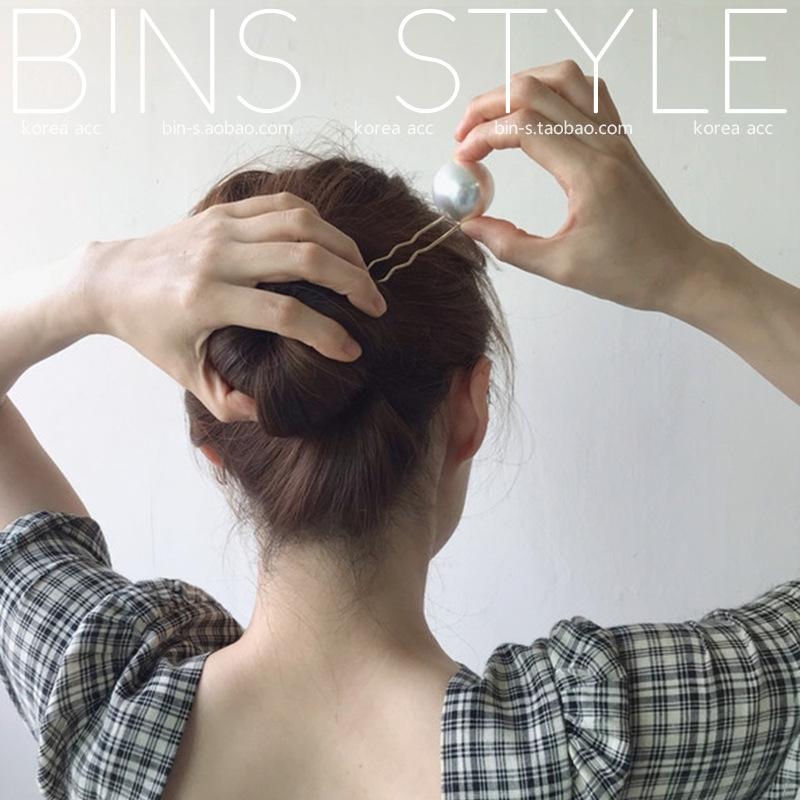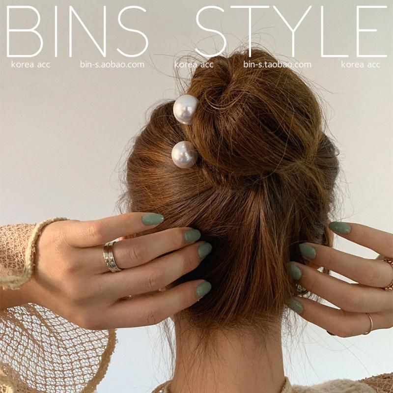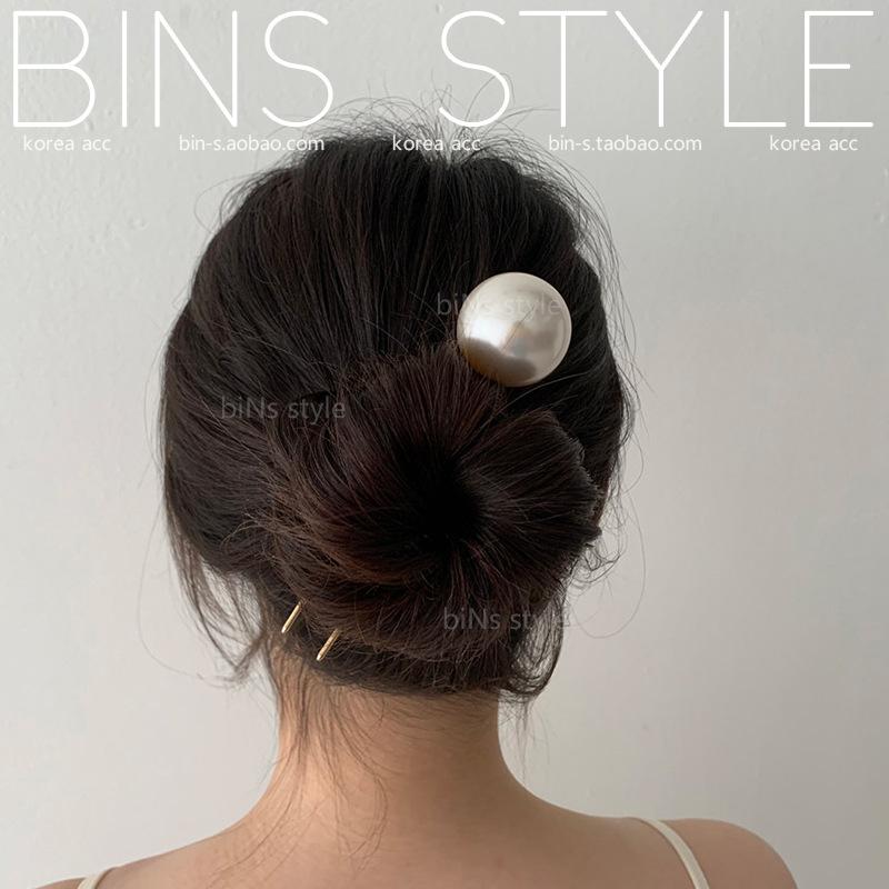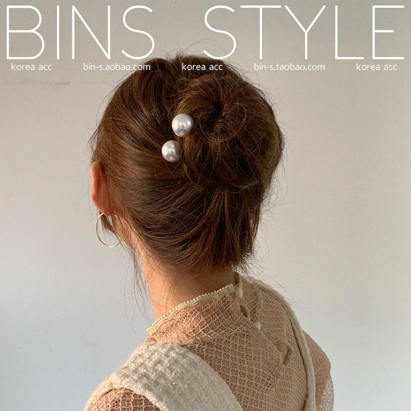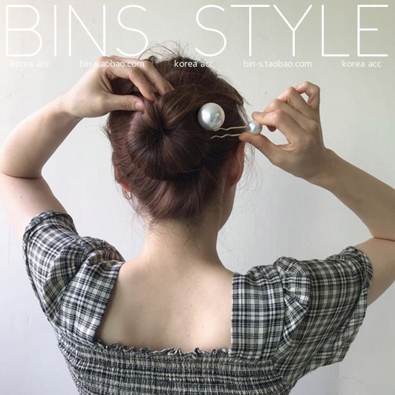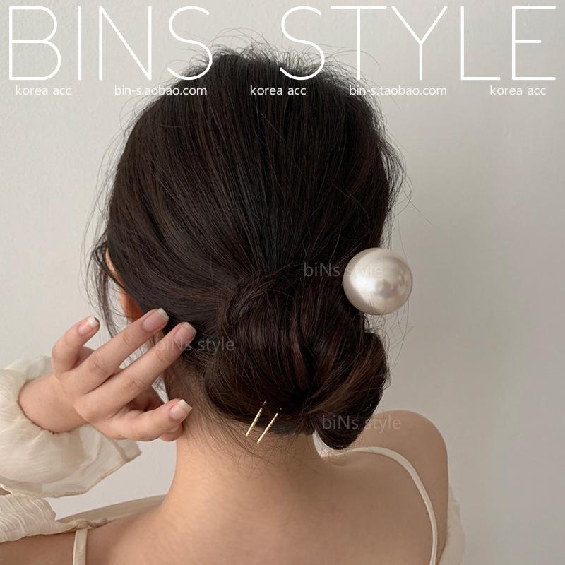 Horquilla para el pelo femenina estilo coreano elegante, combina con todo, con perlas grandes, en forma de U, con forma de bola y capullo de flor.