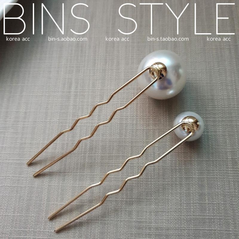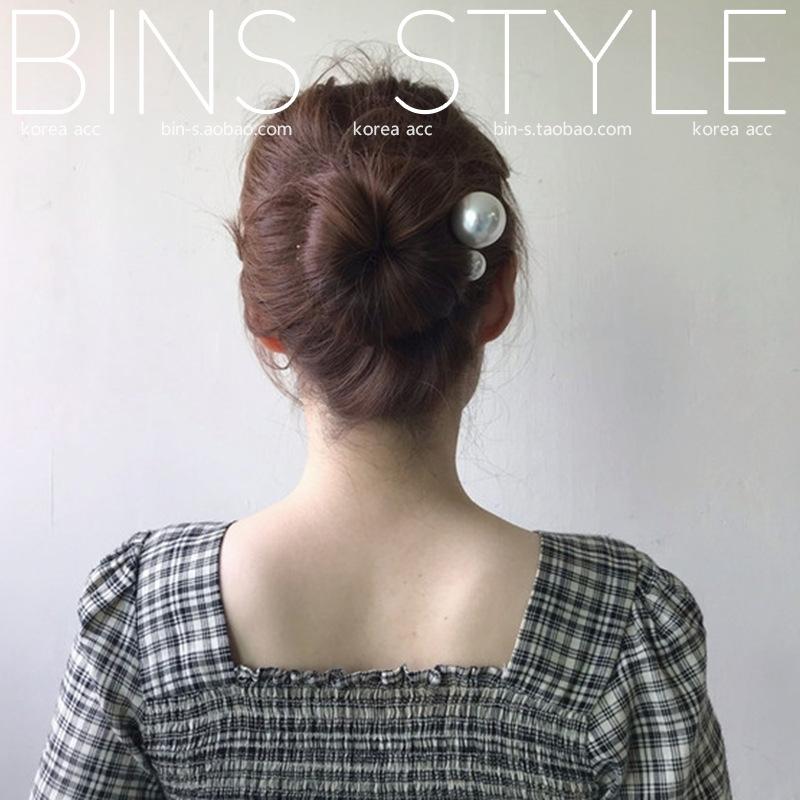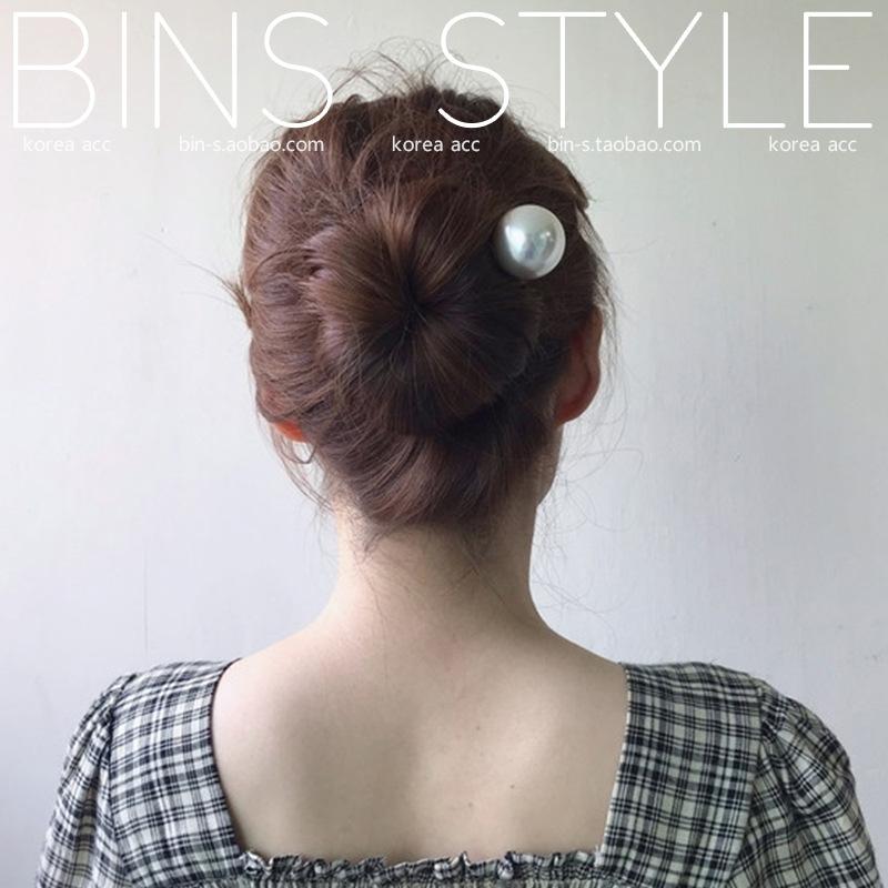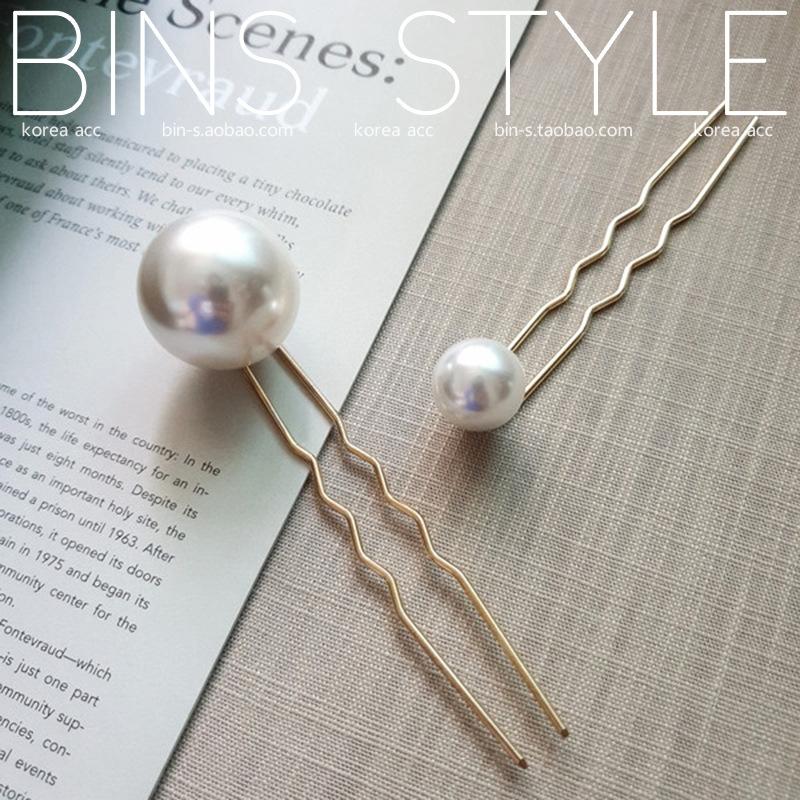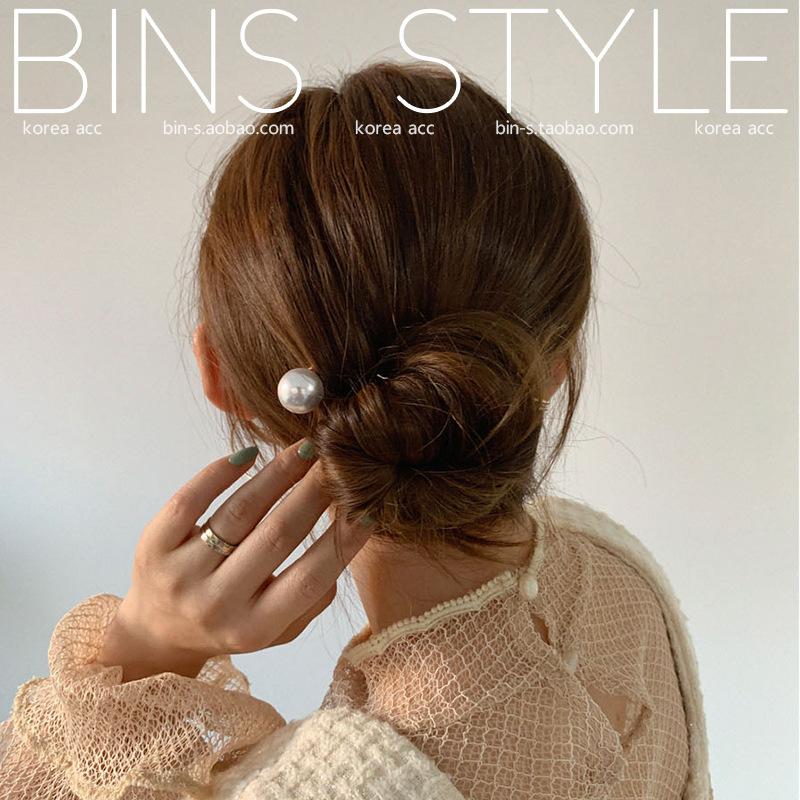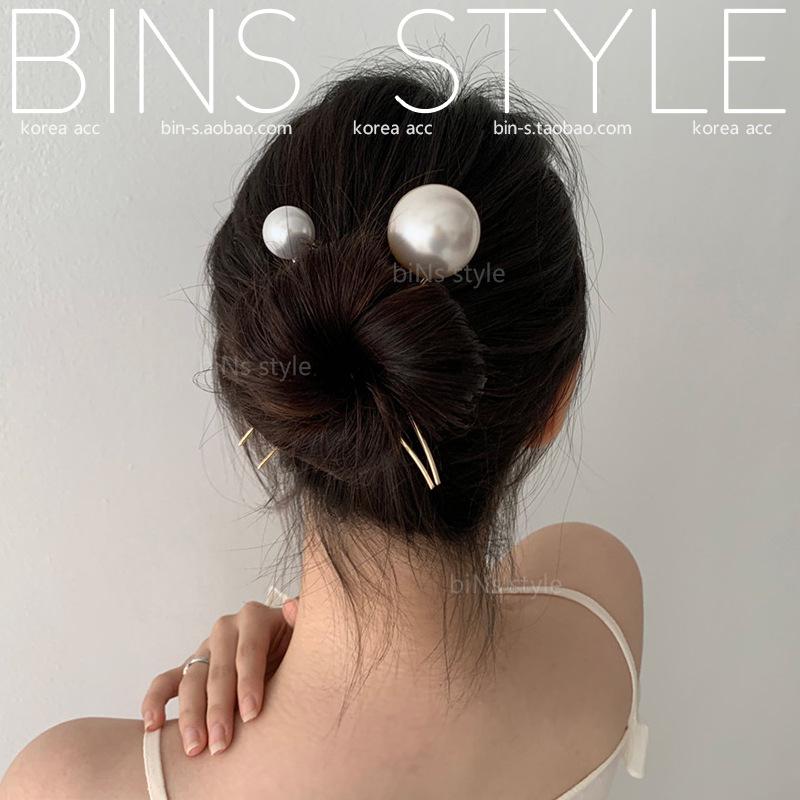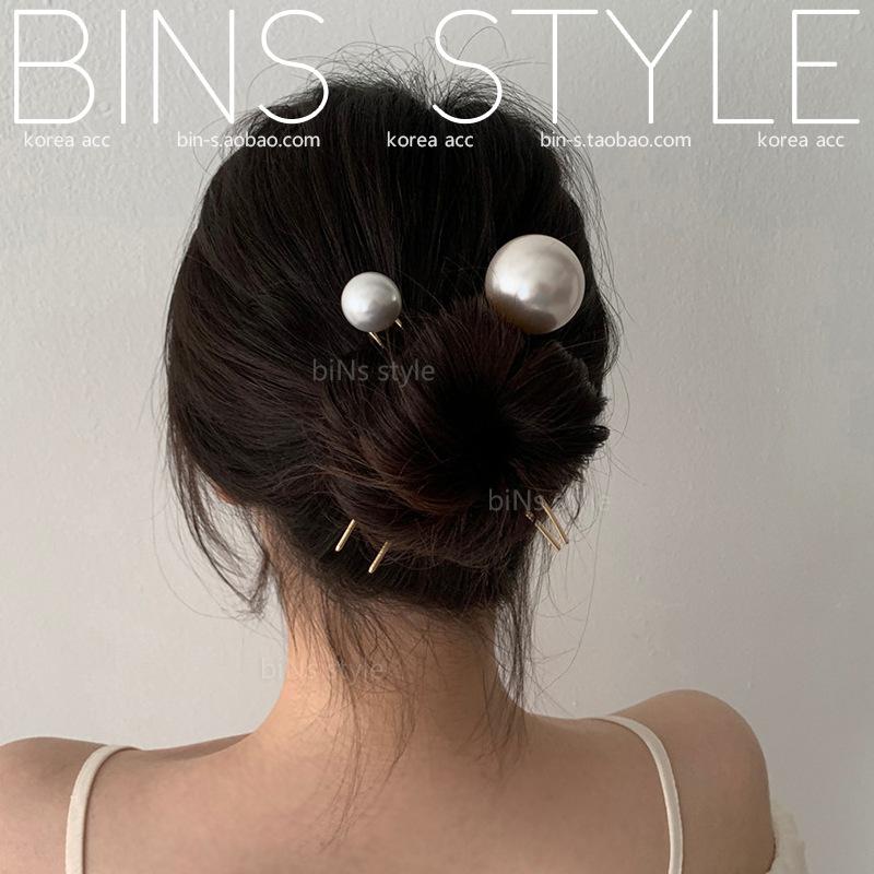 Horquilla para el pelo femenina estilo coreano elegante, combina con todo, con perlas grandes, en forma de U, con forma de bola y capullo de flor.