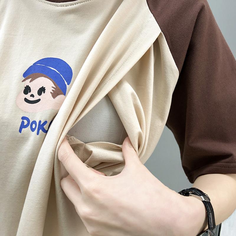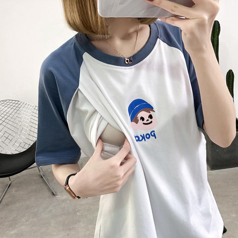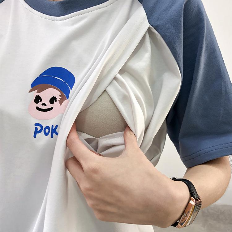 Ropa de maternidad, camiseta de moda, ropa de lactancia, top de algodón de manga corta, pijamas de verano para mamás calientes posparto, ropa de lactancia