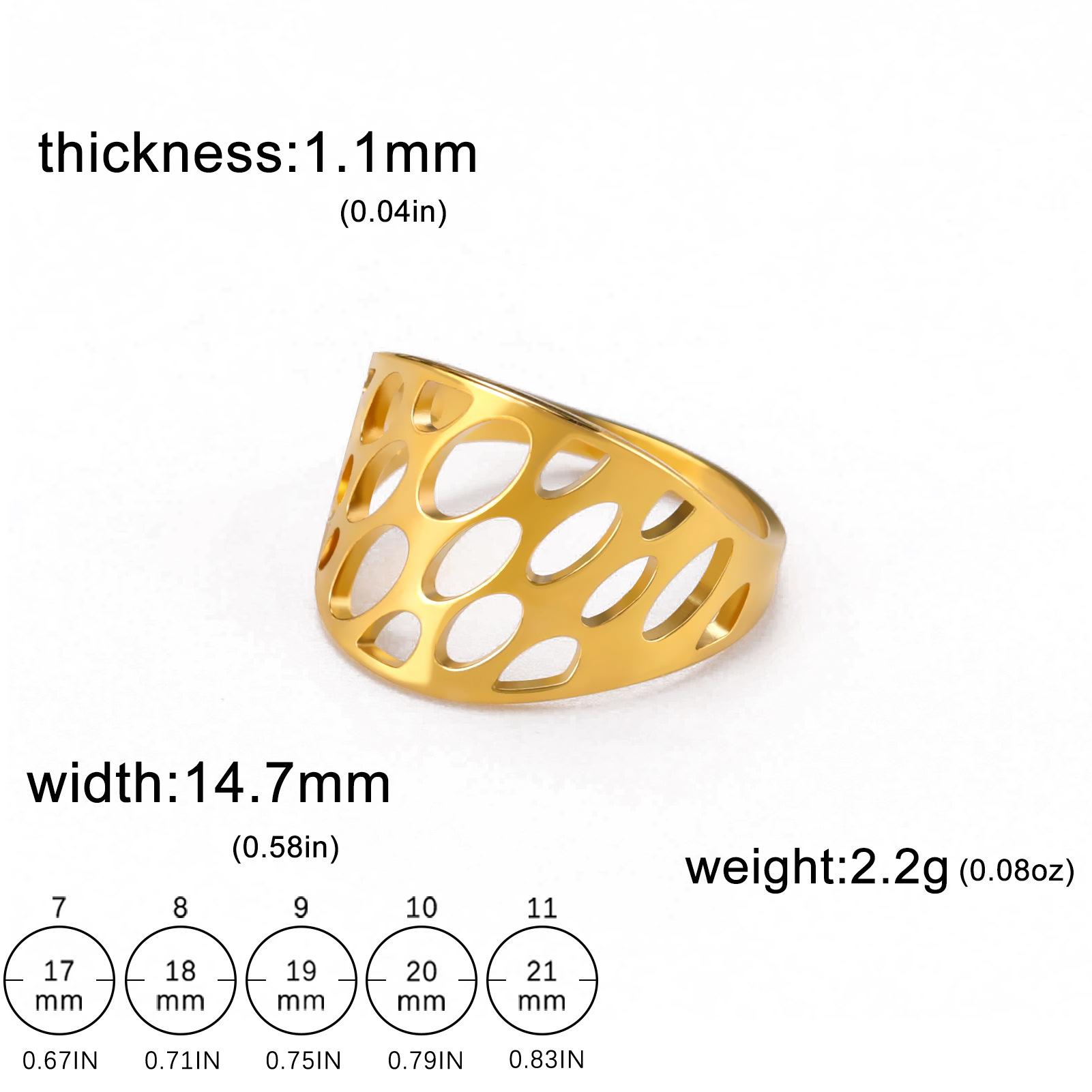 Anillo de acero inoxidable ovalado ancho y hueco de titanio con corte de patrón retro étnico simple personalizado para hombres y mujeres