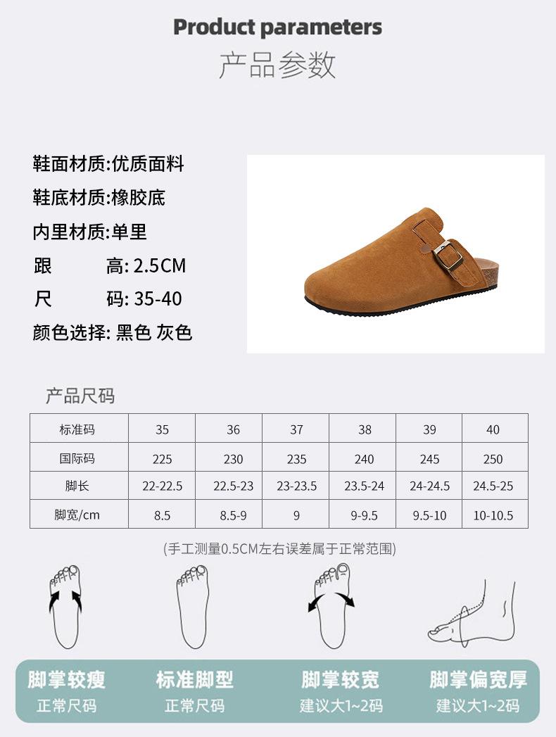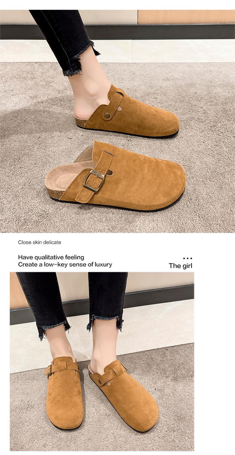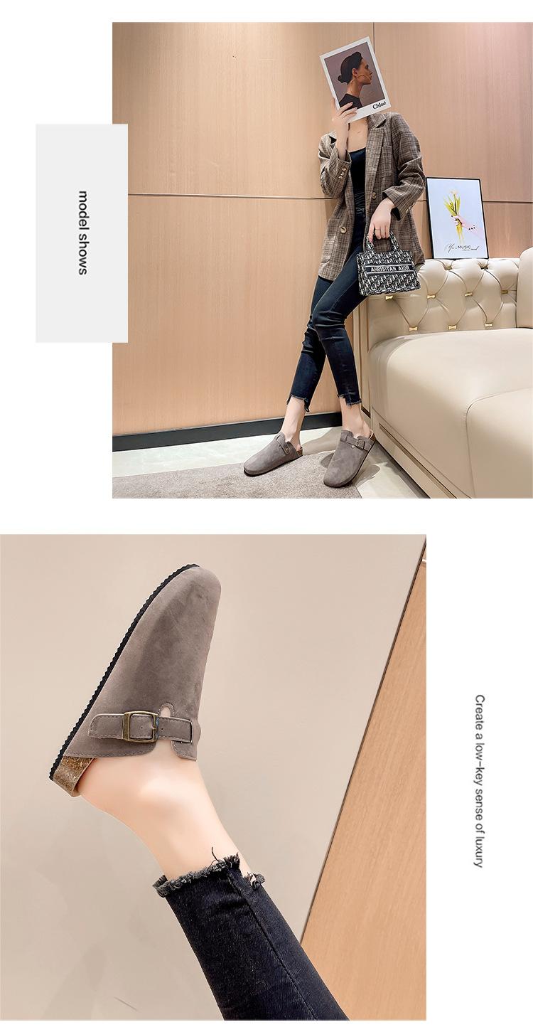 Altura del tacón:Tacón bajo (menos de 3cm)Año y temporada de cotización:Invierno 2022Estilo de la parte inferior del talón:departamentoMaterial de la suela:gomaforma:BaotouMaterial de superficie de ayuda:Ante de vaca (cuero nobuk)