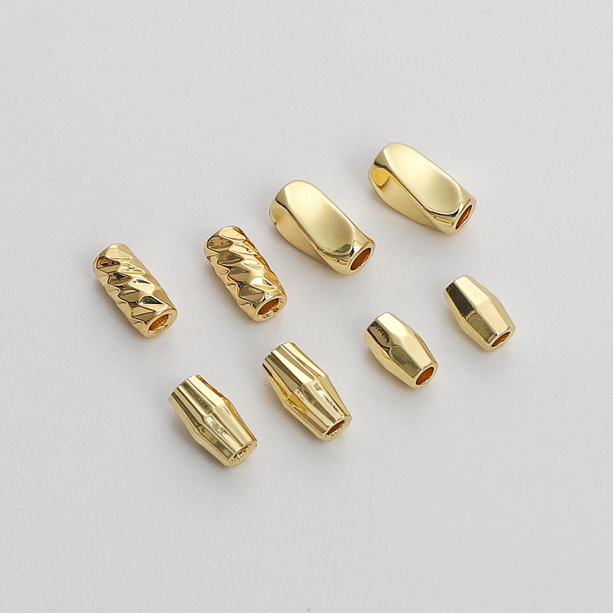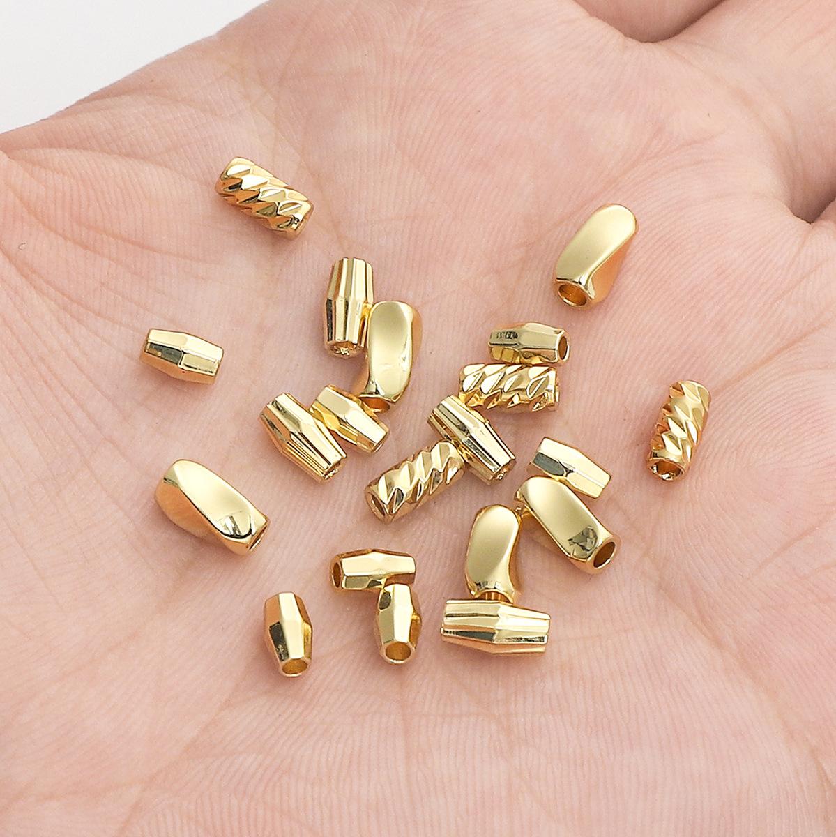 Pulsera de cuentas de arroz con flor de oro de 14 quilates con preservación del color, collar de cuentas de cobre, cuentas cuadradas largas torcidas, material de bricolaje hecho a mano, accesorios de joyería