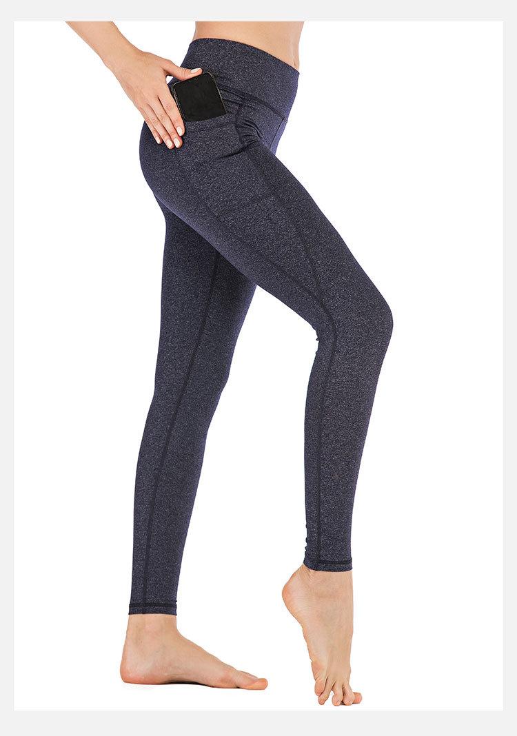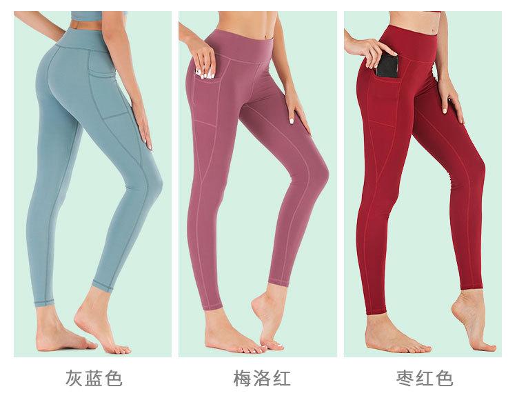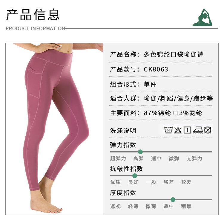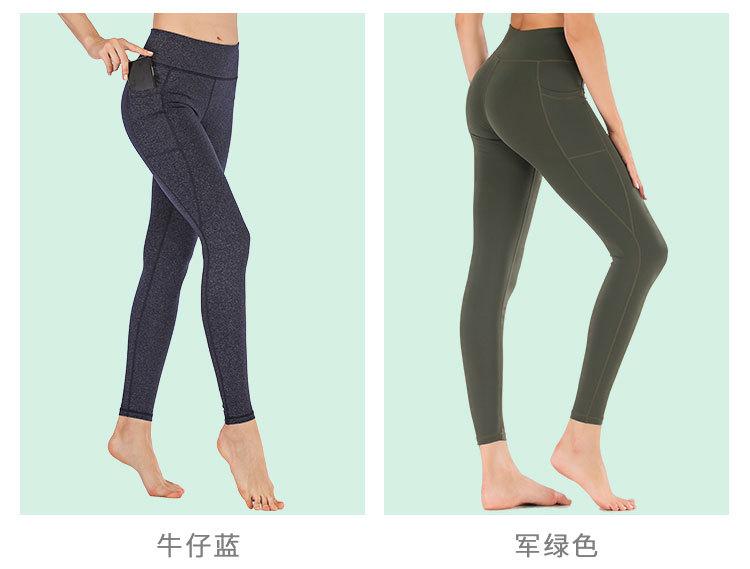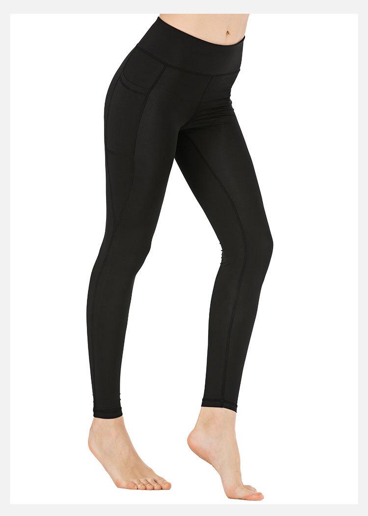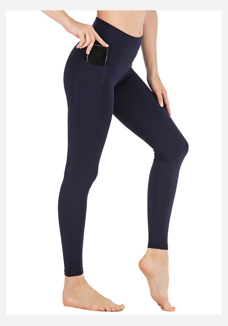 Pantalones de yoga de nailon de cintura alta elásticos con bolsillo en la cadera para mujer