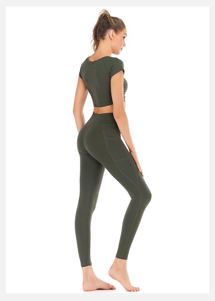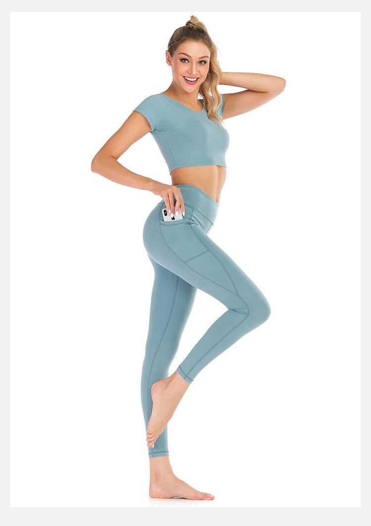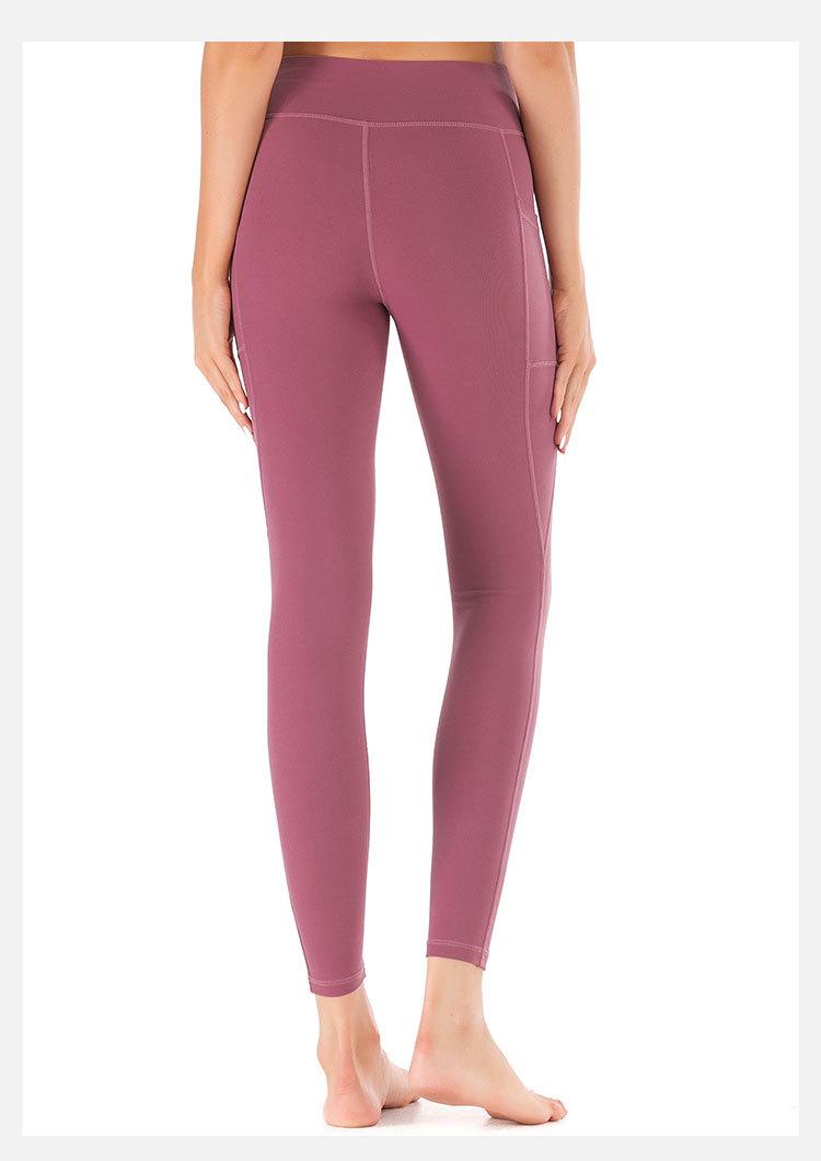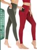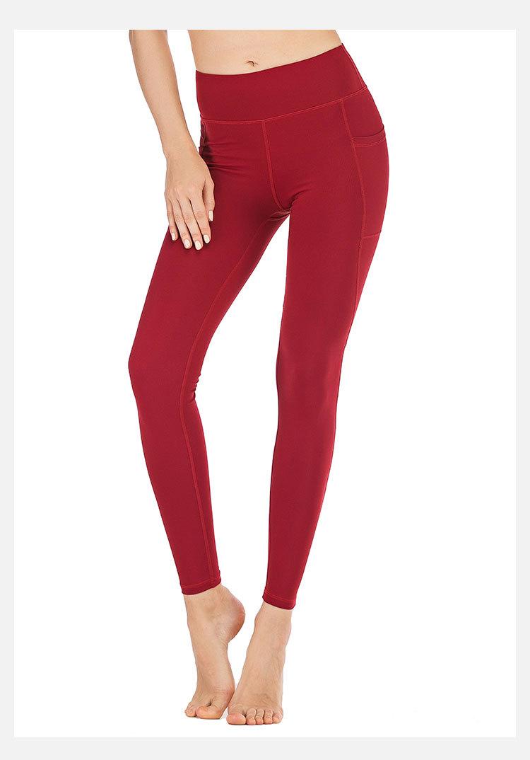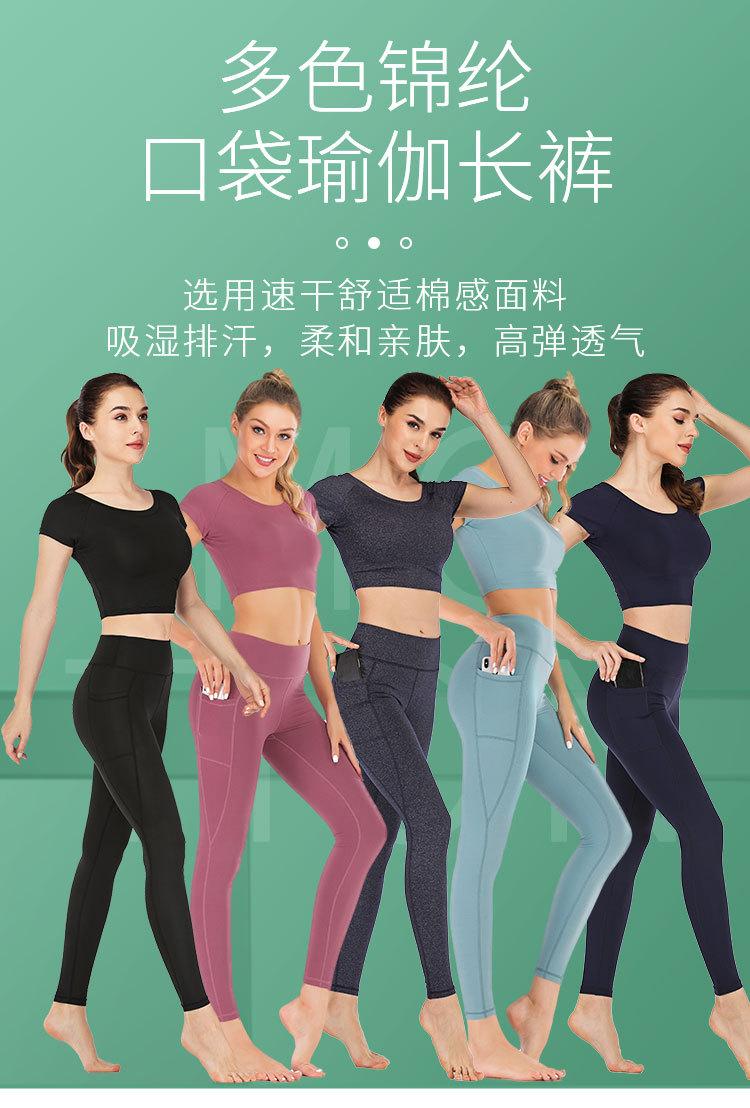 Pantalones de yoga de nailon de cintura alta elásticos con bolsillo en la cadera para mujer