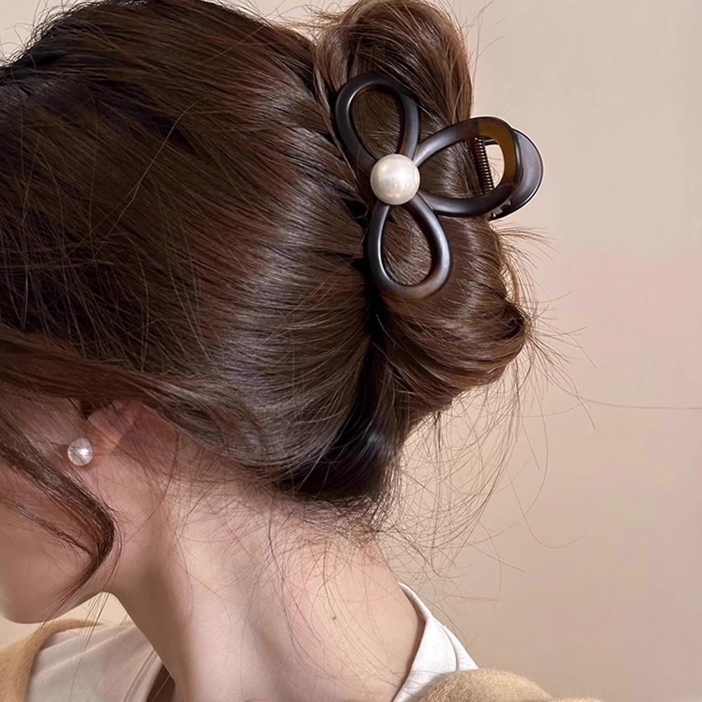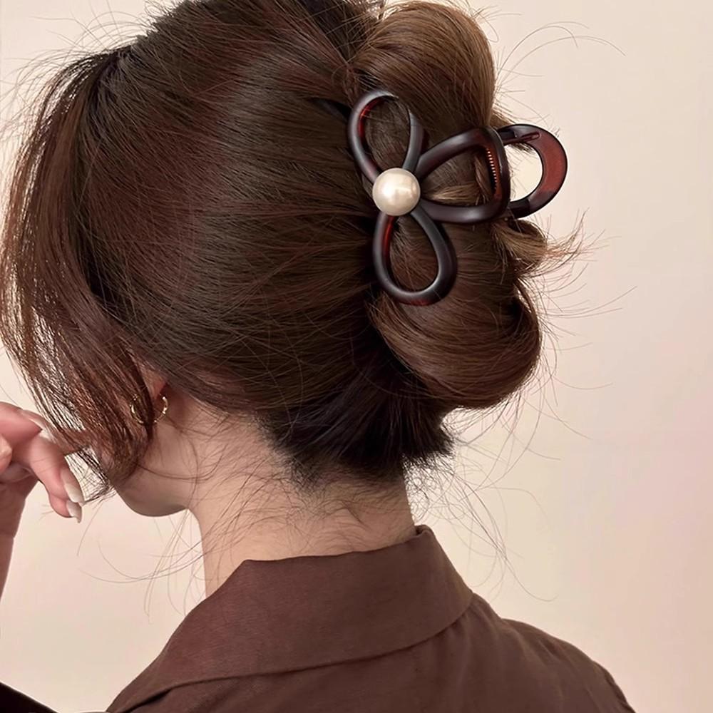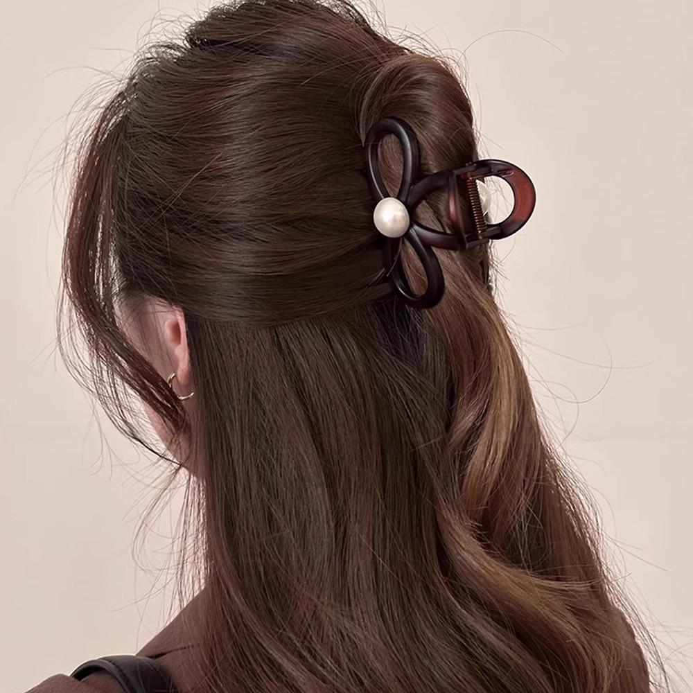 Pinza de Garra Acrílica Pequeña Modelo Nuevo 2024 Clip de Tiburón de Lujo con Perlas de Alta Gama Pinza para el Cabello Simple Accesorio para la Cabeza