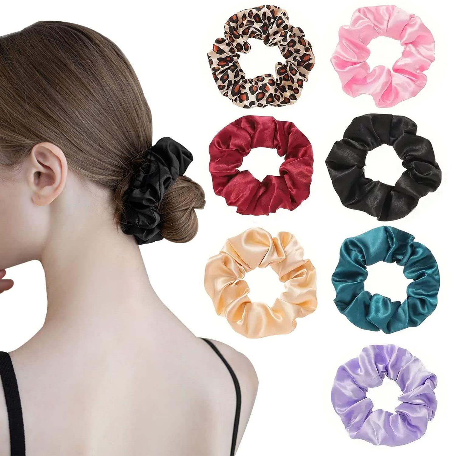 Banda para el cabello de intestino grueso de color sólido europeo y americano transfronterizo, accesorios para el cabello, lazo, banda de goma al por mayor, estilo de comercio exterior, flor para la cabeza de satén