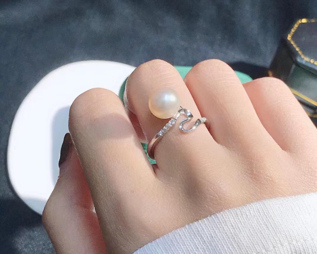 Anillo pequeño para mujer simple de Joker para dedo índice con micro engaste de circonita 8-10mm Perla nicho temperamento lujo ligero joyería de chica hot al por mayor