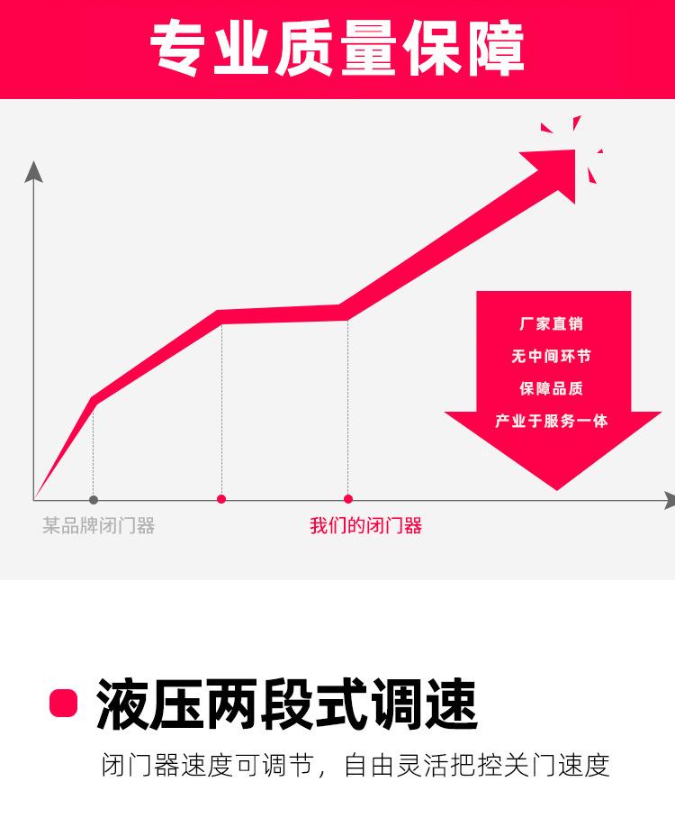 5. Dos válvulas hidráulicas controlan independientemente la velocidad de cierre y bloqueo de la puerta en dos etapas, y realizan control hidráulico en toda la etapa.
