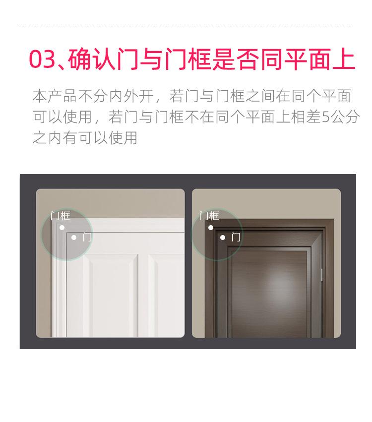 1. Antirrobo: Adecuado para la instalación en puertas de madera, puertas de hierro, puertas de acero inoxidable y puertas de aleación de aluminio en hogares, comunidades y oficinas en general. Cuando una persona empuja la puerta para abrirla, la puerta se bloqueará automáticamente, y no es necesario bloquearla manualmente, lo que no da a los ladrones ninguna oportunidad de cometer delitos.