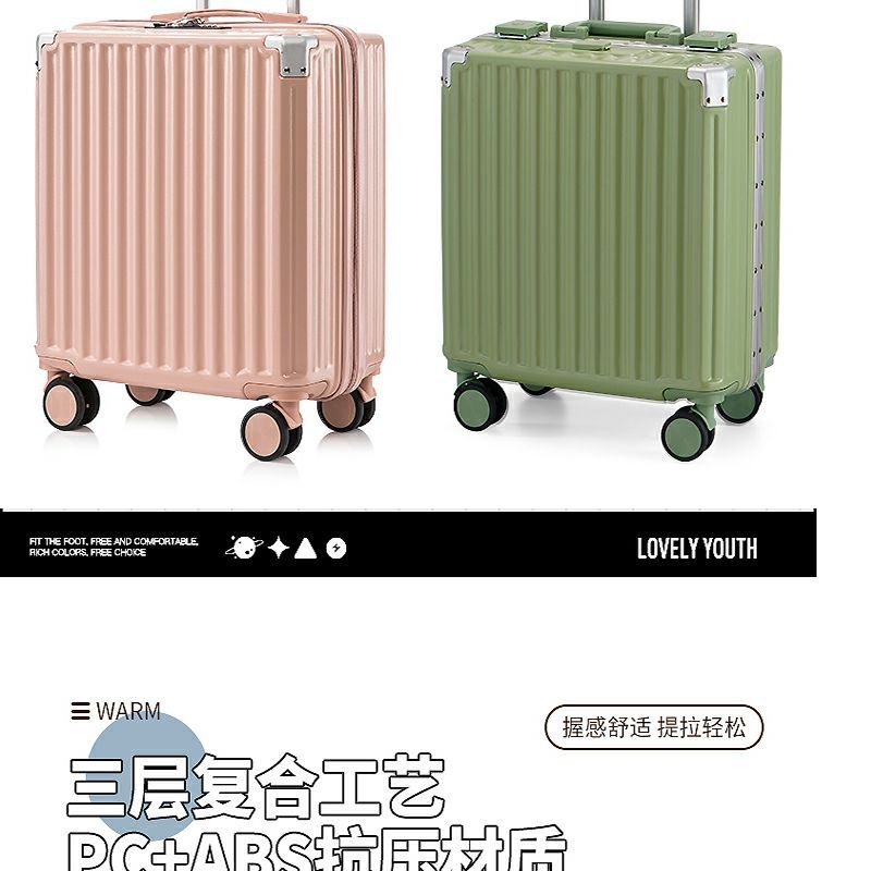 Maleta pequeña con ruedas de 18 pulgadas para mujer, con marco de aluminio, para hombre, nueva maleta de viaje recargable sólida 2023