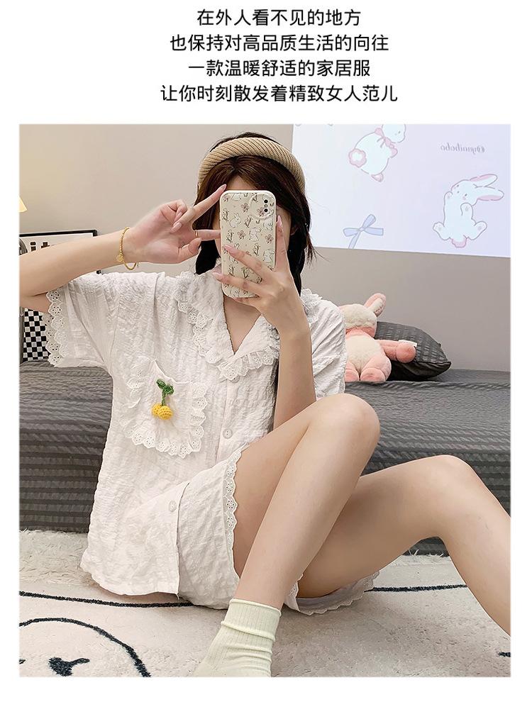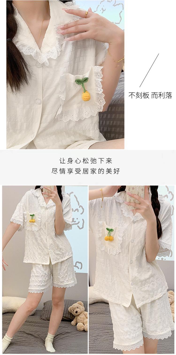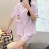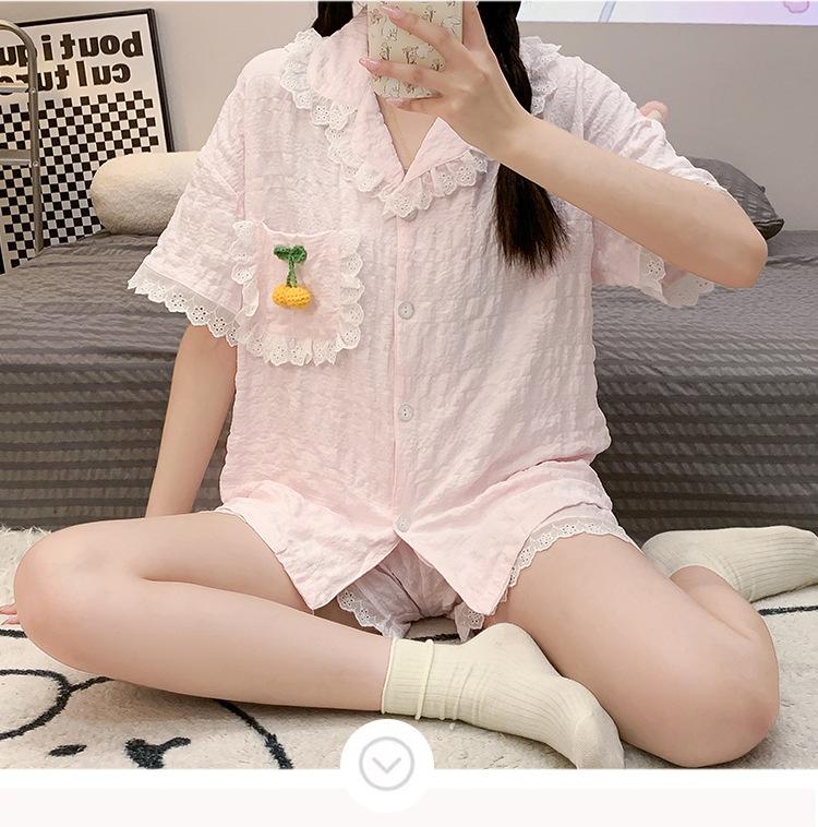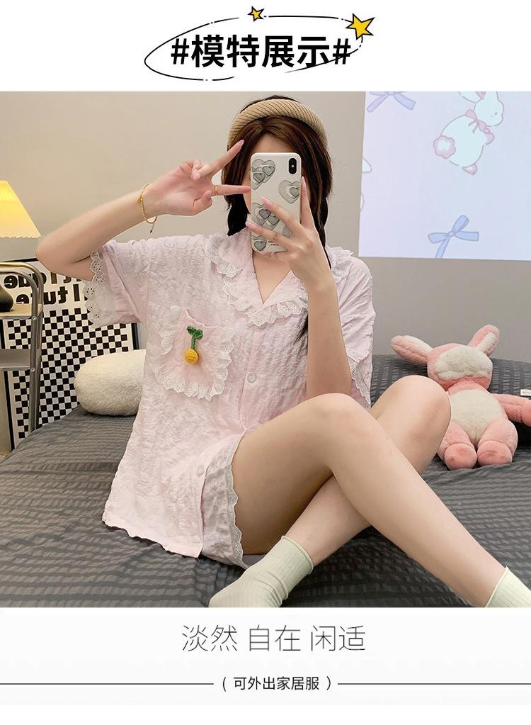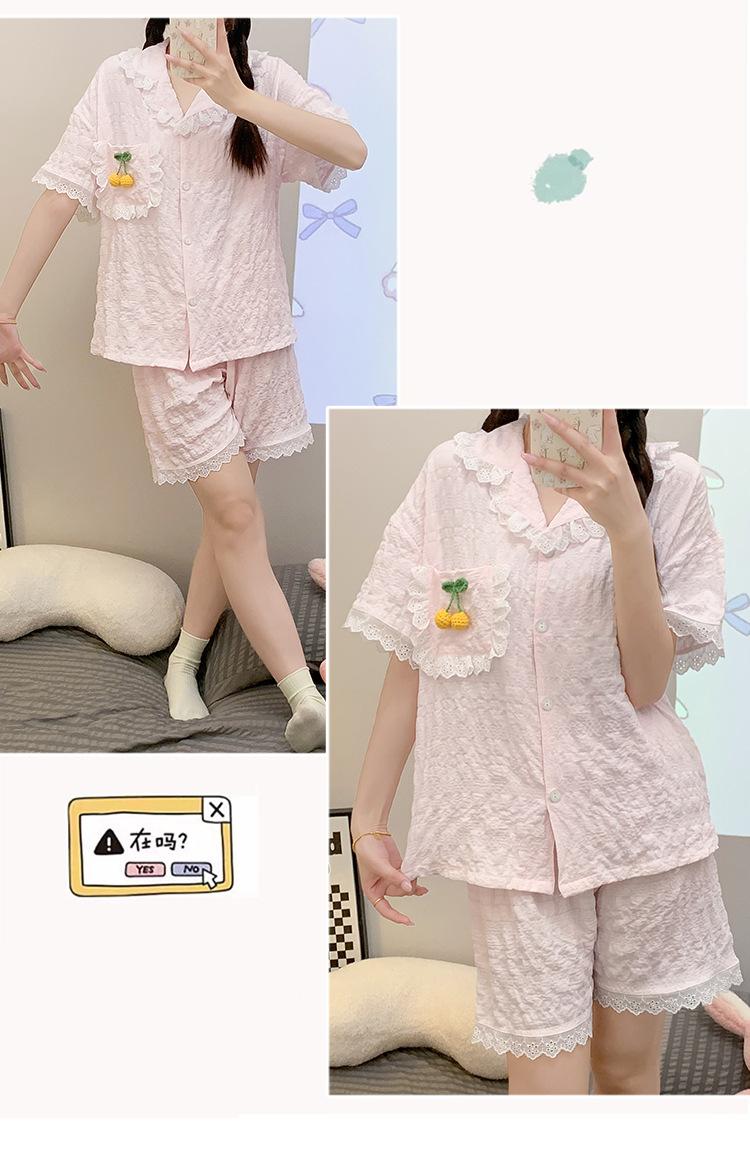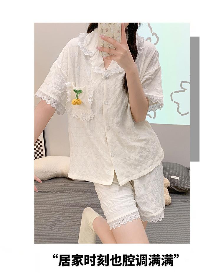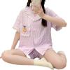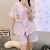 Pijama de Verano para Mujer Nubes Algodón Lindo Dulce Estilo Ins Manga Corta Shorts Conjunto de Dos Piezas Delgada Ropa de Casa