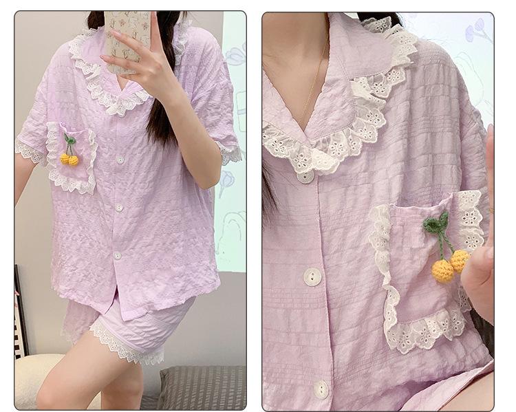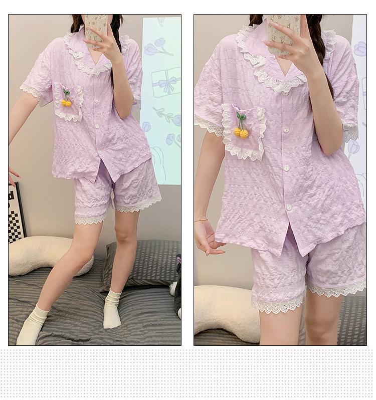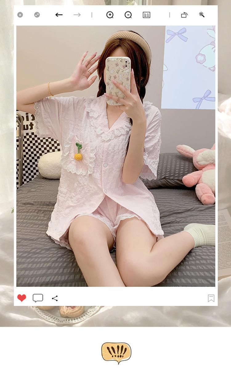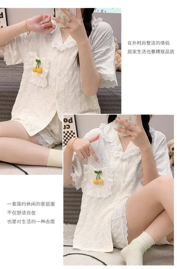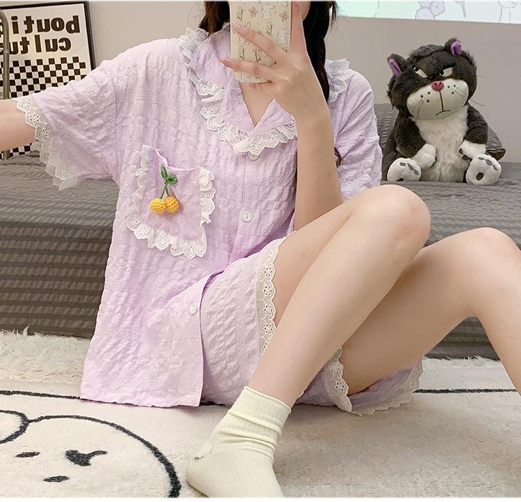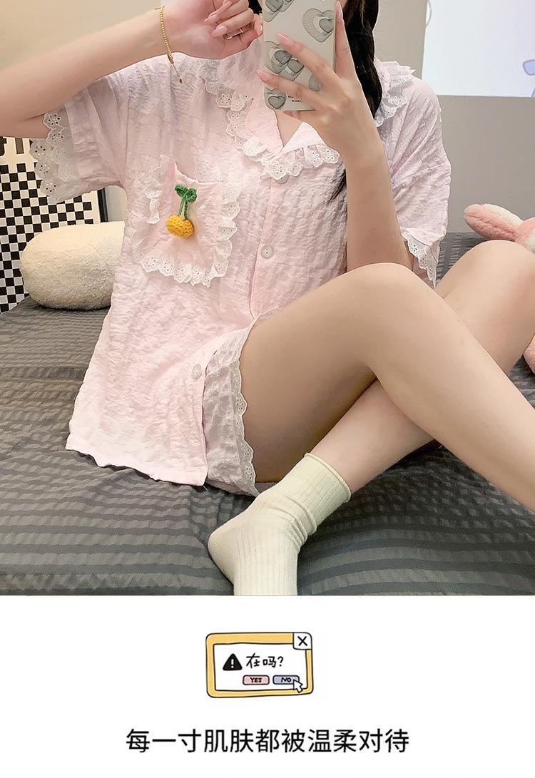 Pijama de Verano para Mujer Nubes Algodón Lindo Dulce Estilo Ins Manga Corta Shorts Conjunto de Dos Piezas Delgada Ropa de Casa