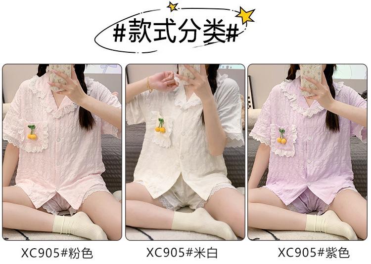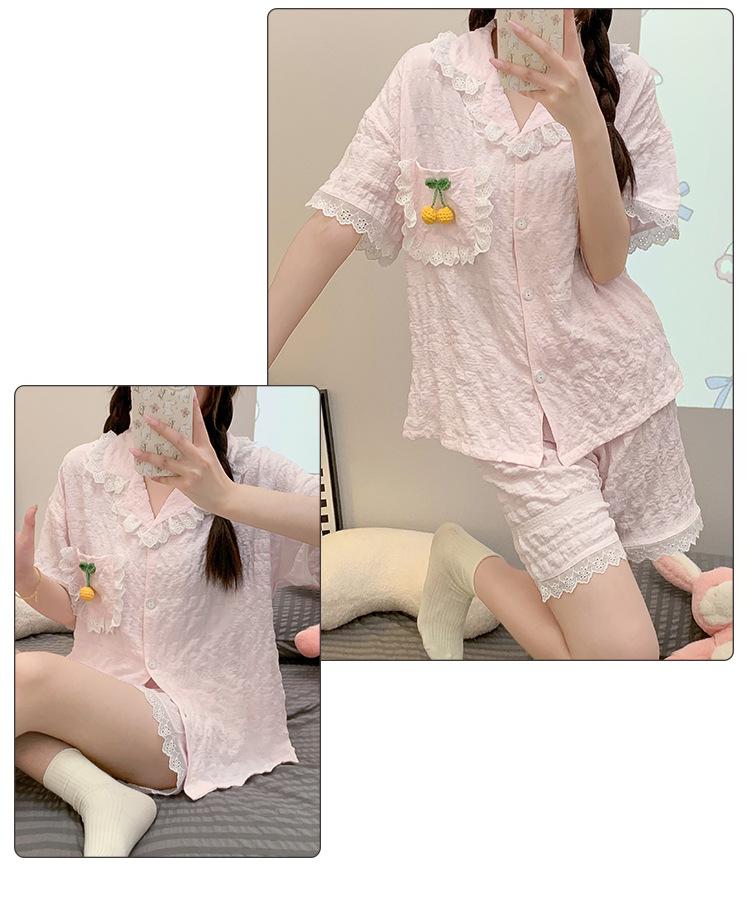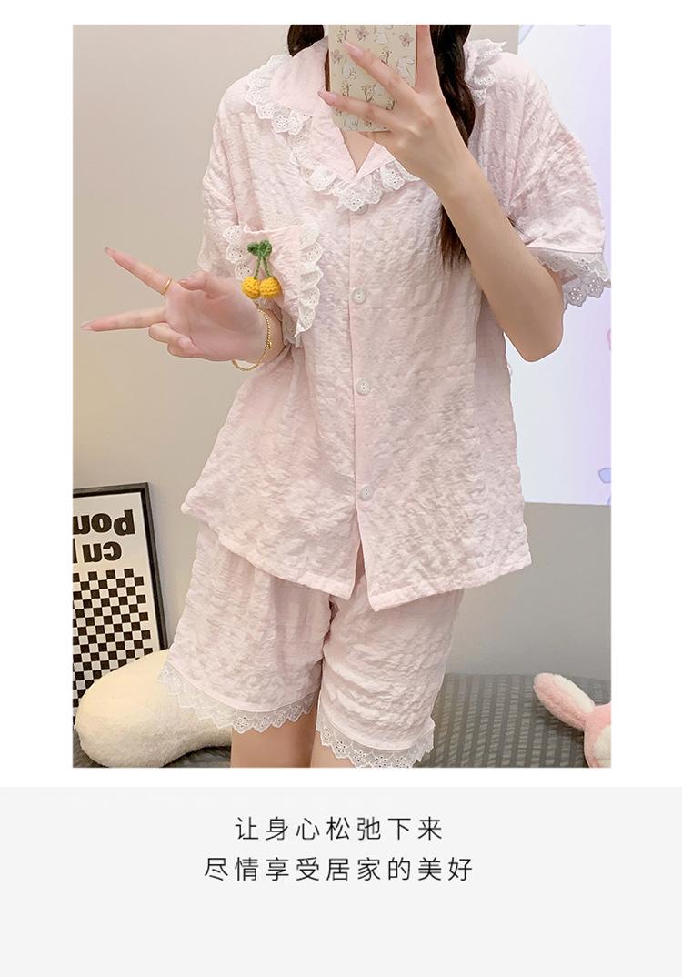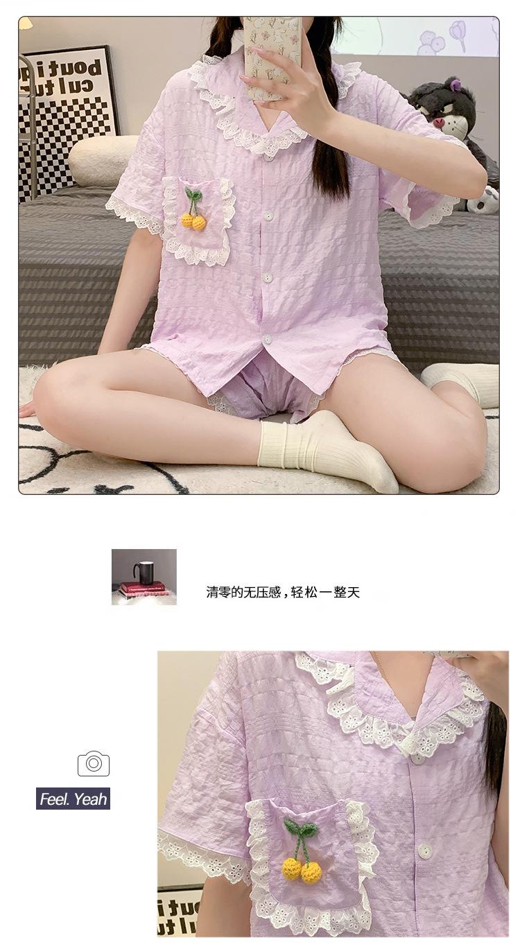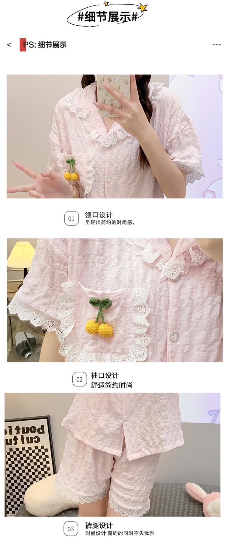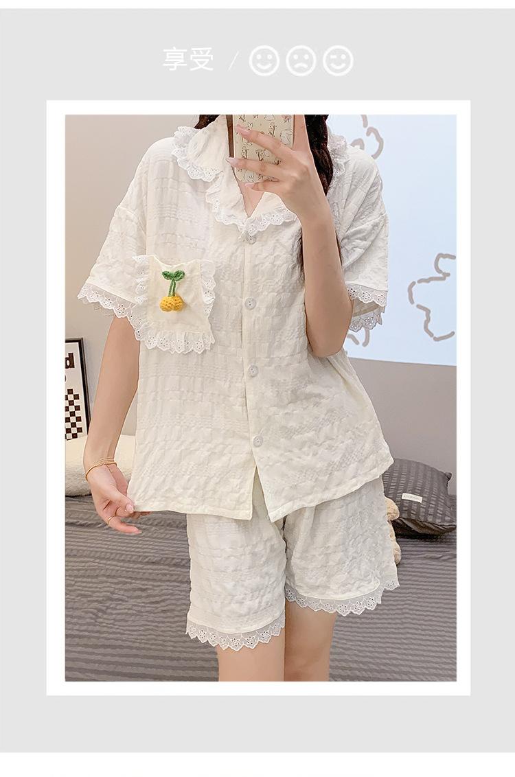 Pijama de Verano para Mujer Nubes Algodón Lindo Dulce Estilo Ins Manga Corta Shorts Conjunto de Dos Piezas Delgada Ropa de Casa