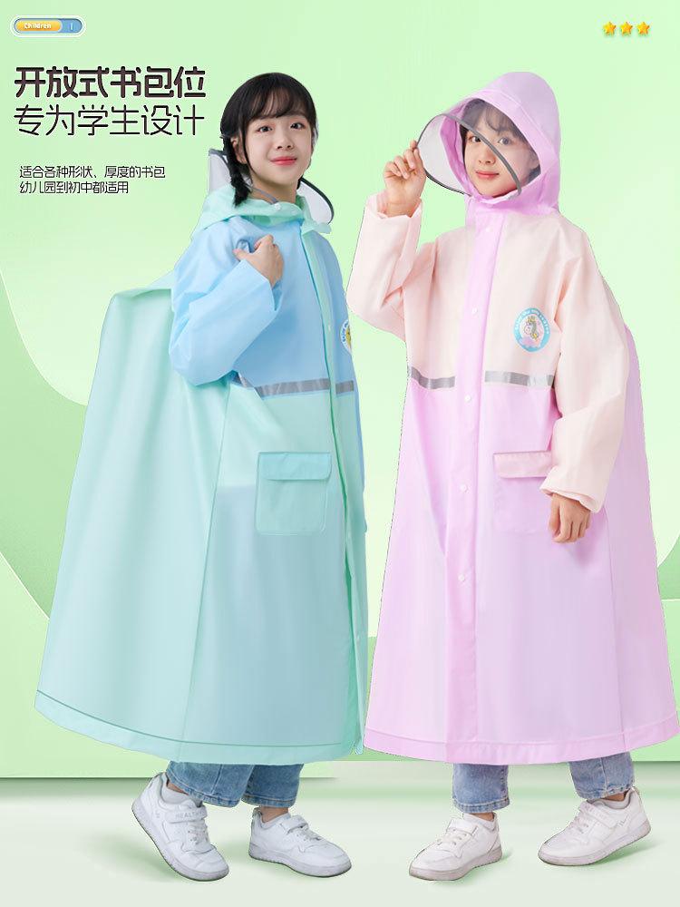 Impermeable EVA para niños, para niños y niñas de primaria y secundaria, impermeable de cuerpo completo con asiento para mochila, poncho escolar impermeable