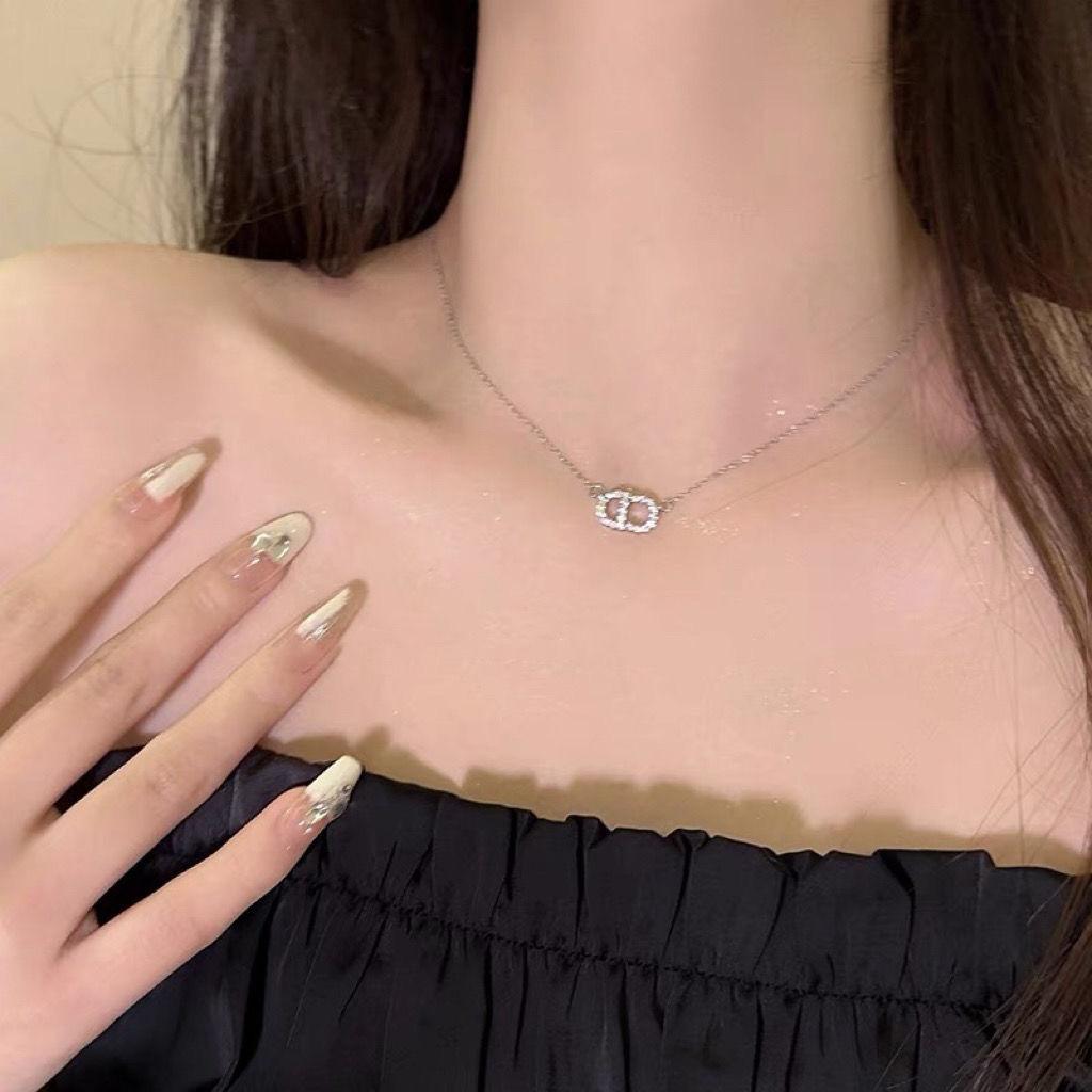 Collar con colgante de circonita con forma de CD para mujer, ligero, lujoso, con diseño de nicho, elegante y de alta gama, cadena para clavícula que combina con todo.