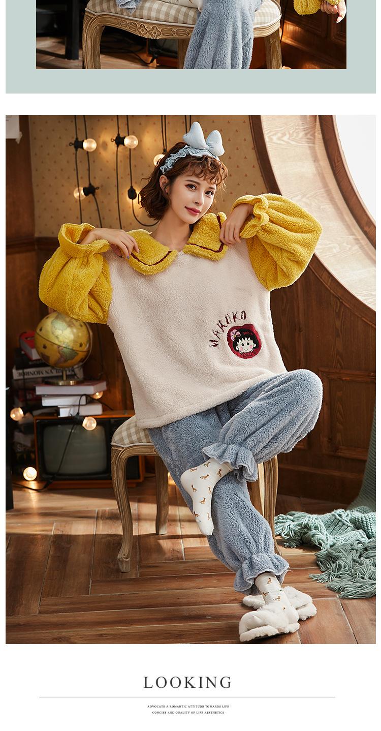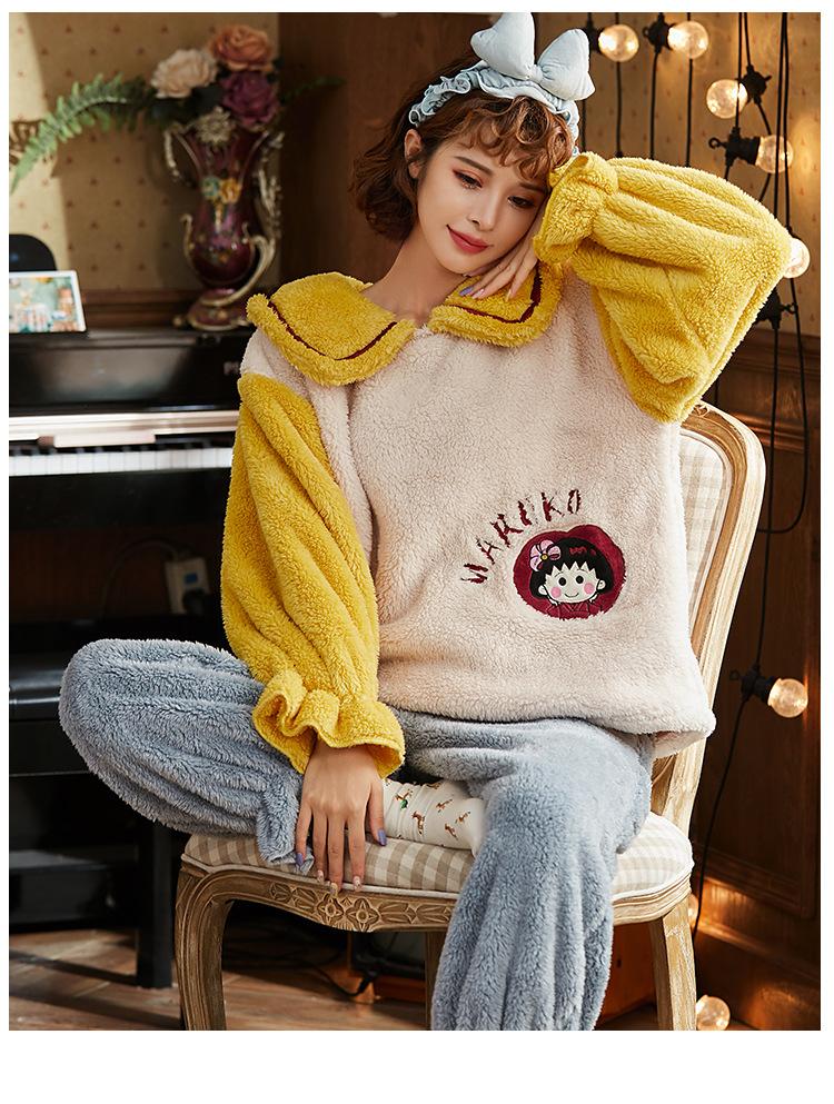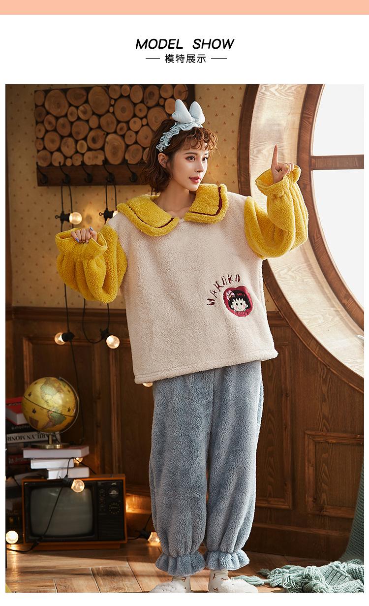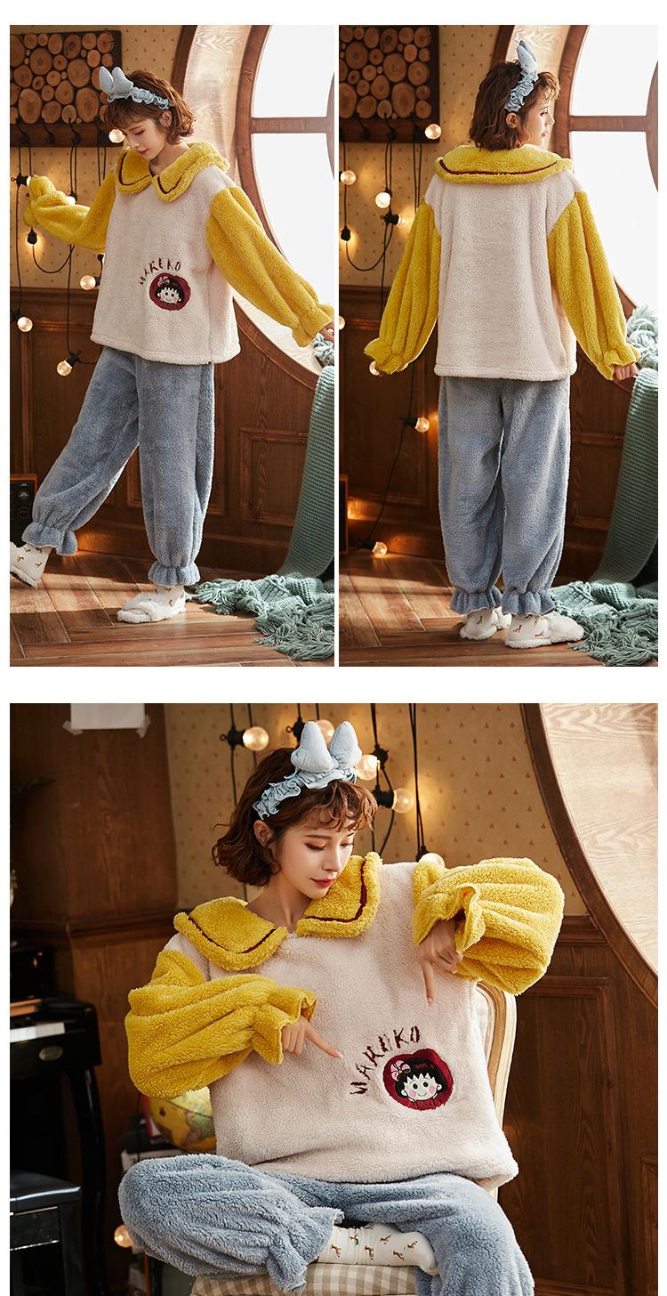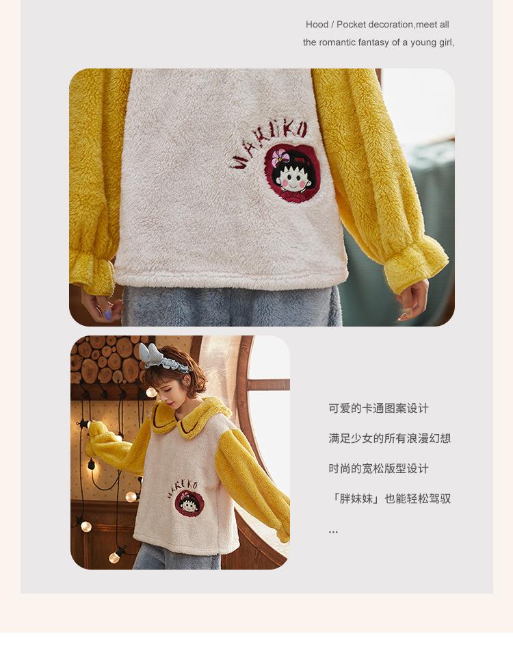 Nuevo pijama de dibujos animados lindo para mujer, traje con capucha, pantalones de manga larga, ropa de hogar cálida y gruesa
