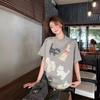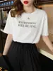 Playera de Algodón Puro con Cuello de Manga Corta para Mujer Verano Nuevo 2024 Estilo Coreano Holgada Estampado de Letras Moda Casual Top para Mujer