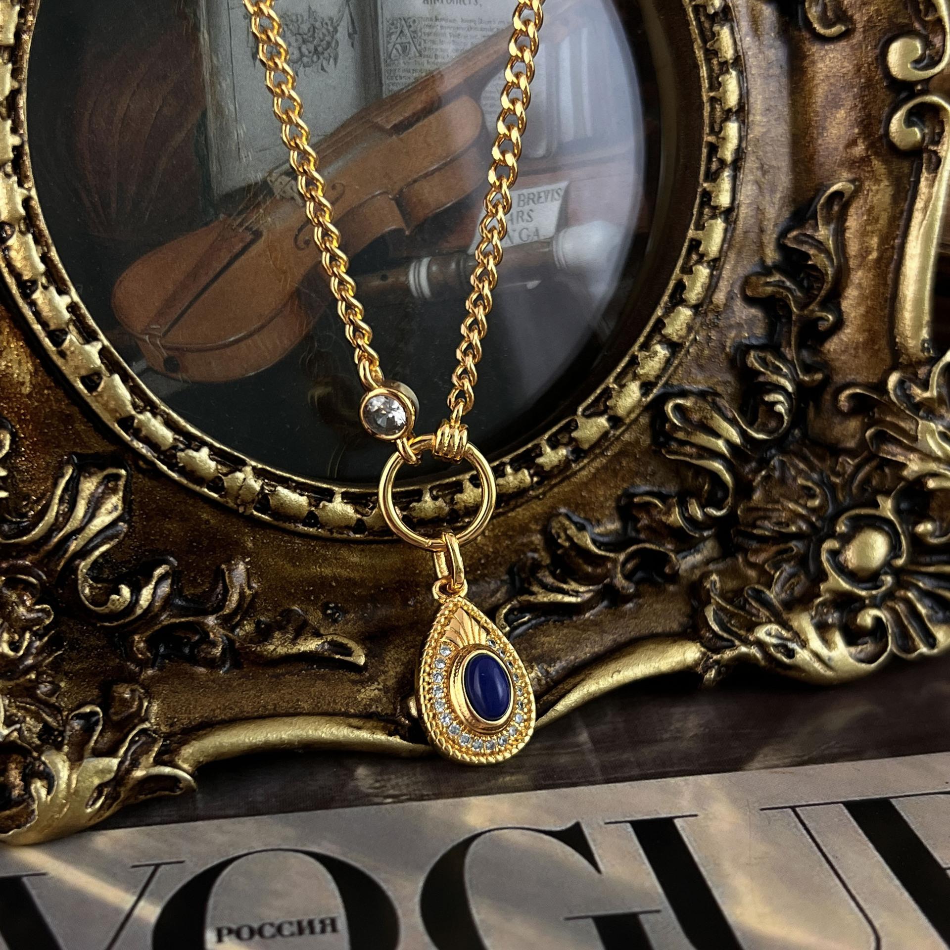 Collar chapado en oro de lapislázuli de alta calidad, diseño original 2023, cadena de clavícula exquisita, estilo francés retro.