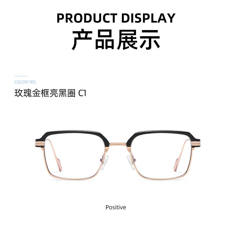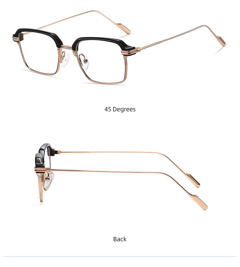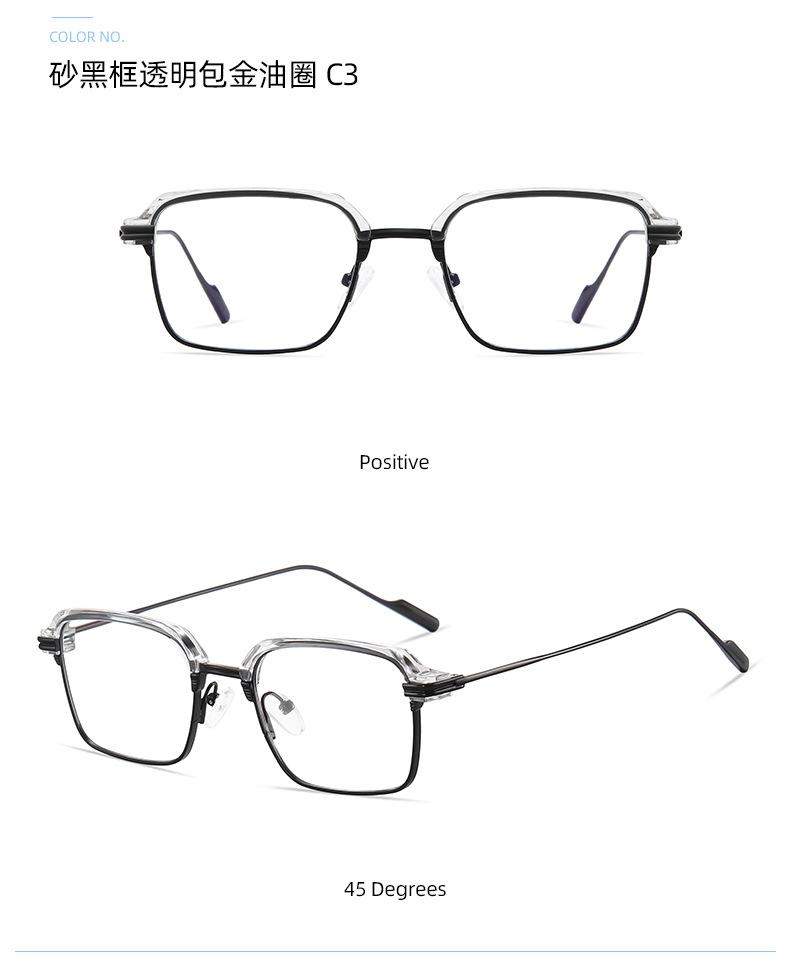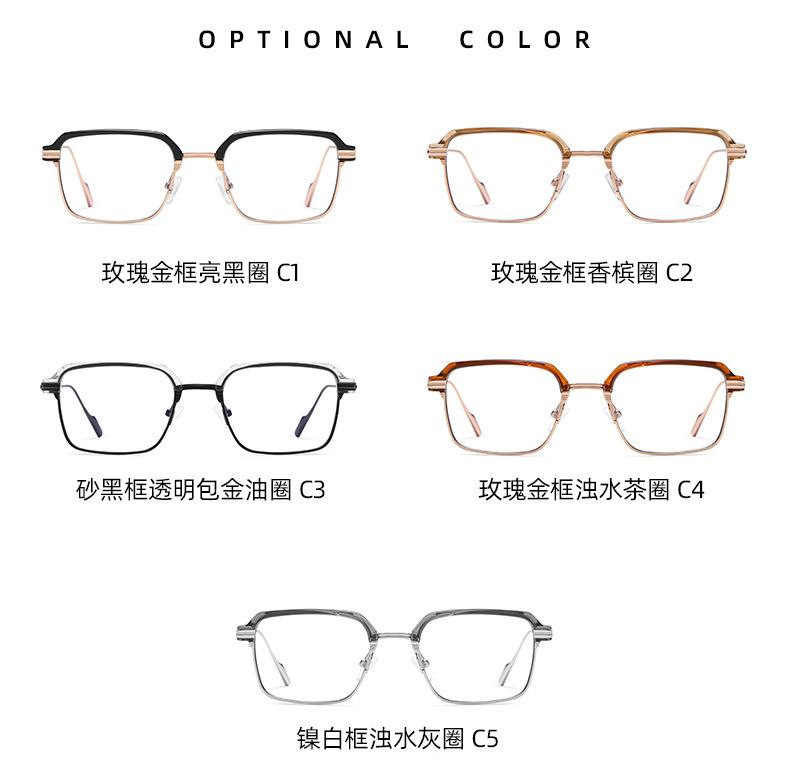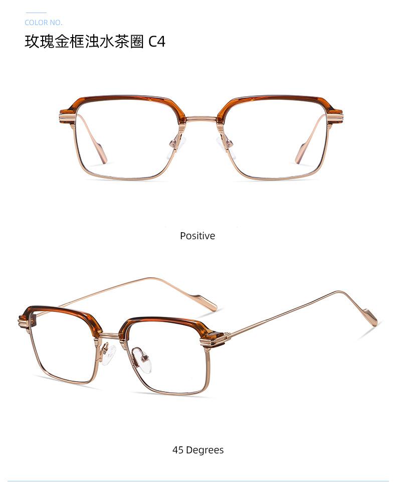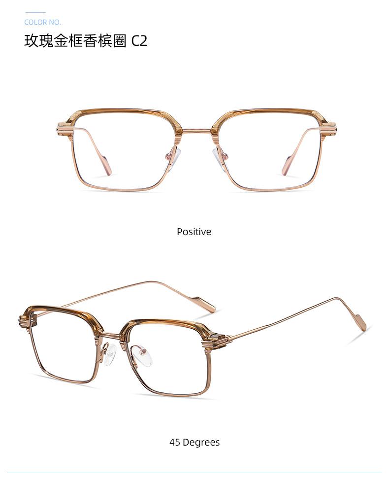 Rose gold frame bright black circle C1, Rose gold frame champagne ring C2, Sand black frame transparent gold c...