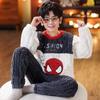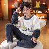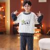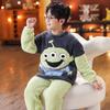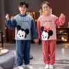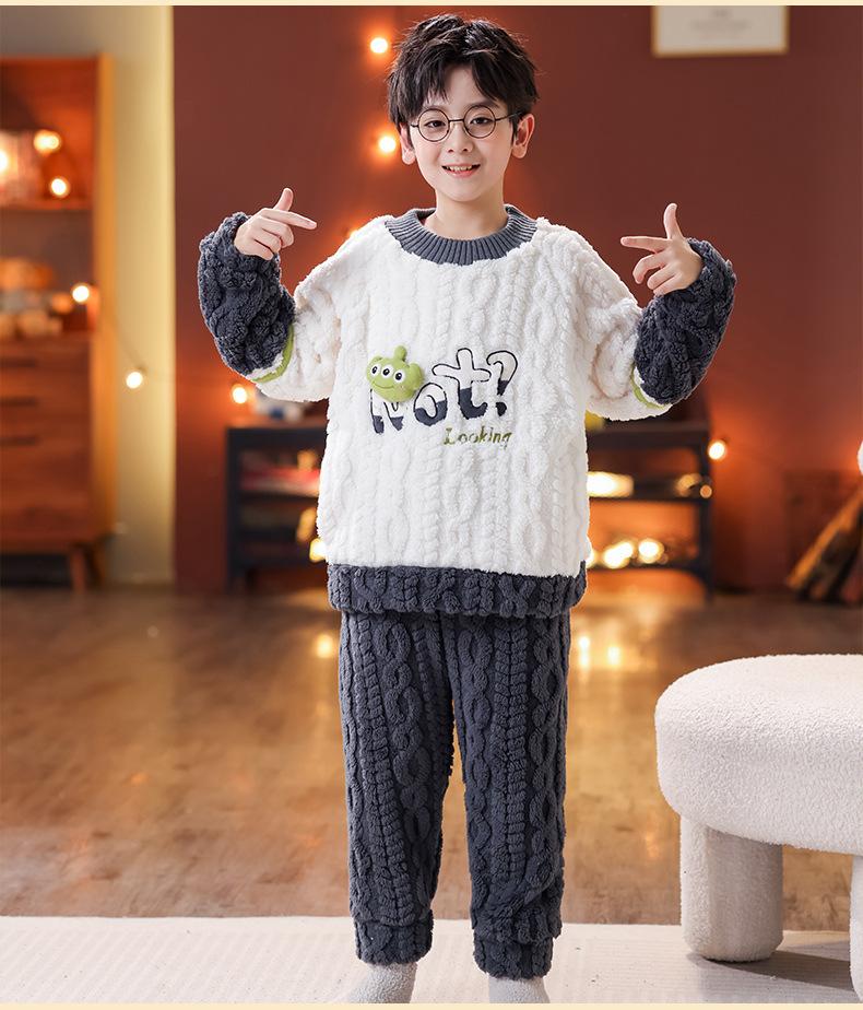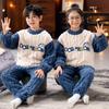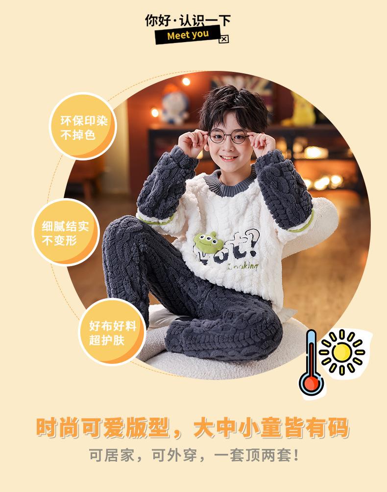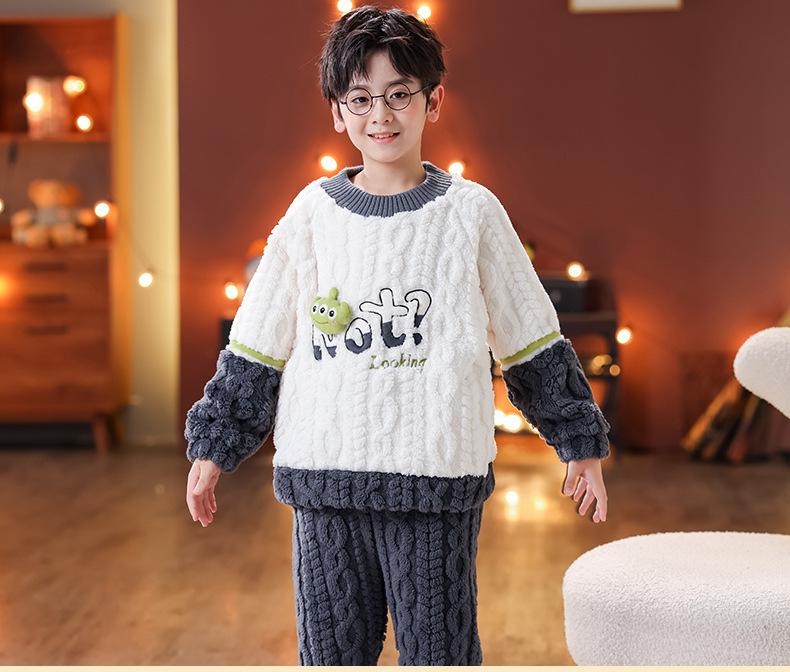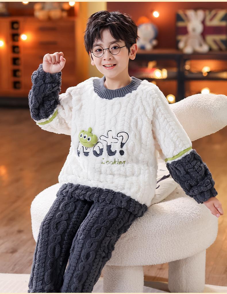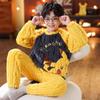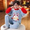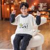 Pijamas para niños otoño e invierno jacquard coral polar lindo dibujos animados cuello redondo franela cálida ropa de hogar para niños medianos y grandes