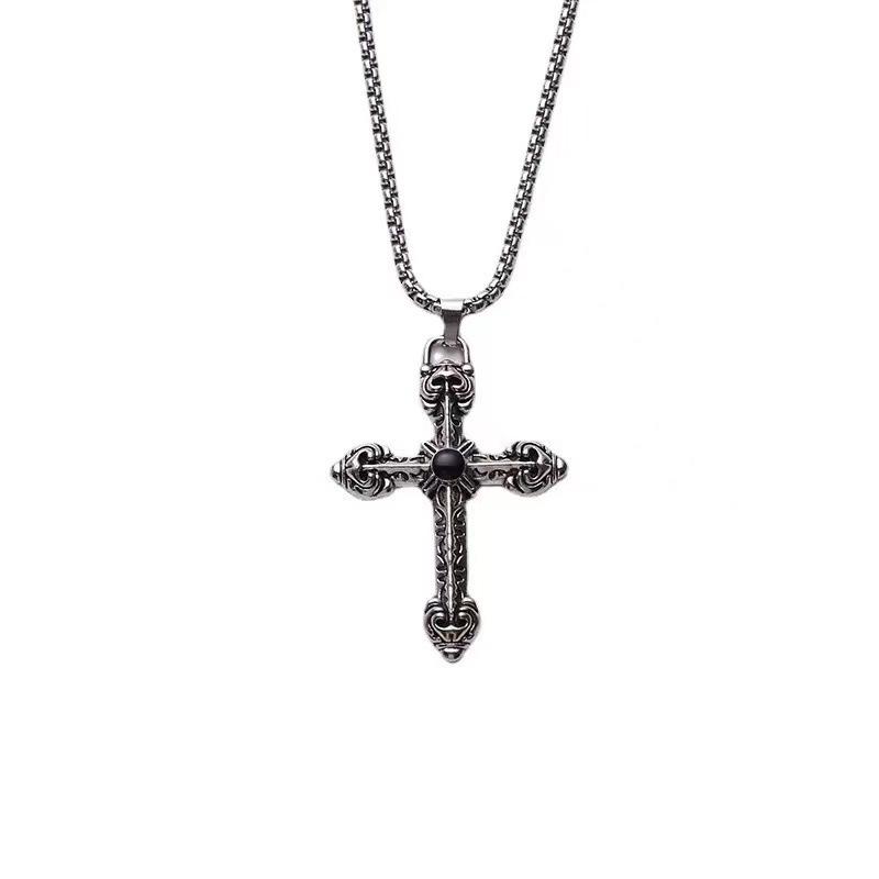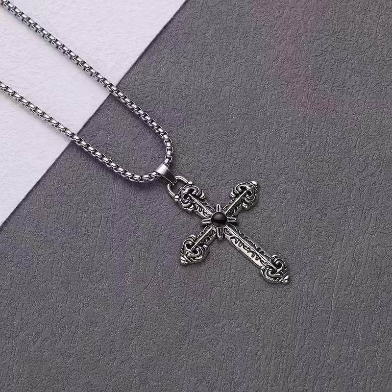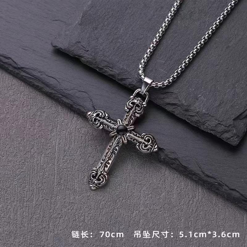 Collar con cruz de estilo europeo y americano, colgante sencillo de acero de titanio con personalidad de hip hop para estudiantes, accesorios de cadena de suéter para hombres y mujeres.